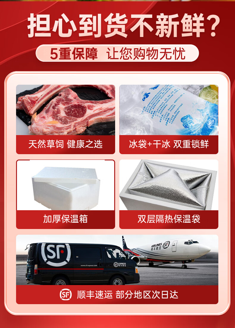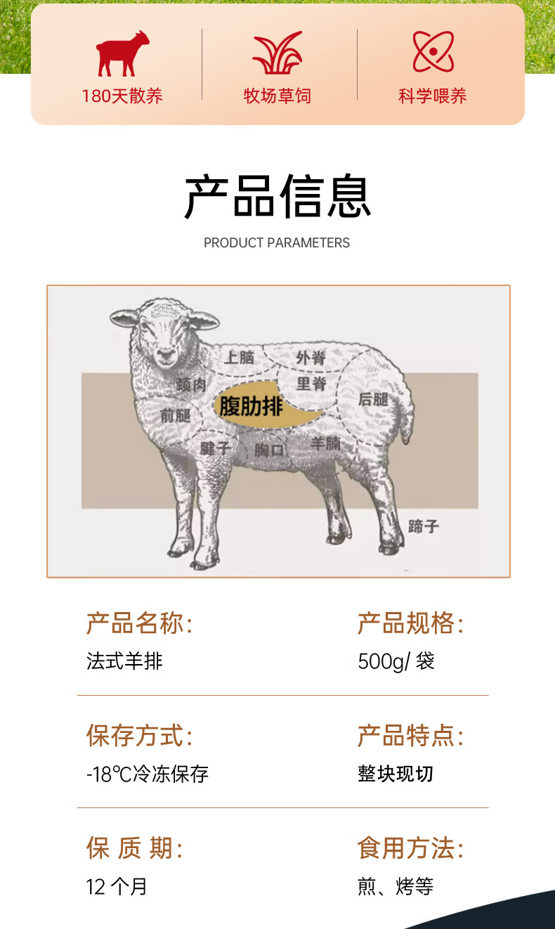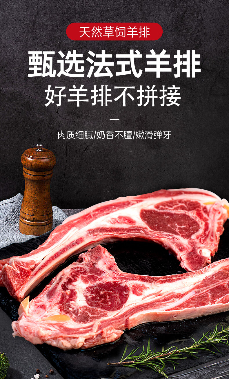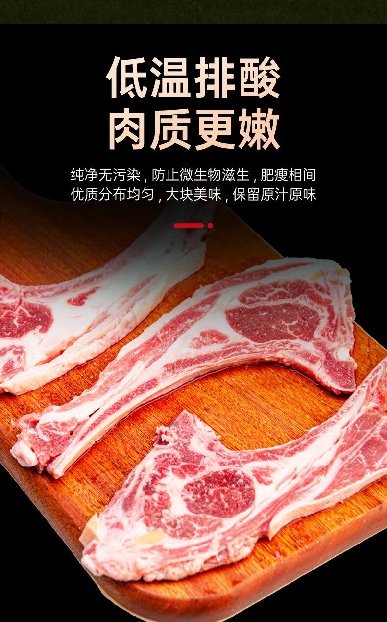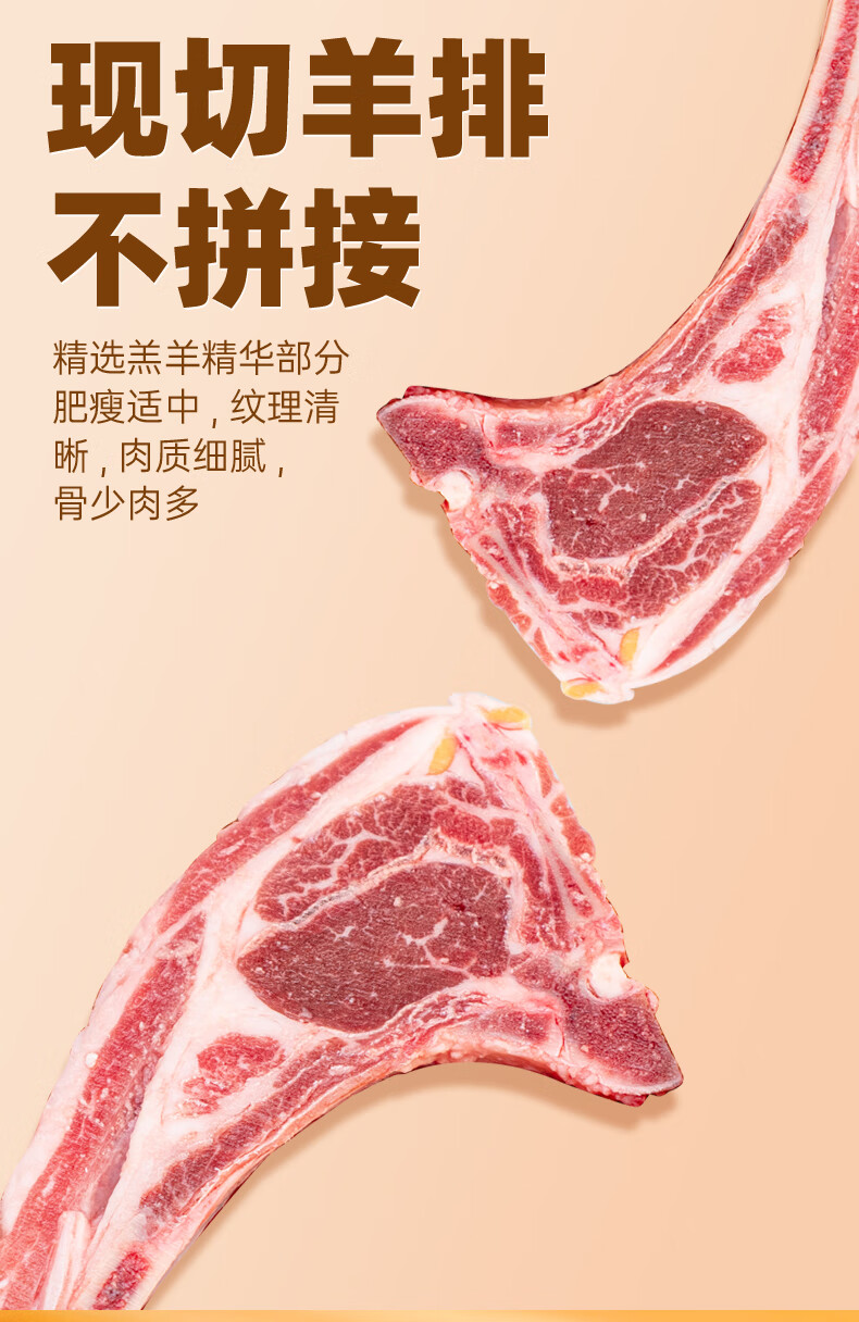 海云馨新鲜战斧羊排法式小羊排鲜切羊肋排羔羊羊排新鲜烧烤商用食材 【骨小肉多】战斧小羊排净重2斤装
