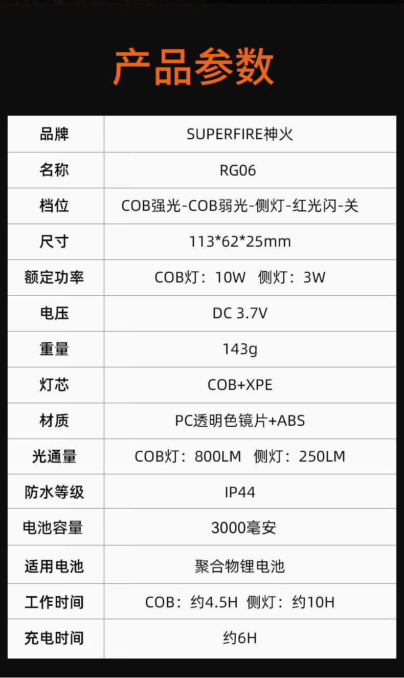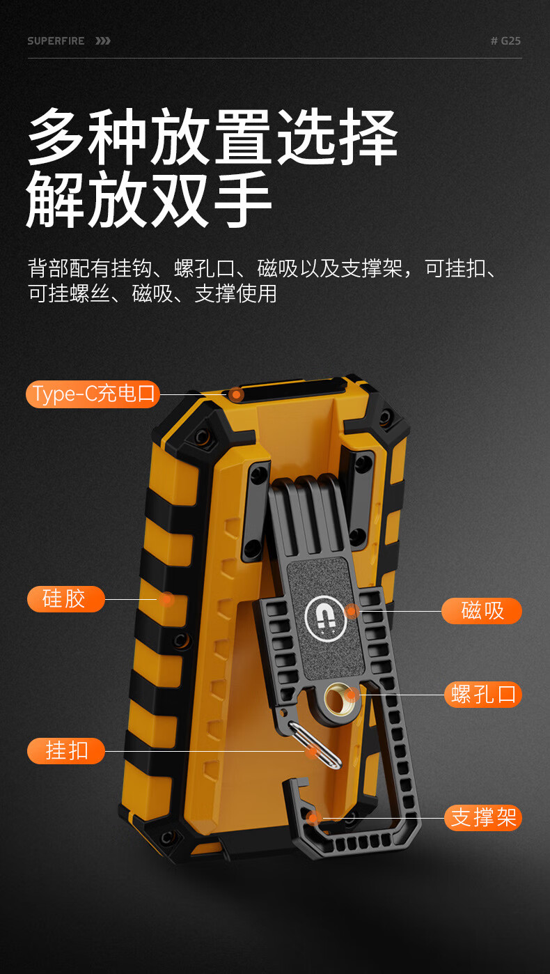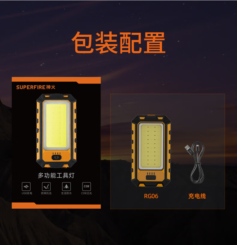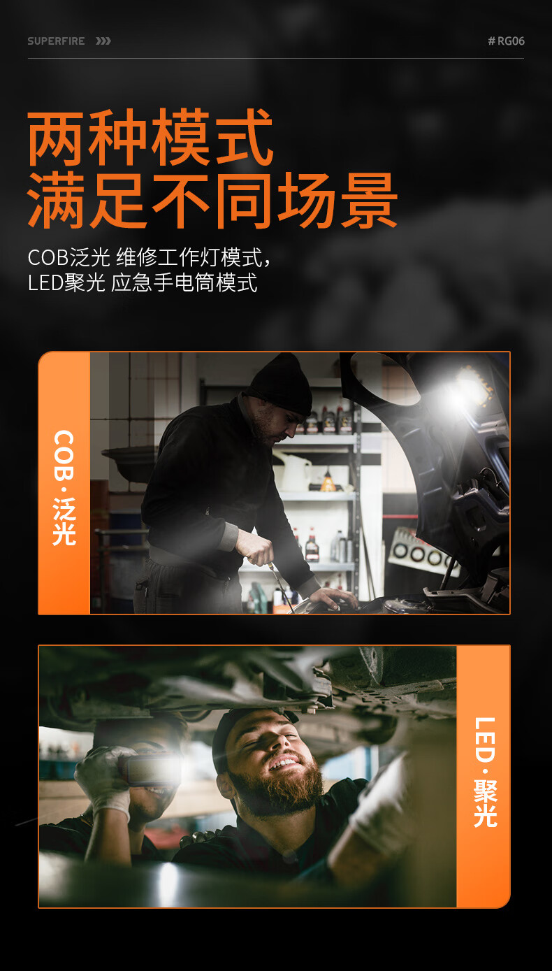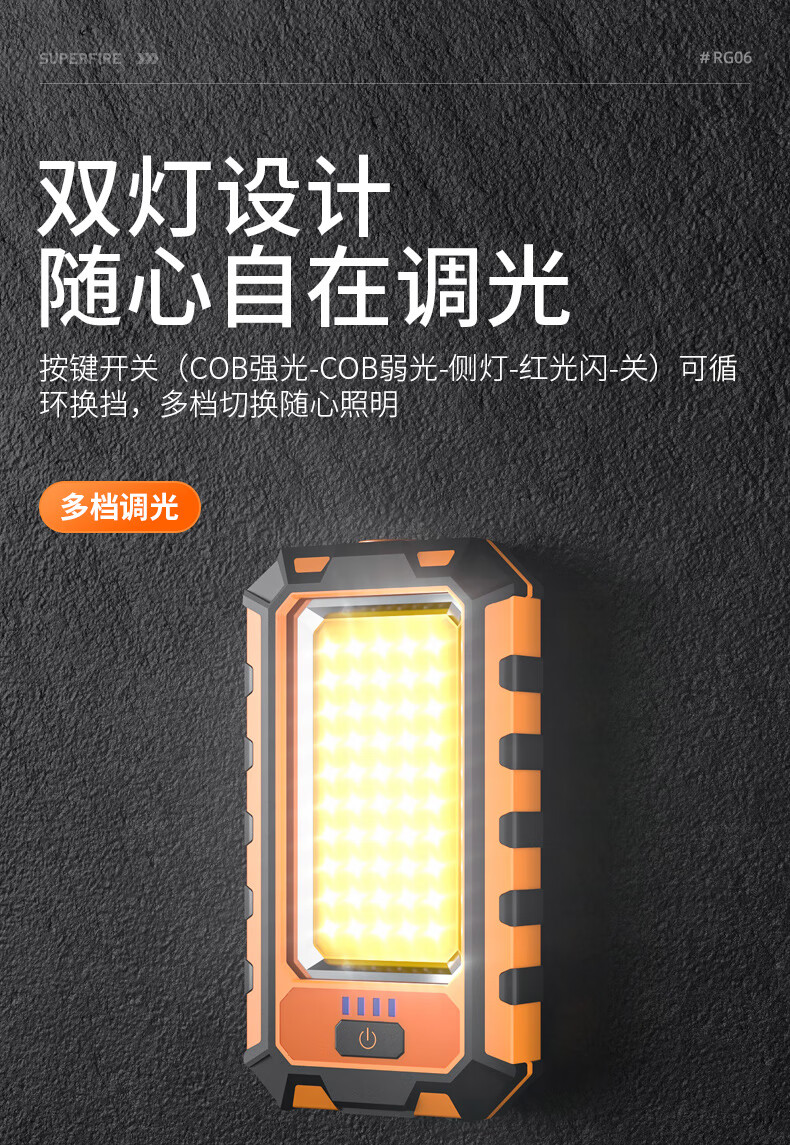 神火(SupFire)RG06多功能工作灯汽修应急维修灯超亮led强光磁铁充电户外手电