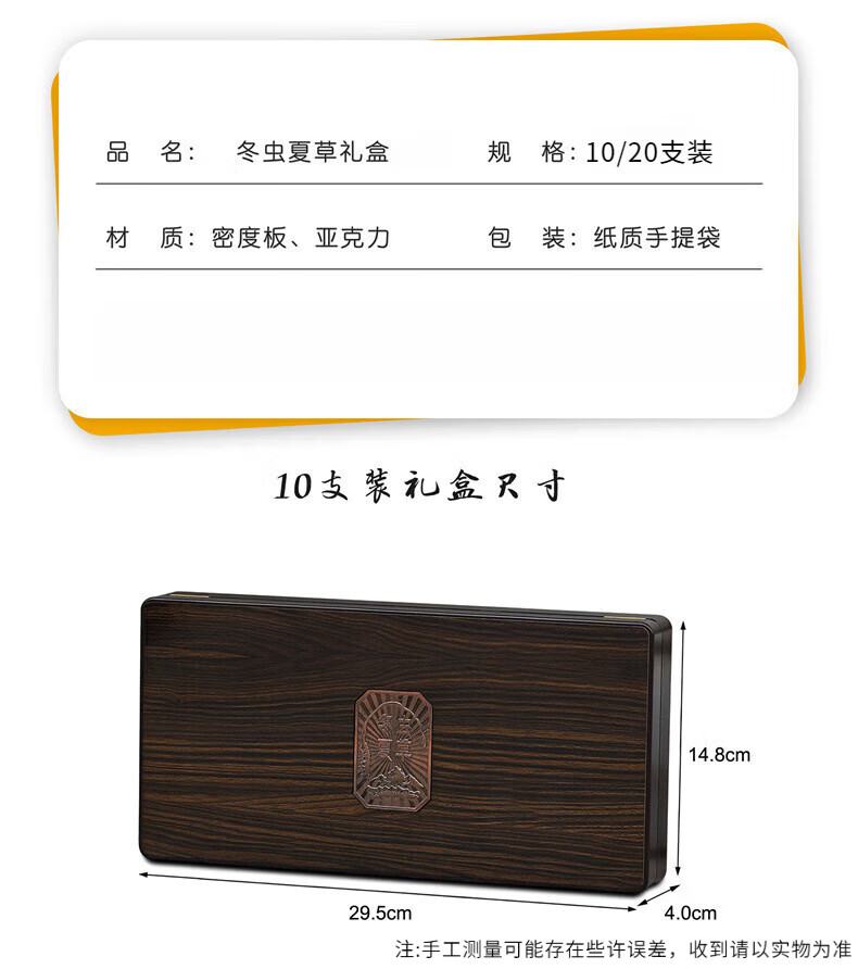 佐之寻虫草包装盒礼盒空盒冬虫夏草礼盒高档高端空盒子礼品木盒精致空盒 新款虫草礼盒【20支】
