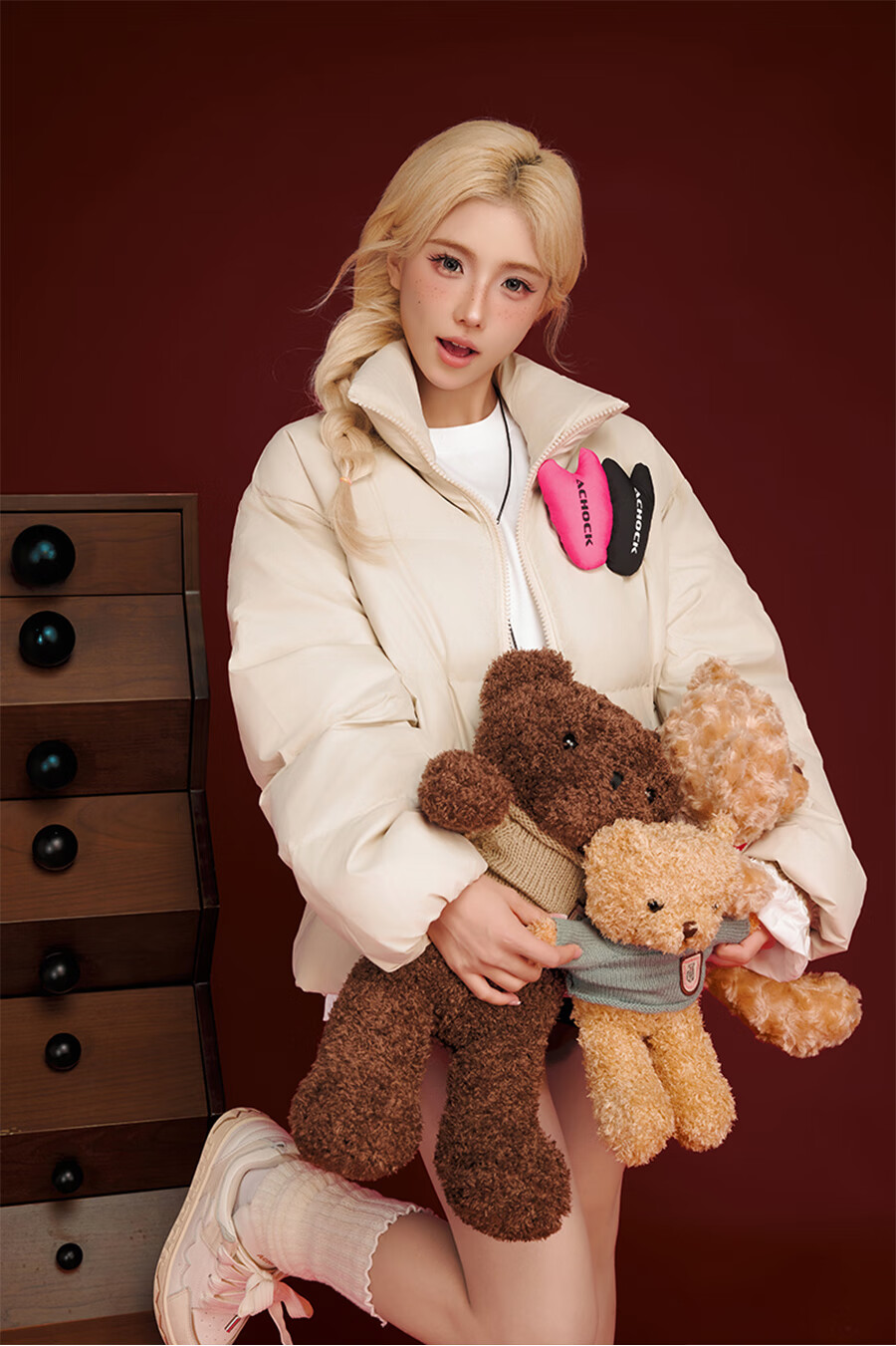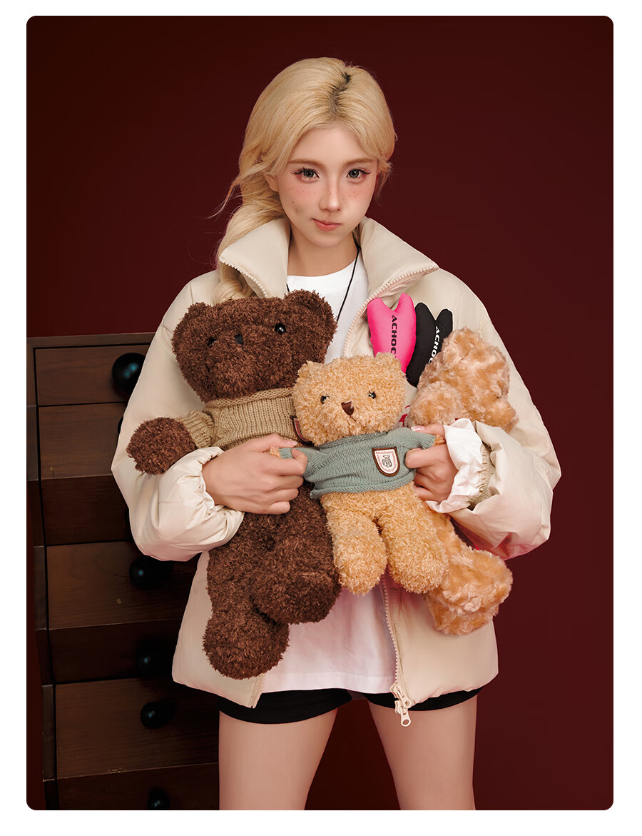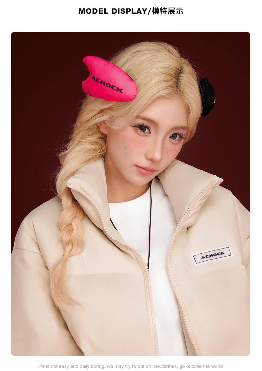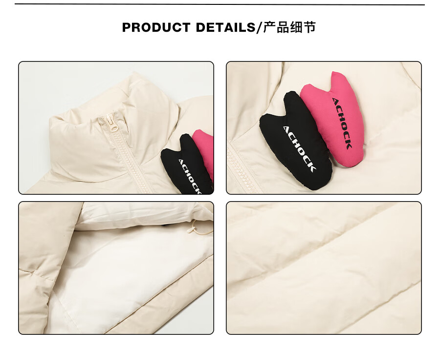 A CHOCK【Achock官方店】美式复古贴贴立领羽绒服男女新款潮牌设计感外套 米杏色 XL