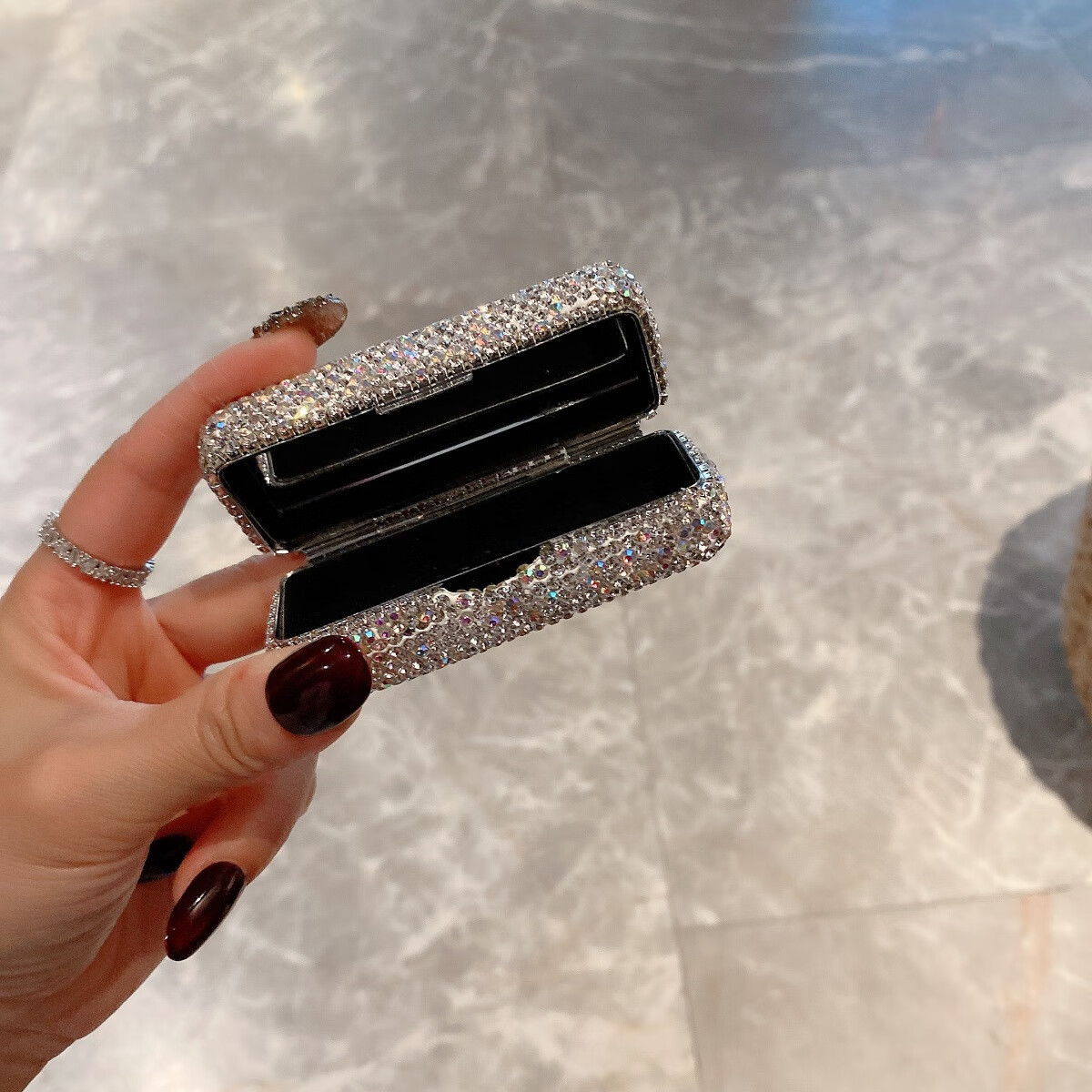 奢华创意镶钻水晶口红唇膏盒子口红保护套带盖收纳盒单支随身潮品 如图-口红盒