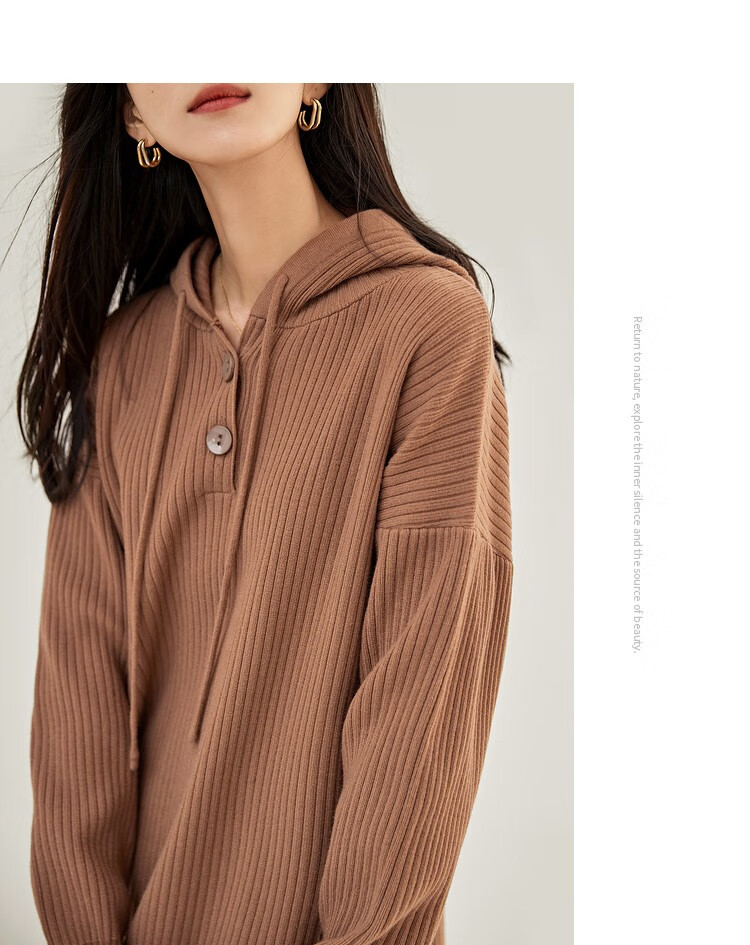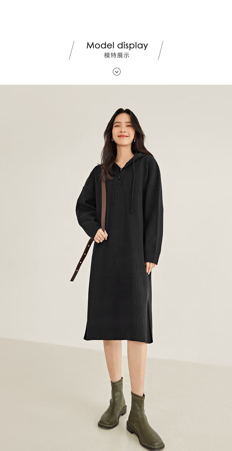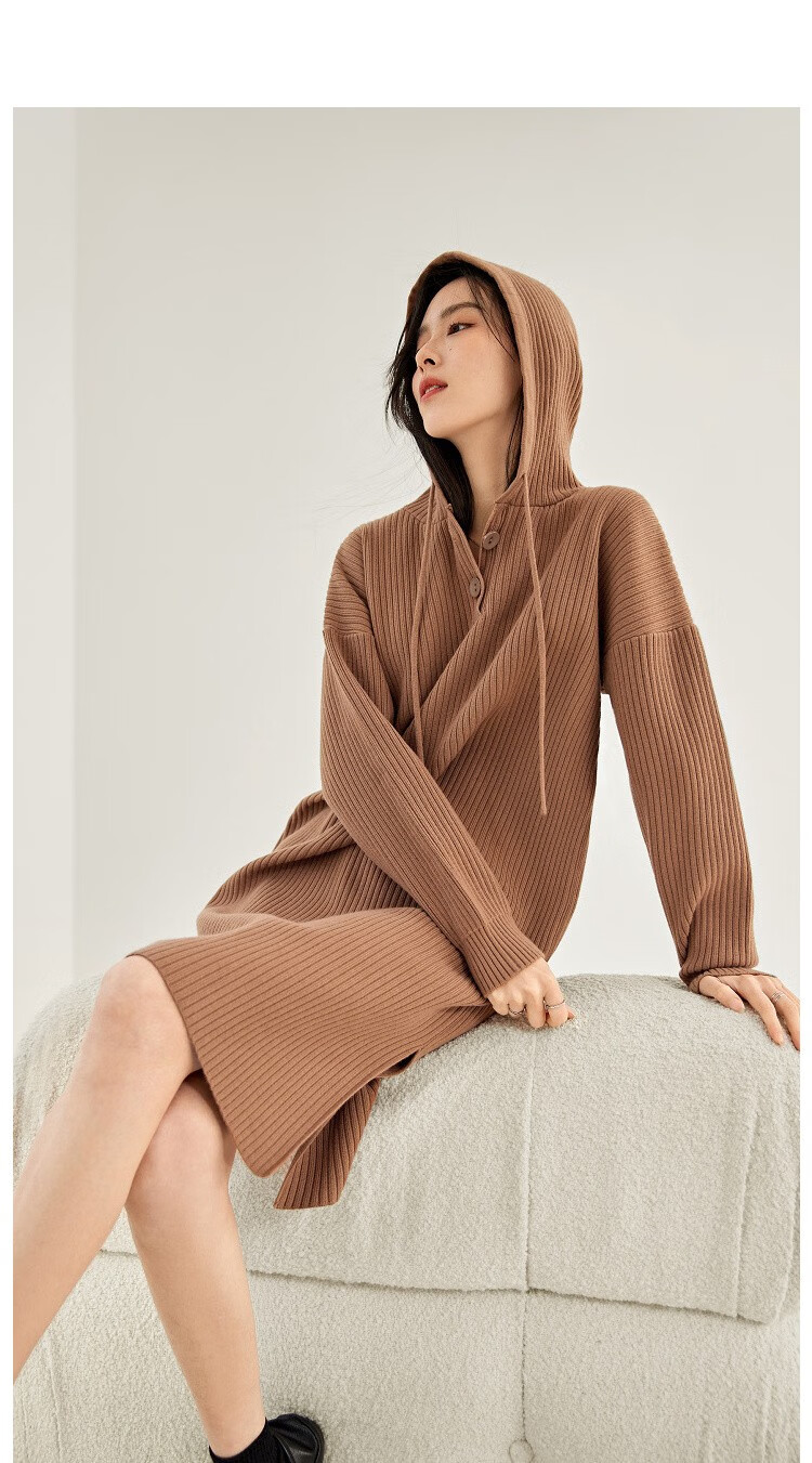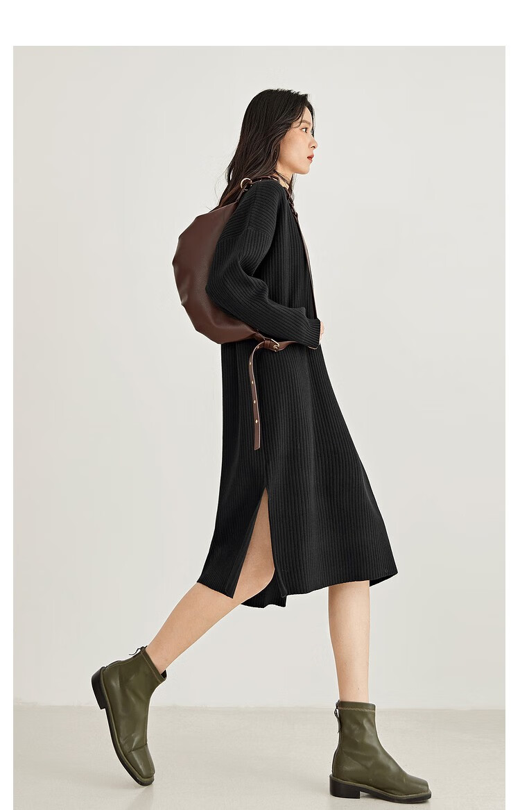 对白气质高级长袖针织连衣裙女秋秋新款宽松法式慵懒显瘦黑色裙子 奶油卡其 L