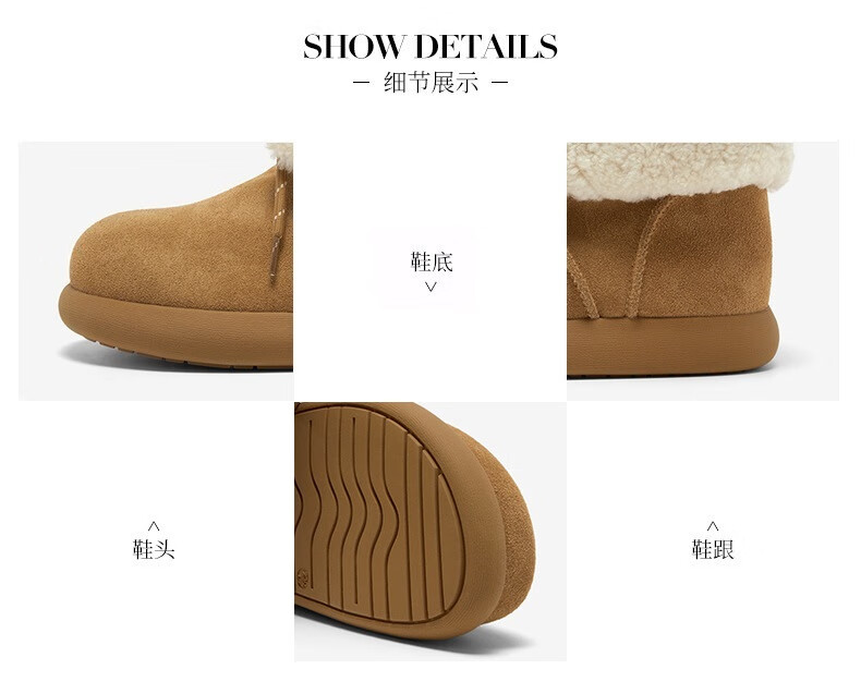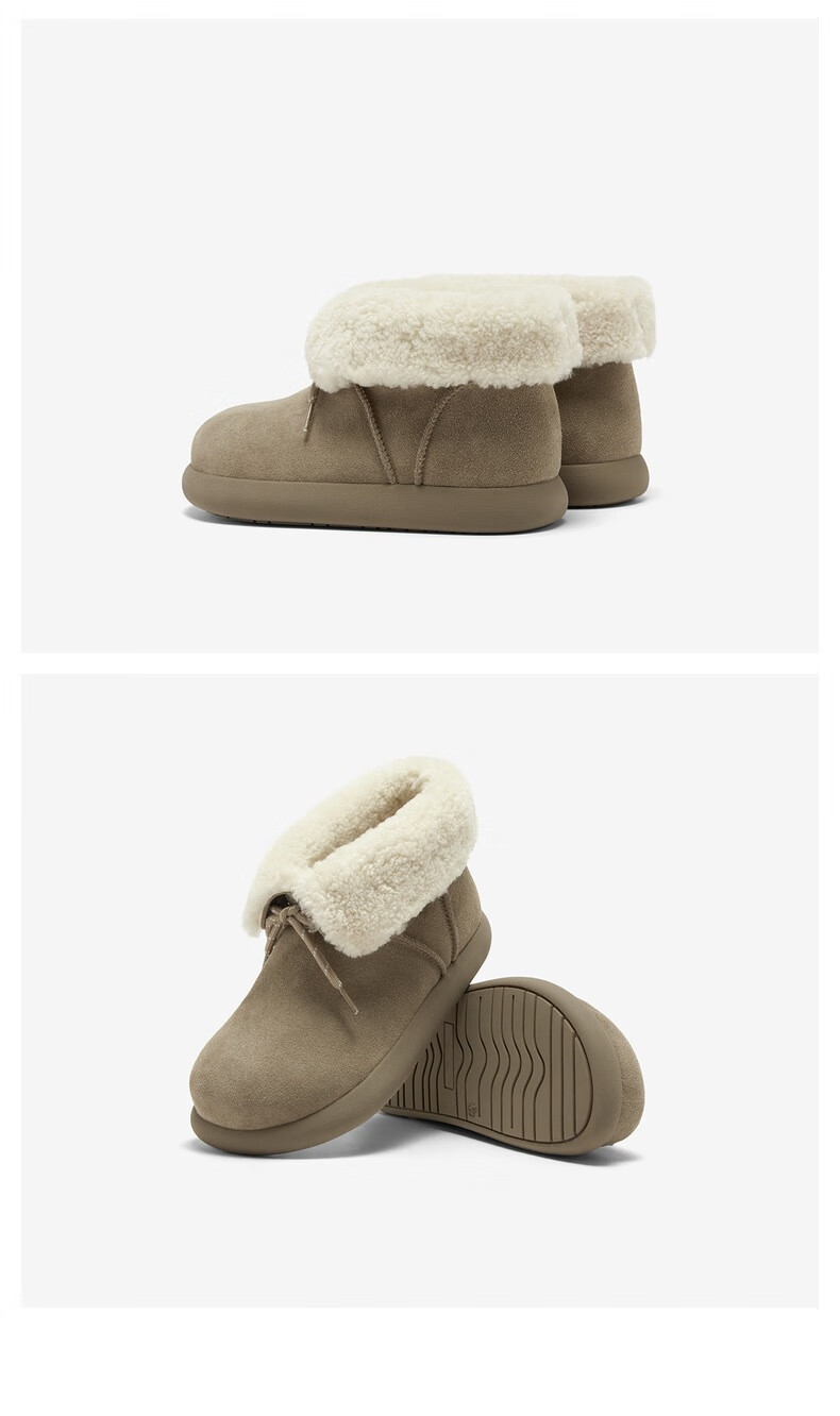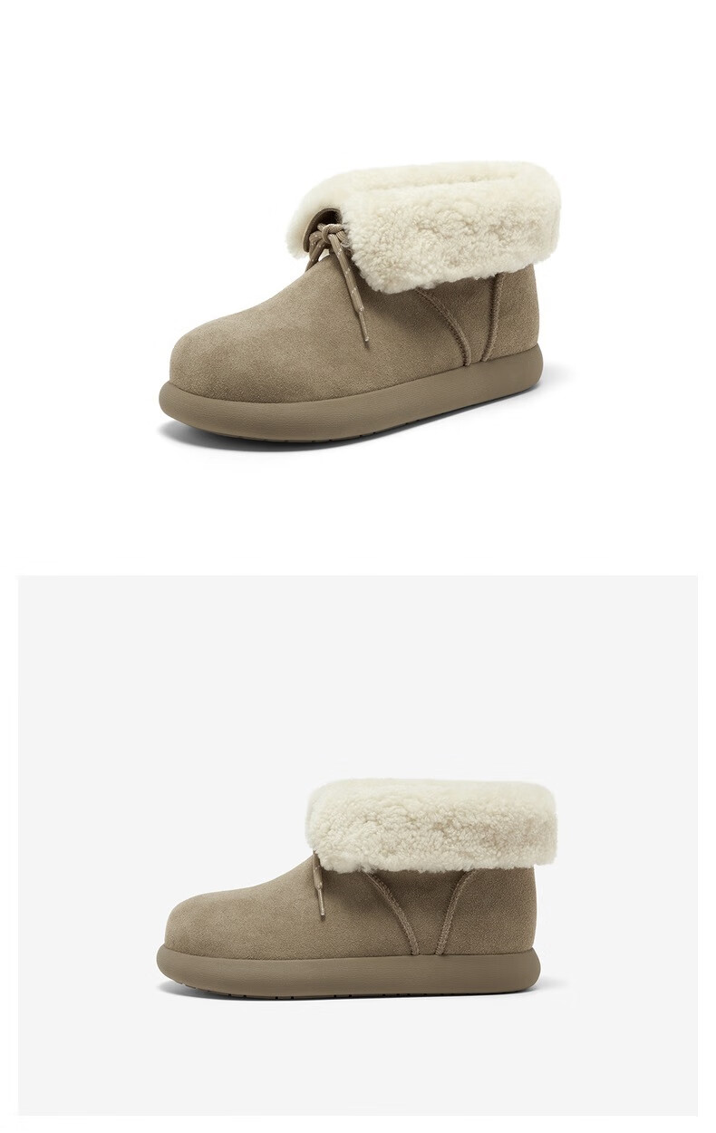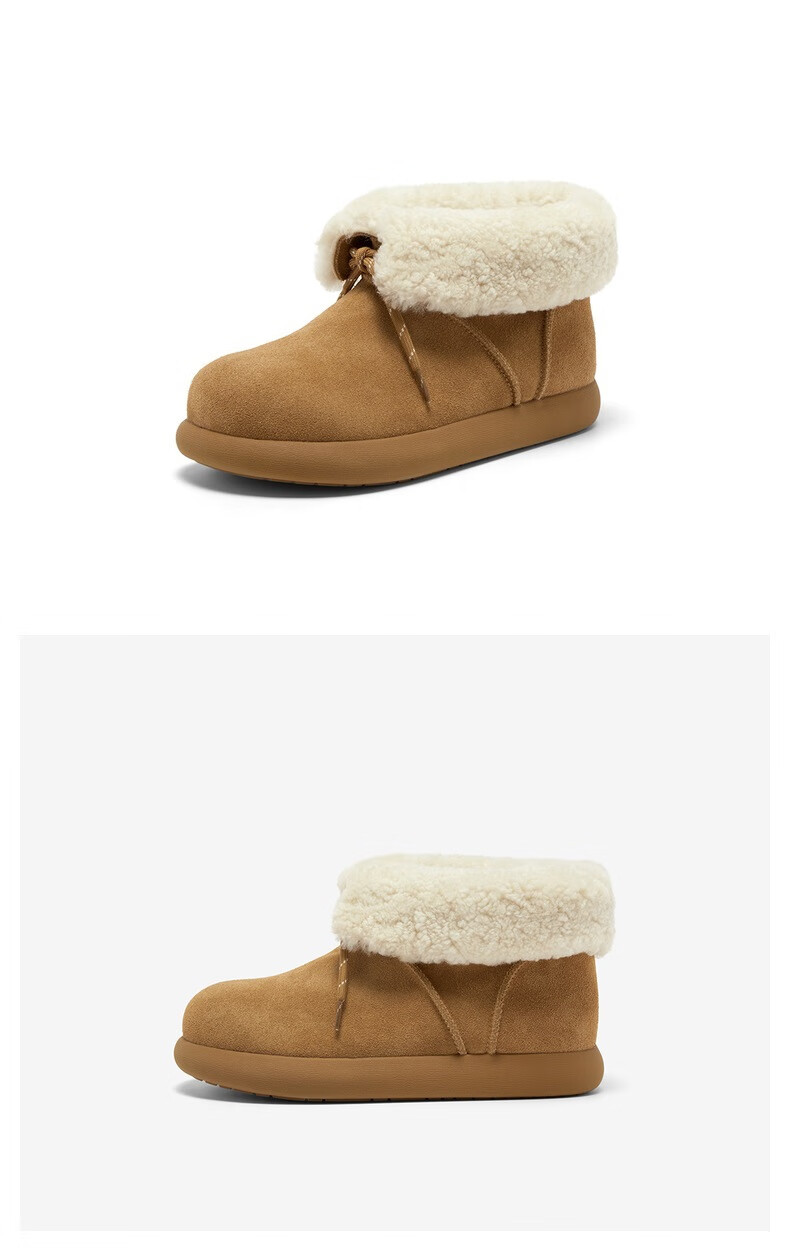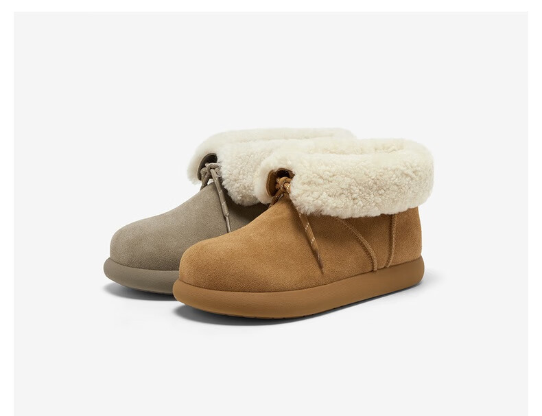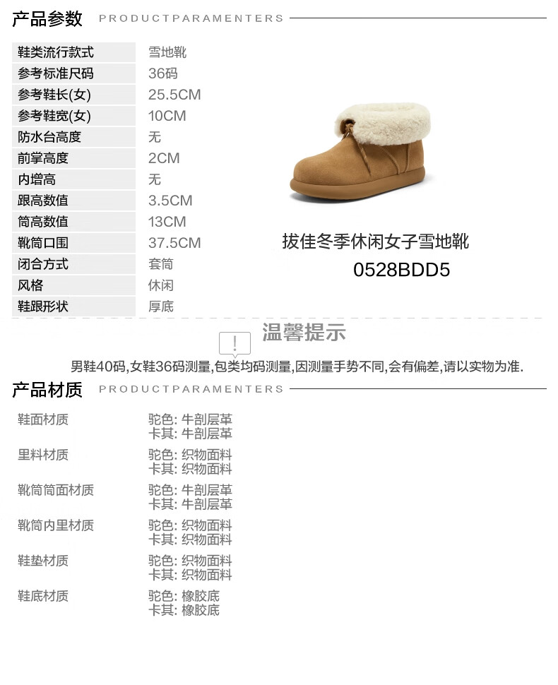 拔佳(Bata)雪地靴女2025冬牛剖皮厚毛毛厚底短靴0528BDD5 杏色-AD124 37