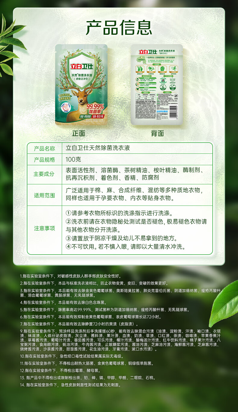 立白卫仕天然除菌洗衣液 100g旅行装 除菌率99.99% 72小时长效抑菌