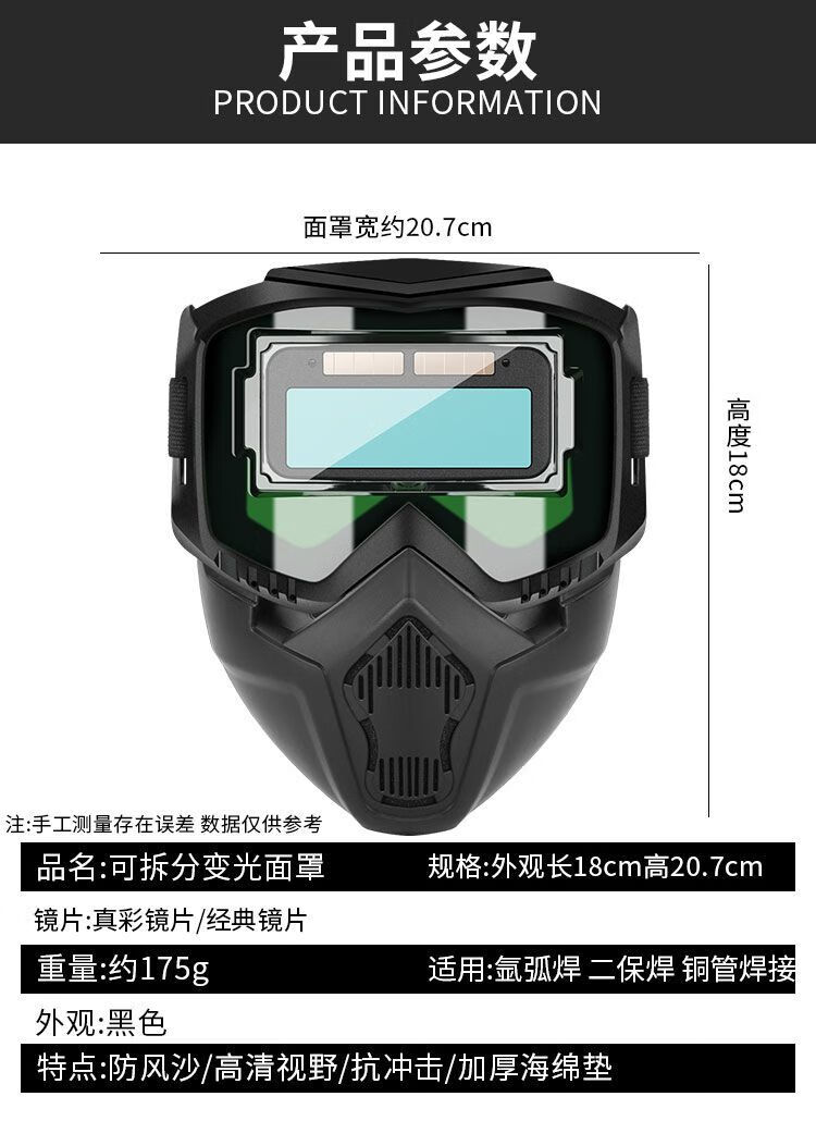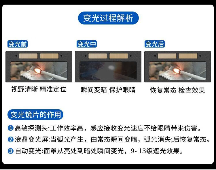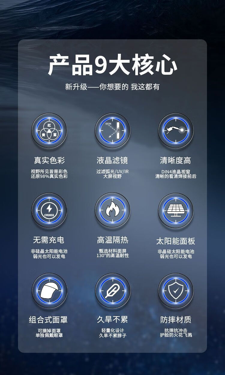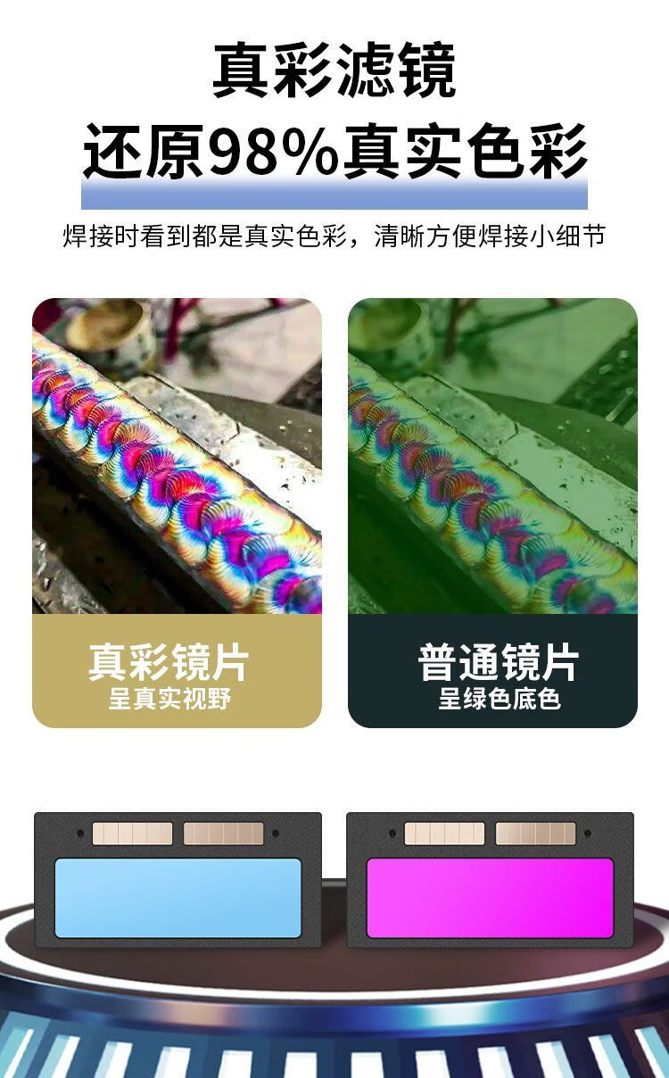 电焊面罩自动变光焊工面罩氩弧焊焊帽头戴式防烤脸隔热面具眼镜 【真不打眼】真彩视野款+10片保护片