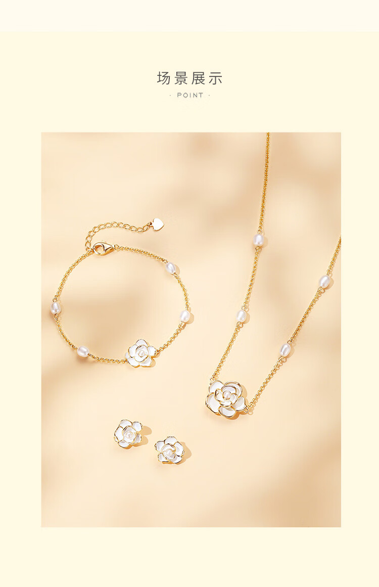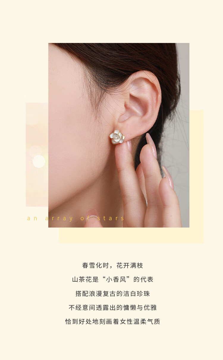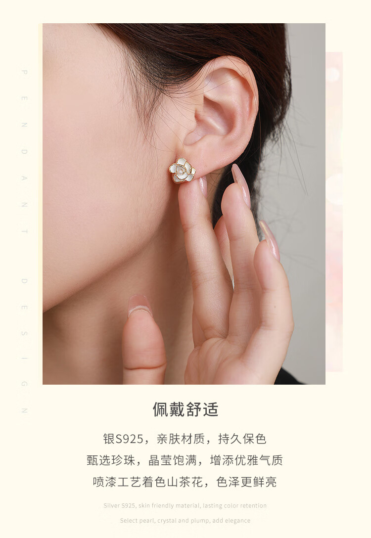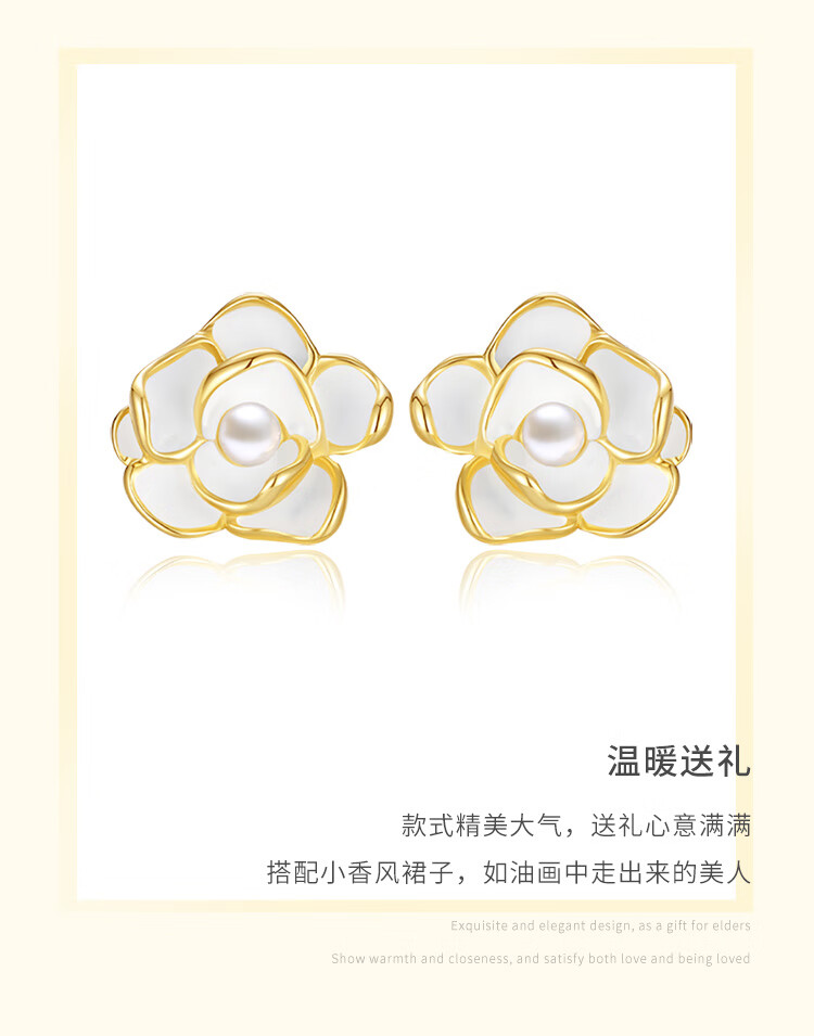 周大生【新年礼物】山茶花耳钉银女气质耳环法式珍珠耳饰小香风送女友