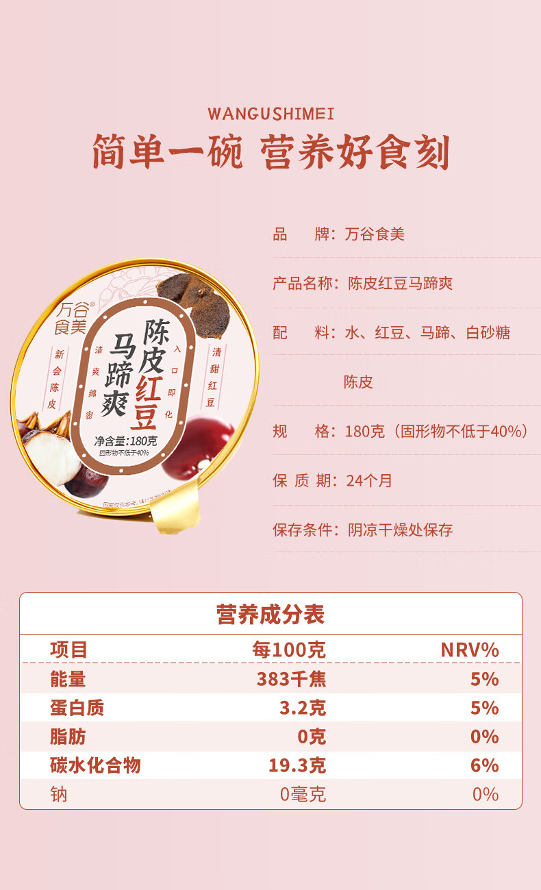 万谷食美 红豆沙即食粥180g 红豆陈皮马蹄羹 即食罐头应急物资