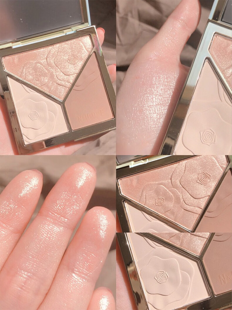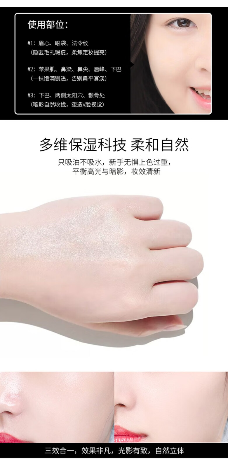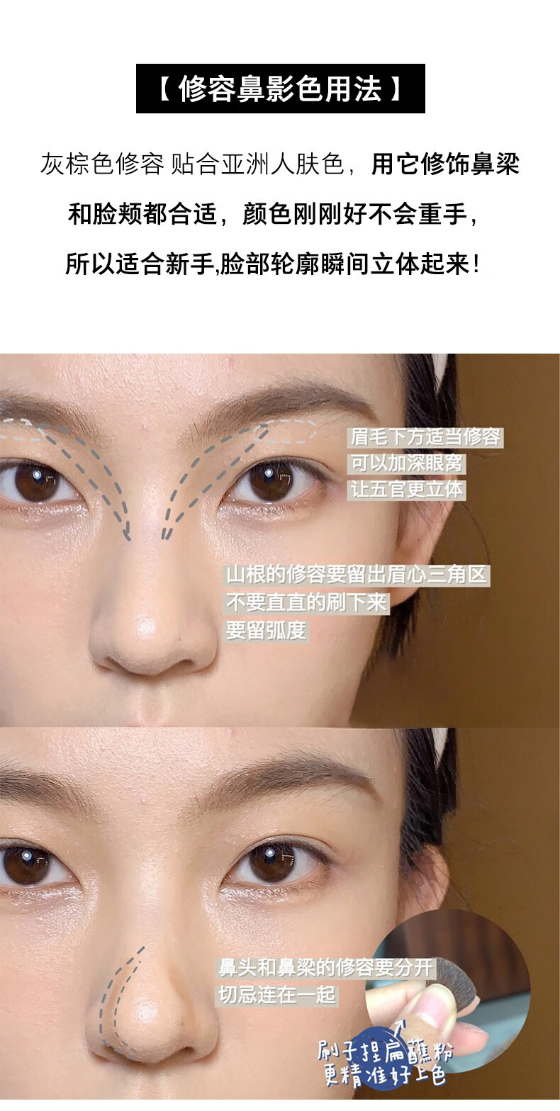茗希芝(MINSHZEE) 三色高光修容盘一体盘鼻影阴影修容粉自然立体卧蚕提亮三合一 02#气质可可(高光修容腮红)