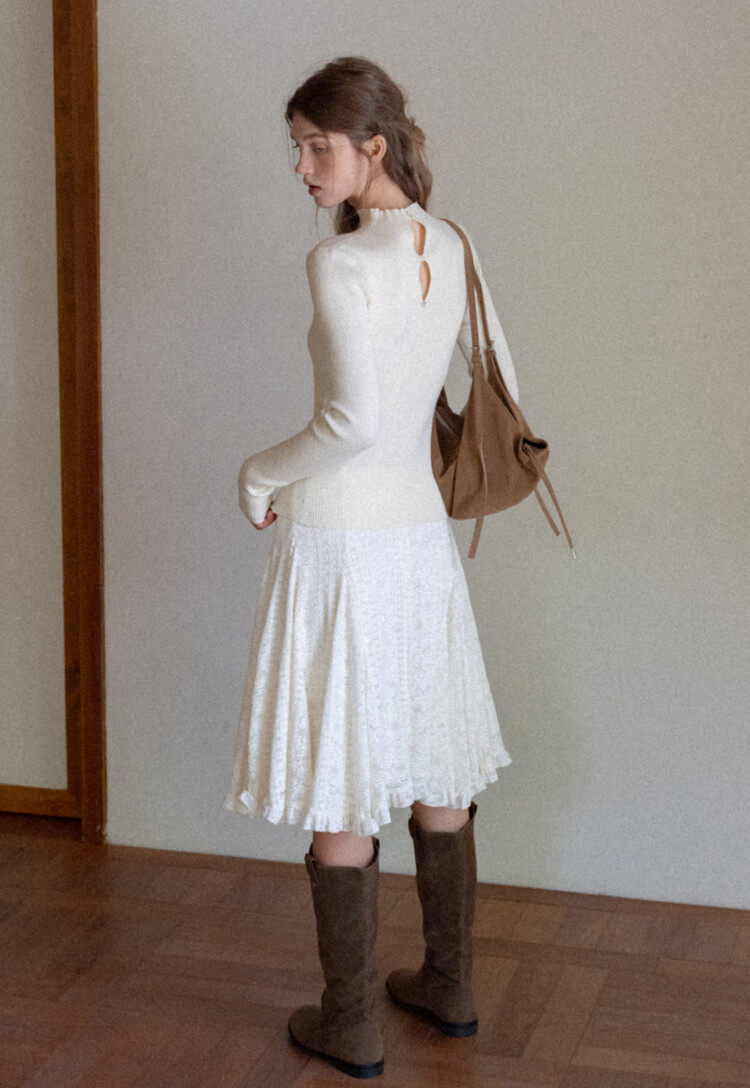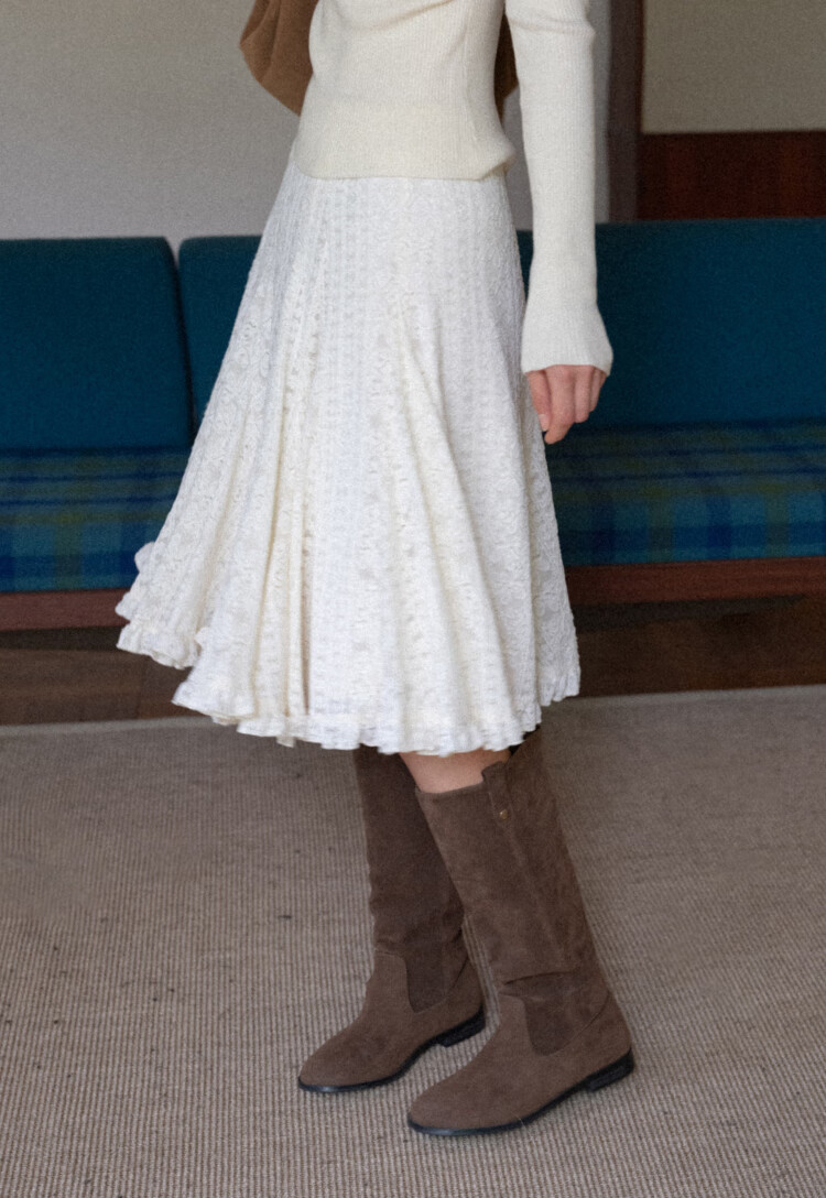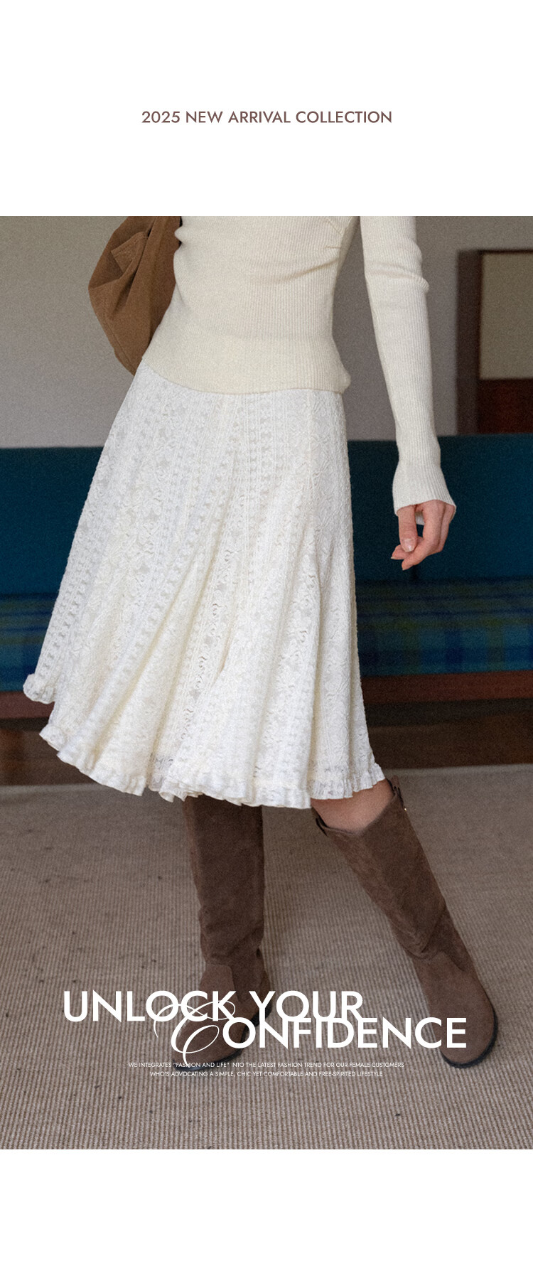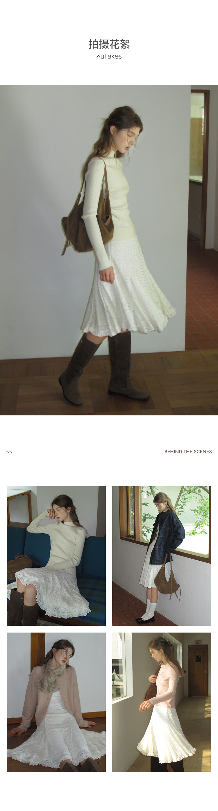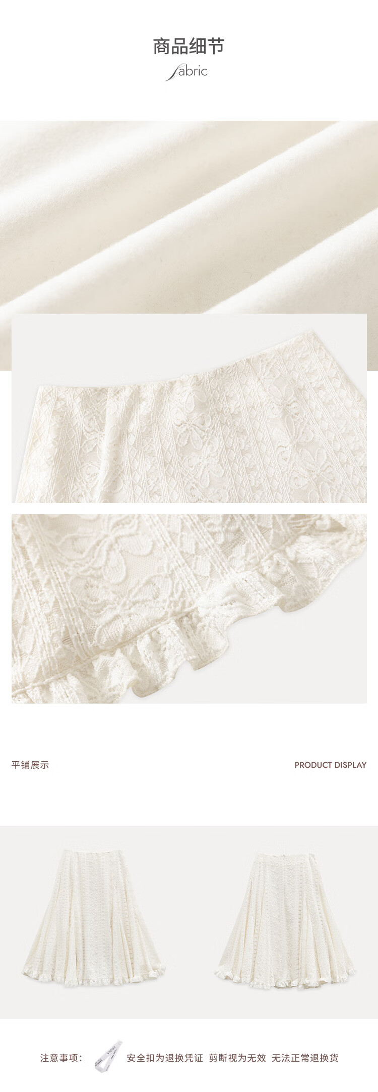 EGGKA法式荷叶边米杏色半身裙高腰a字内里加绒中裙E25B30288YM 米杏 L