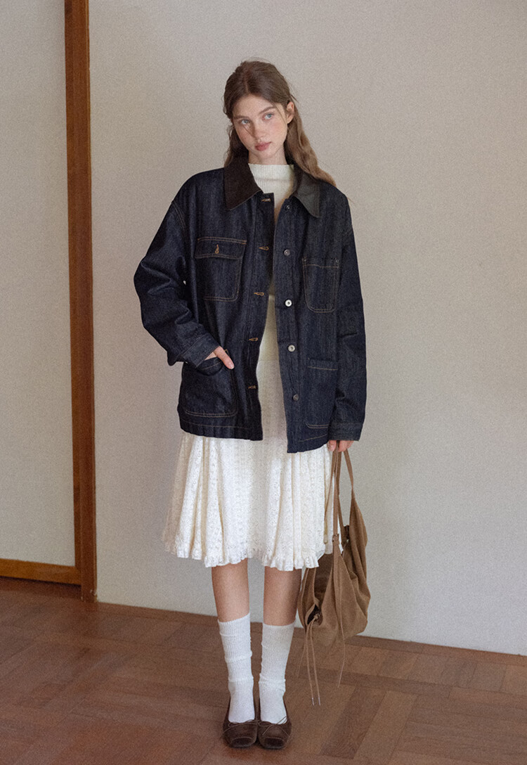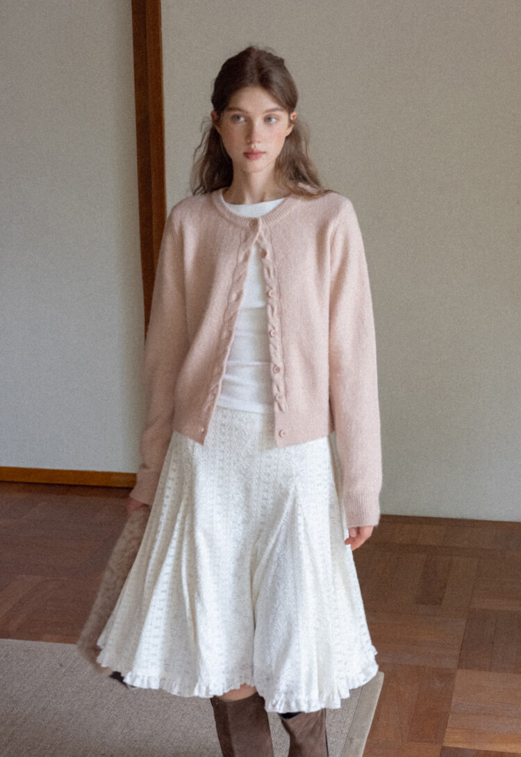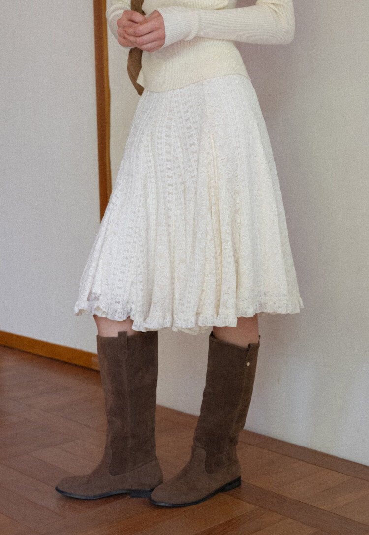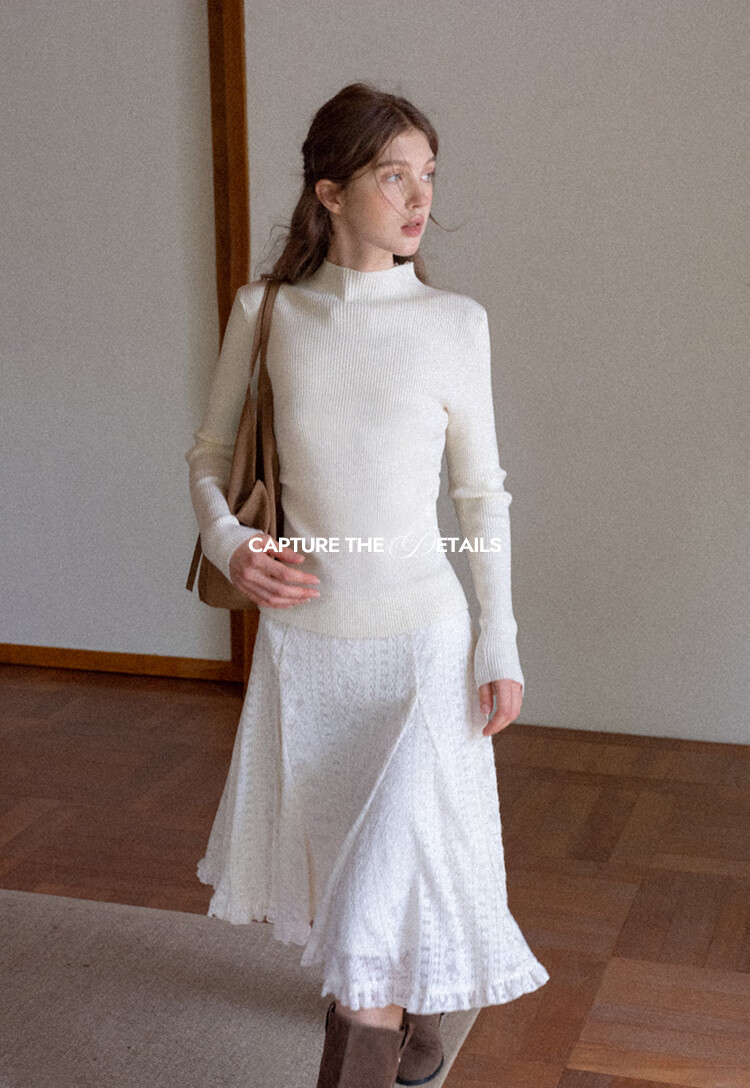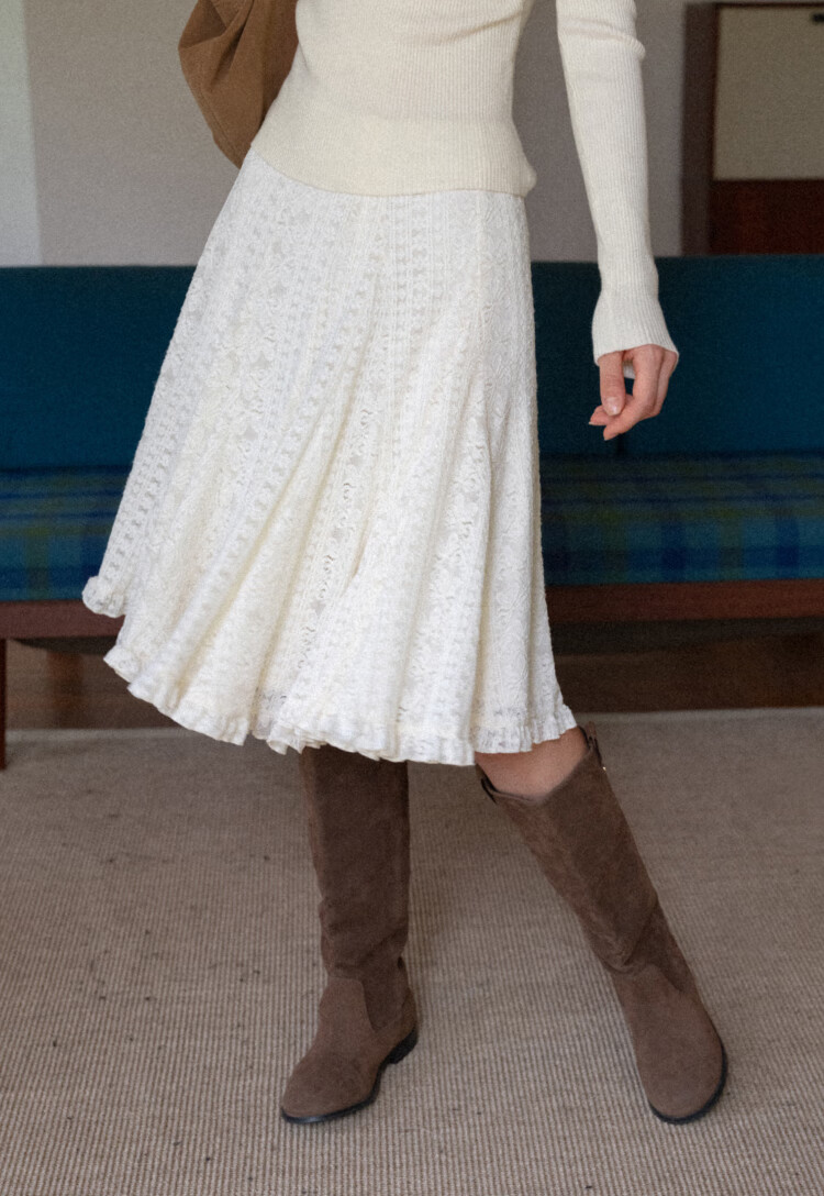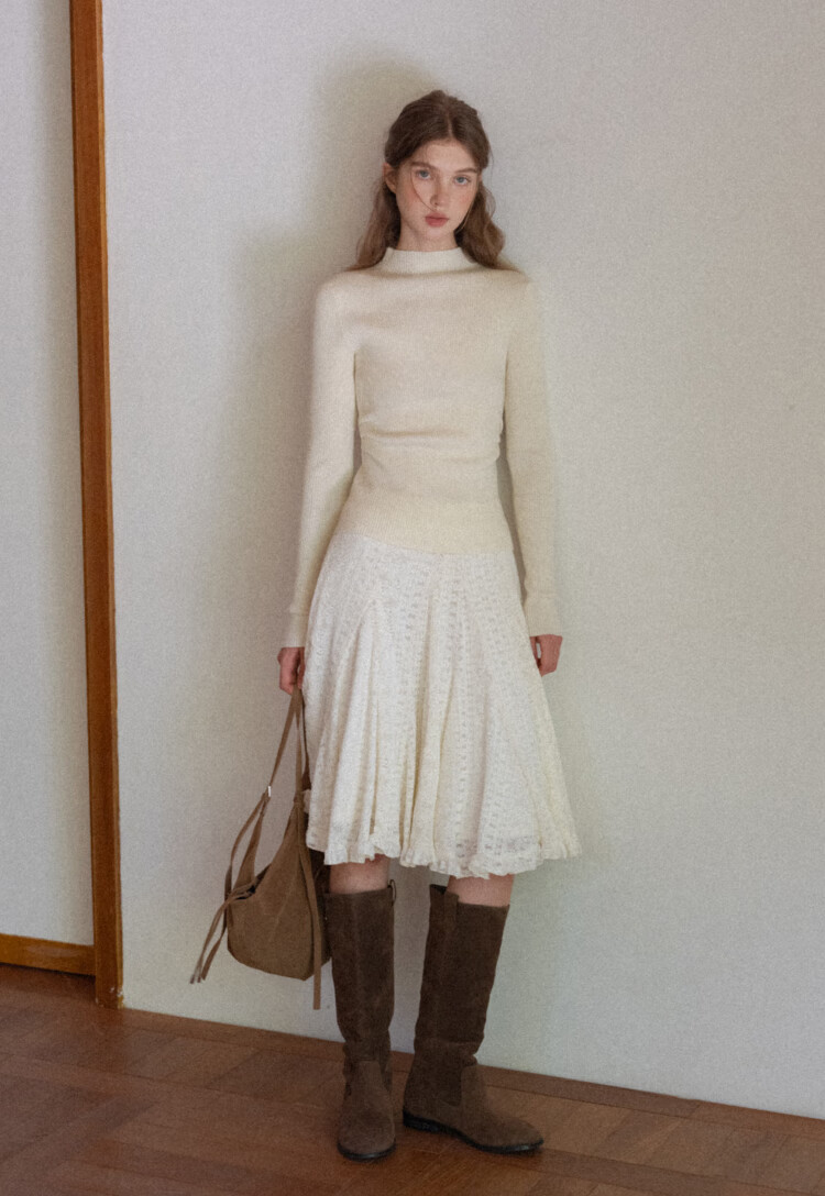 EGGKA法式荷叶边米杏色半身裙高腰a字内里加绒中裙E25B30288YM 米杏 L