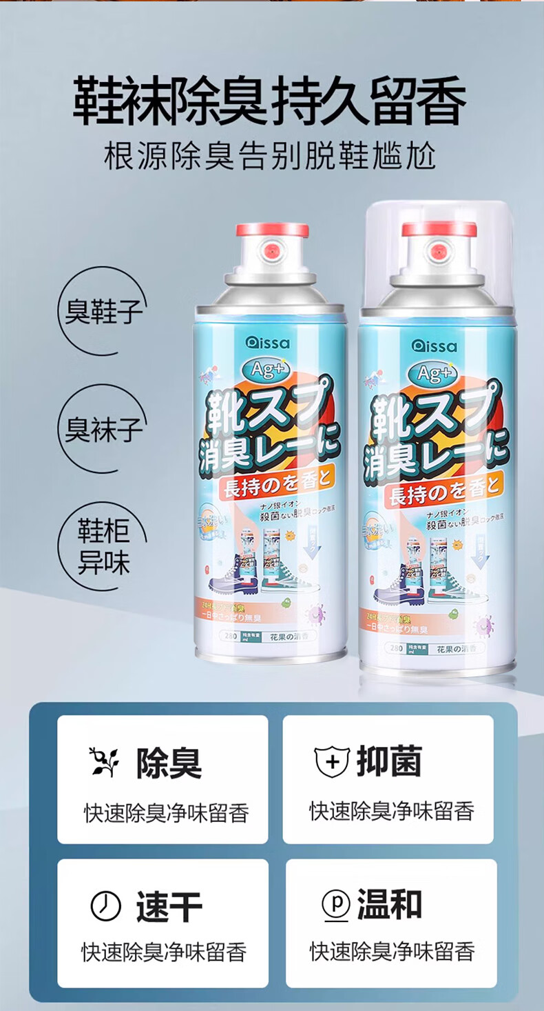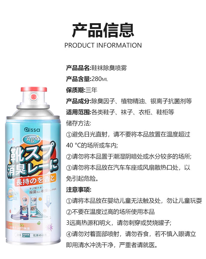 PISSA鞋袜除臭剂280ml 银离子杀菌抑菌喷雾球鞋运动鞋防臭 桂花香
