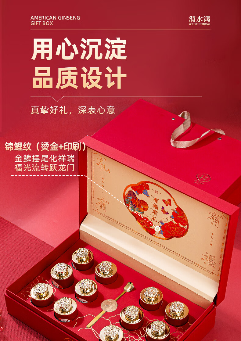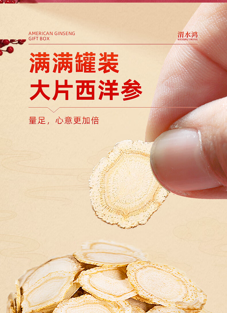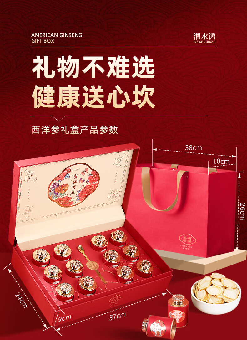 渭水鸿西洋参礼盒120克过年送父母长辈走亲戚送礼人参含片高档礼品滋补