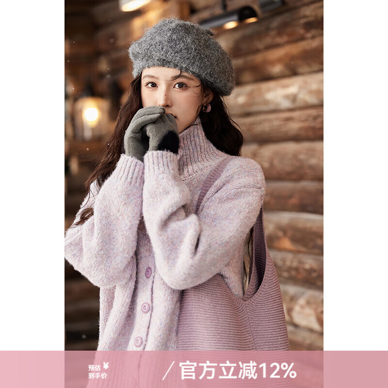 谜秀紫色翻领毛衣外套女秋冬2025高级感慵懒松弛感上衣 香芋紫薯 毛衣 均码