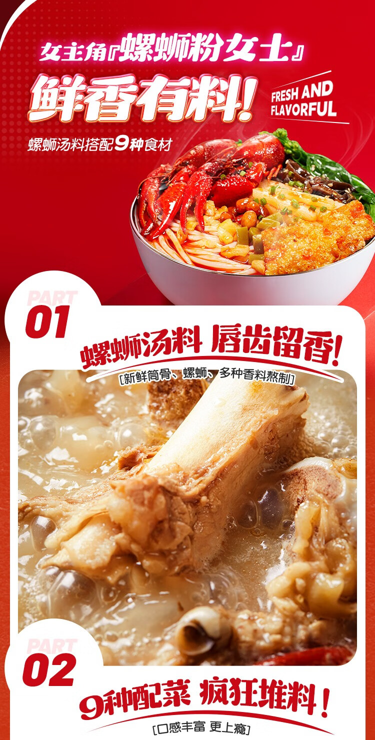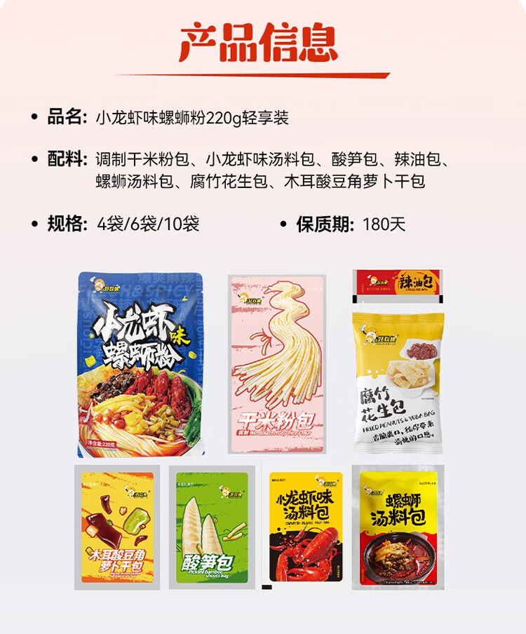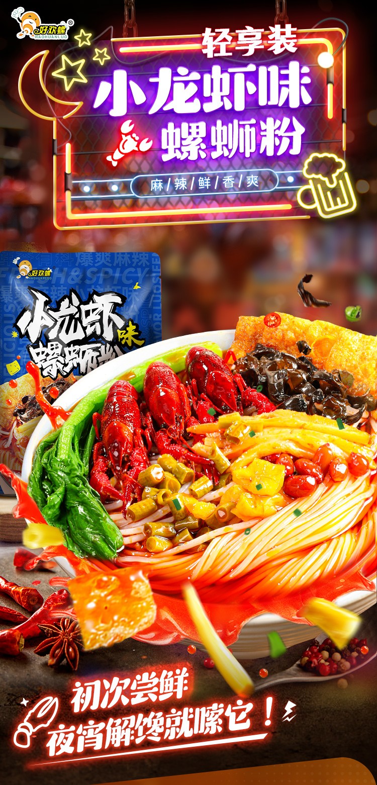 好欢螺螺蛳粉小龙虾味轻享装广西柳州正宗螺狮粉方便速食夜宵袋装螺丝粉 小龙虾225g*3袋+加辣加臭400g*1袋