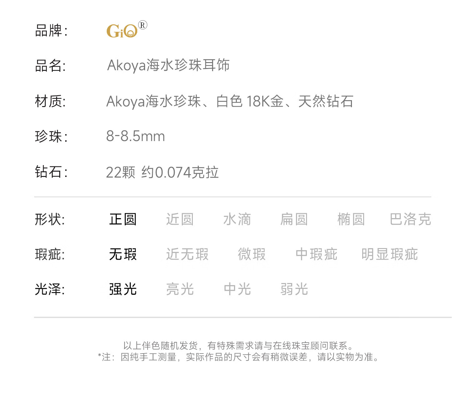 GiO珠宝 Akoya海水珍珠耳饰18K金耳坠轻奢高级感新年礼物 18K金 珍珠8-8.5mm