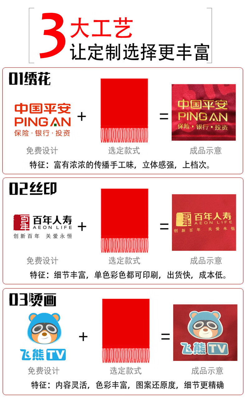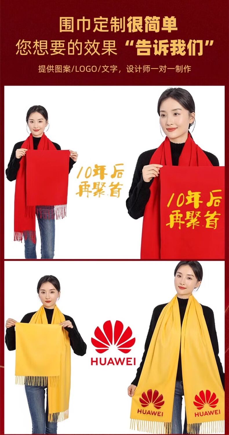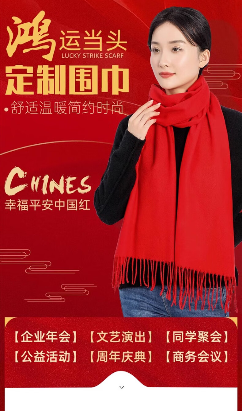 奥义驰老人祝寿红围巾同学聚会中国红定制结婚logo刺绣红色大红围脖印字 马年大吉 品质仿羊绒200*35cm