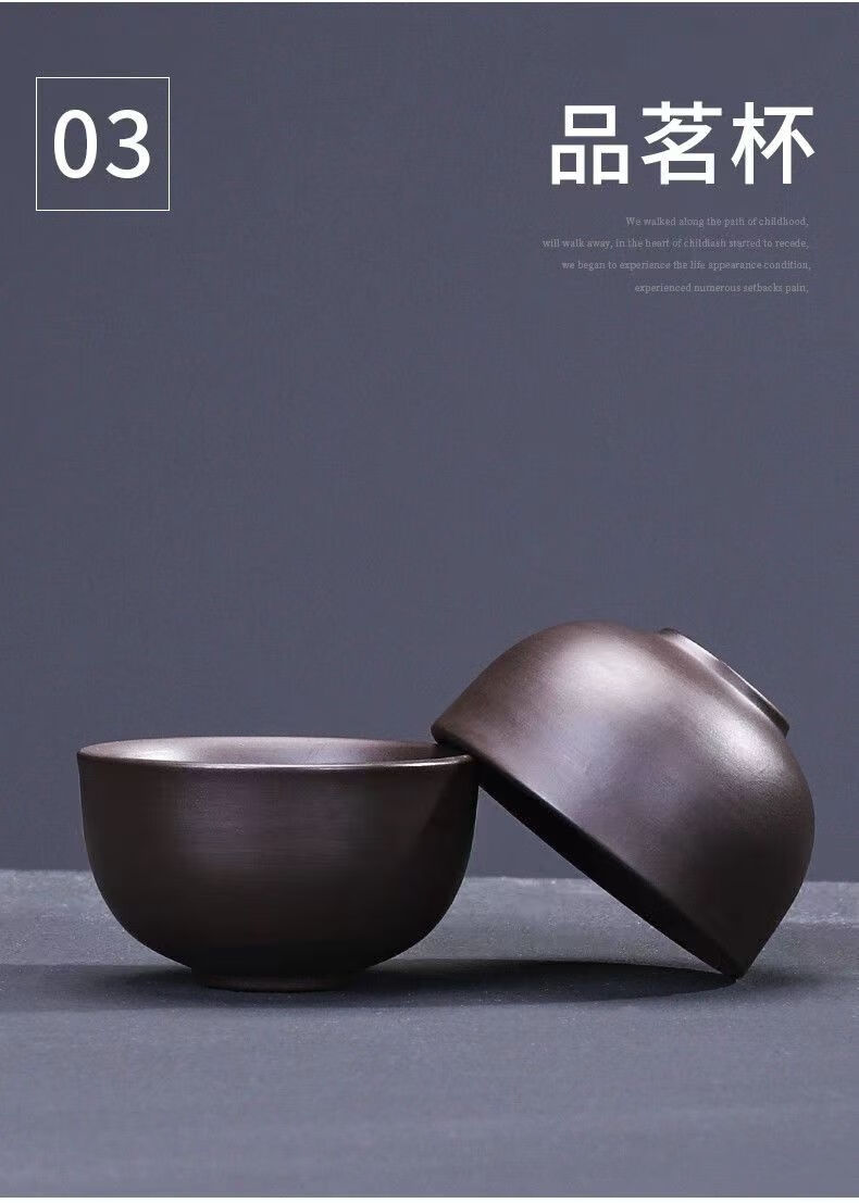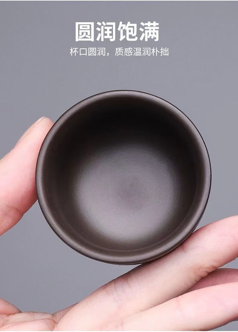 原矿紫砂功夫茶杯品茗杯茶杯套装功夫陶瓷杯家用小号主人杯泡茶 紫砂品茗杯黑色 35ml 6只