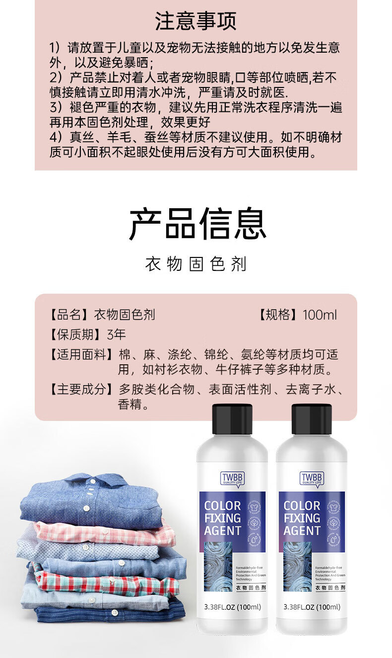 派帝克牛仔裤固色剂防掉色神器黑色纯棉衣服衣物锁色防止退色脱色护色剂 【1瓶装】牛仔裤固色剂100ml