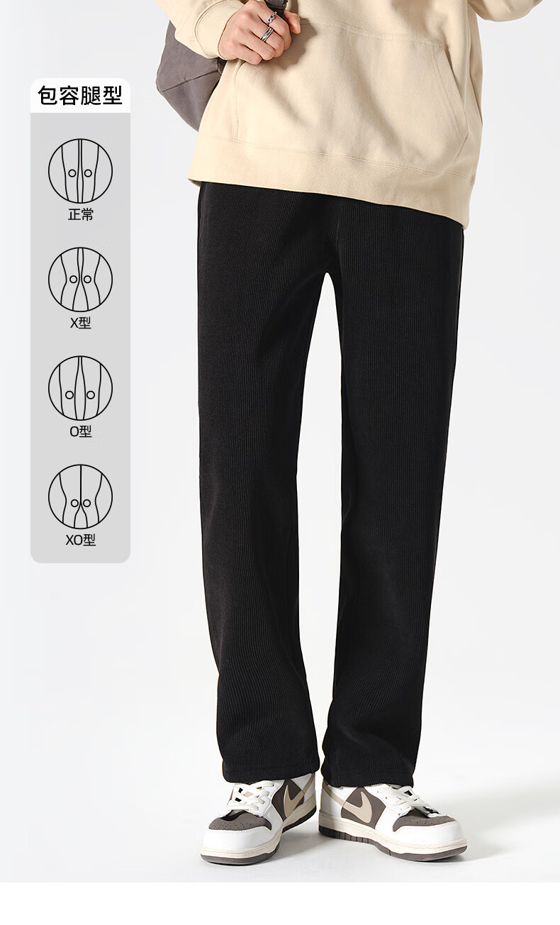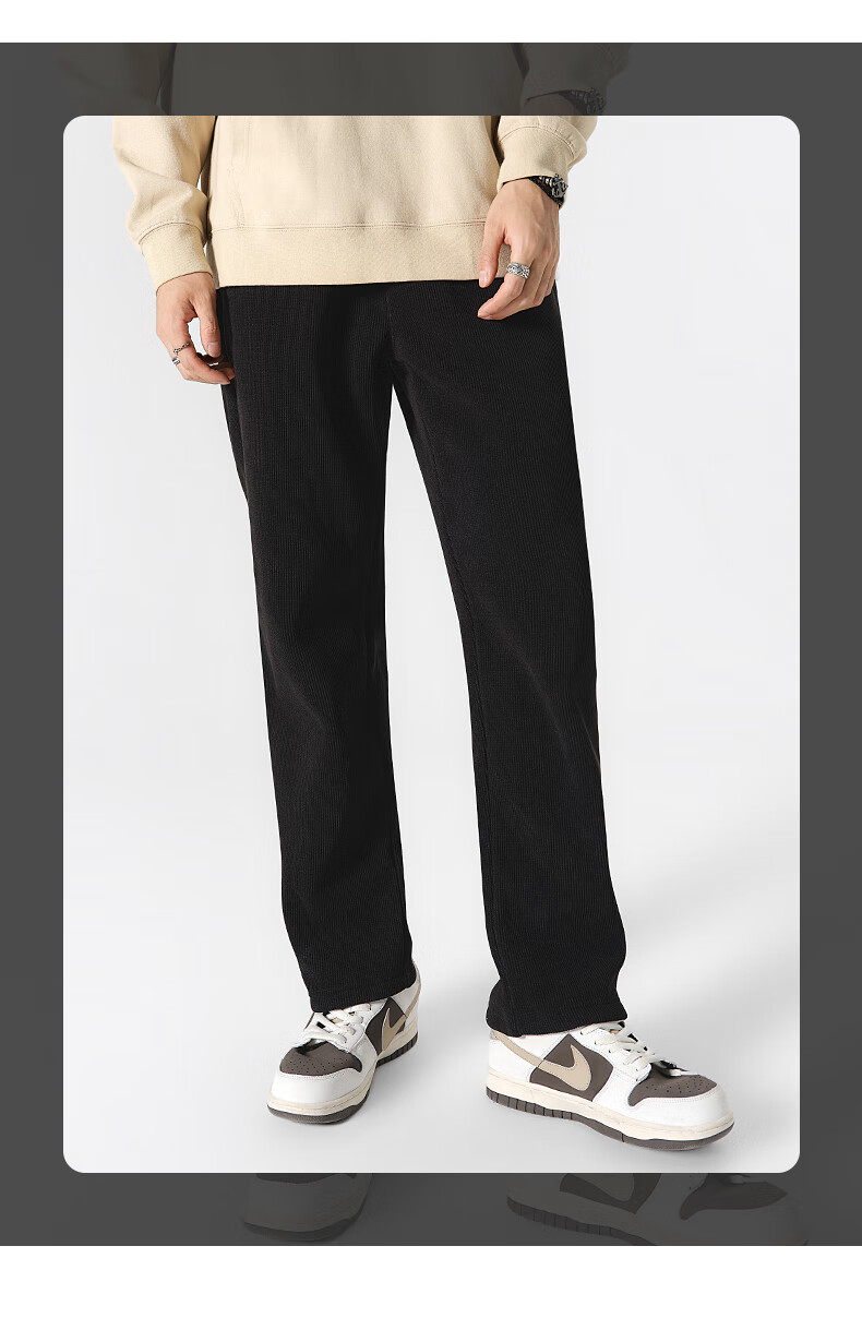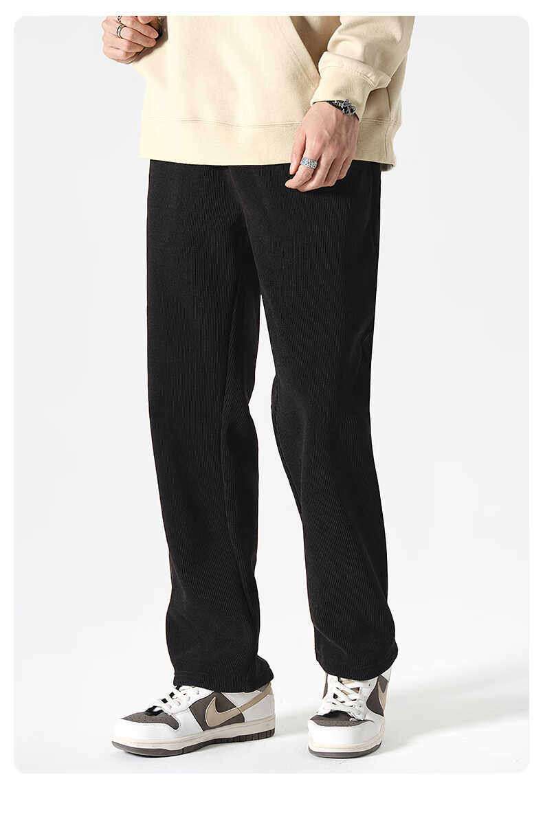 班尼路(Baleno)2025新款雪尼尔加绒直脚休闲阔腿裤男冬季重磅挺阔垂顺百搭直筒裤 【雪尼尔】- 黑#纯色 2XL