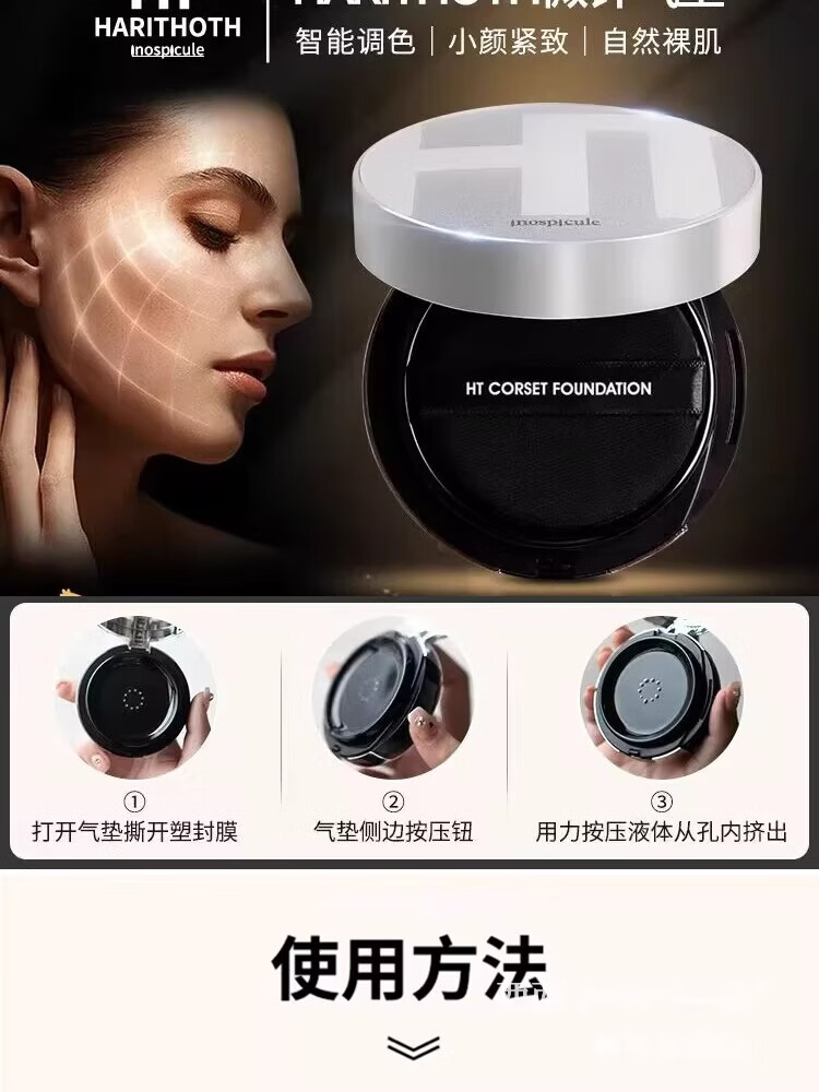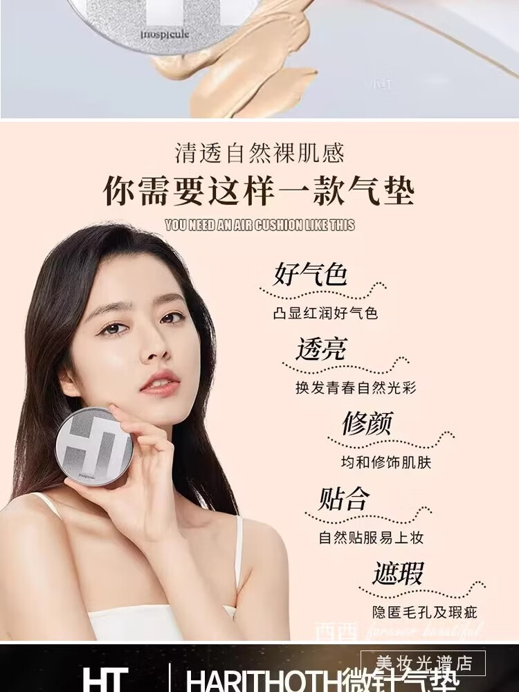 HT日本水光微针气垫二合一养肤遮瑕持久不脱妆提亮保湿控油粉底液 HT微针养肤气垫15g-试用不退