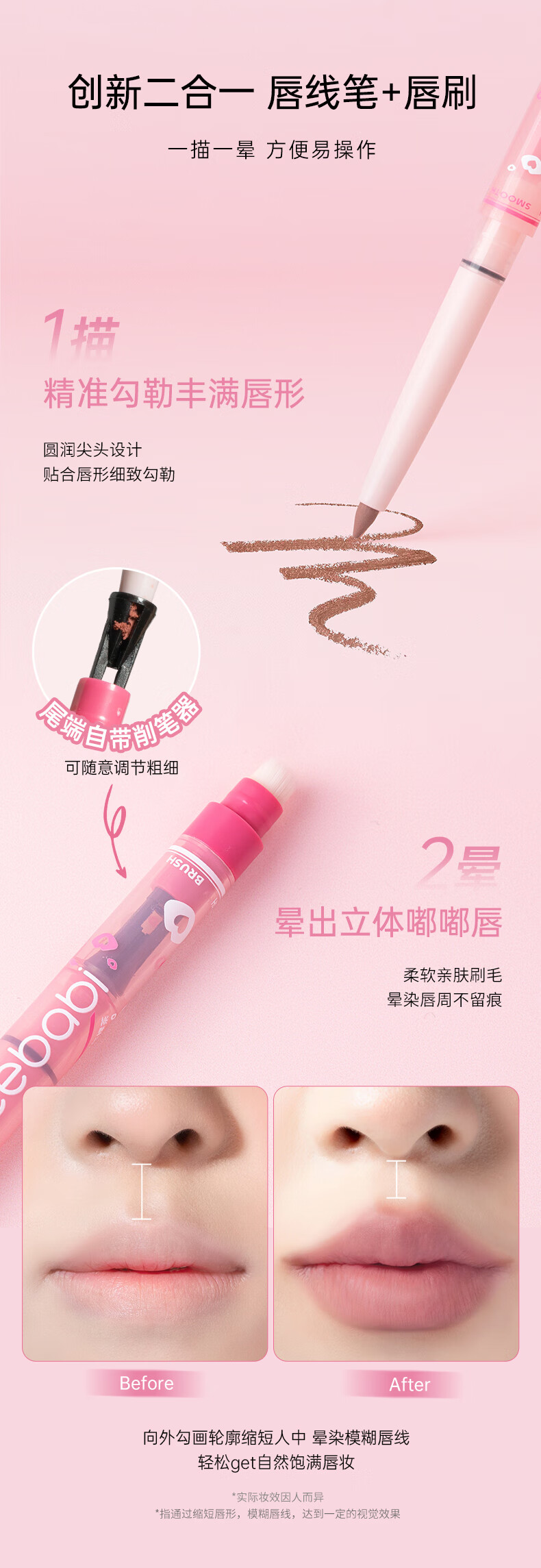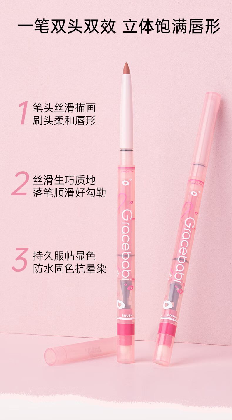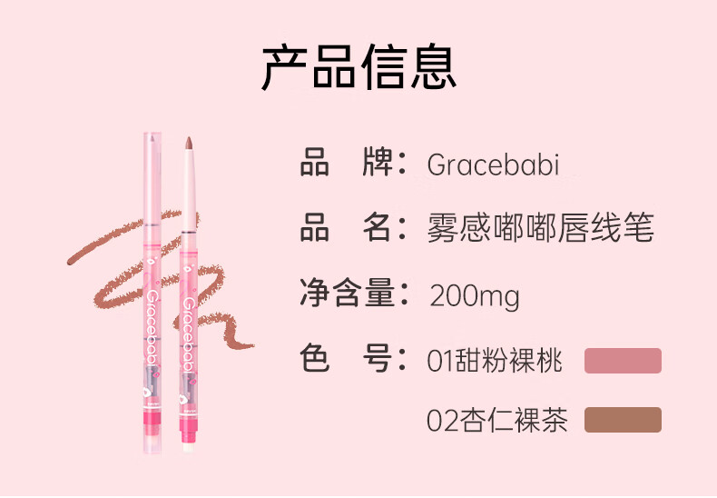 Gracebabi唇线笔雾感嘟嘟勾勒晕染丰唇防水持久 甜粉裸桃*1+ 杏仁裸茶*1