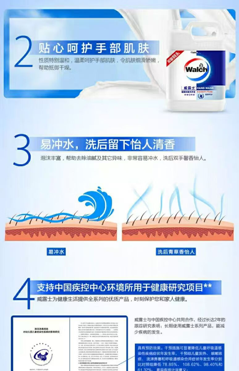 威露士WALCH泡沫洗手液大桶补充装健康呵护抑菌滋润儿童成人酒店通用 青柠莹润5升(泡沫款水状液体