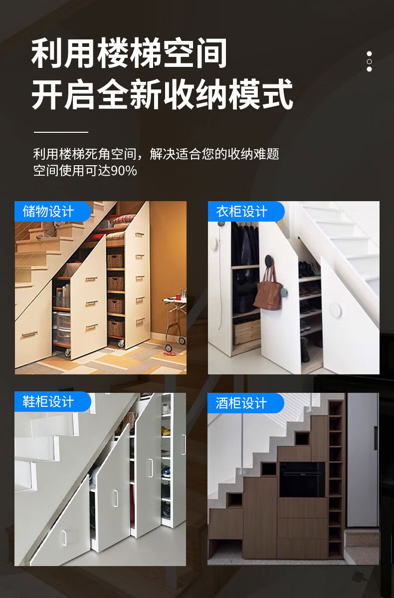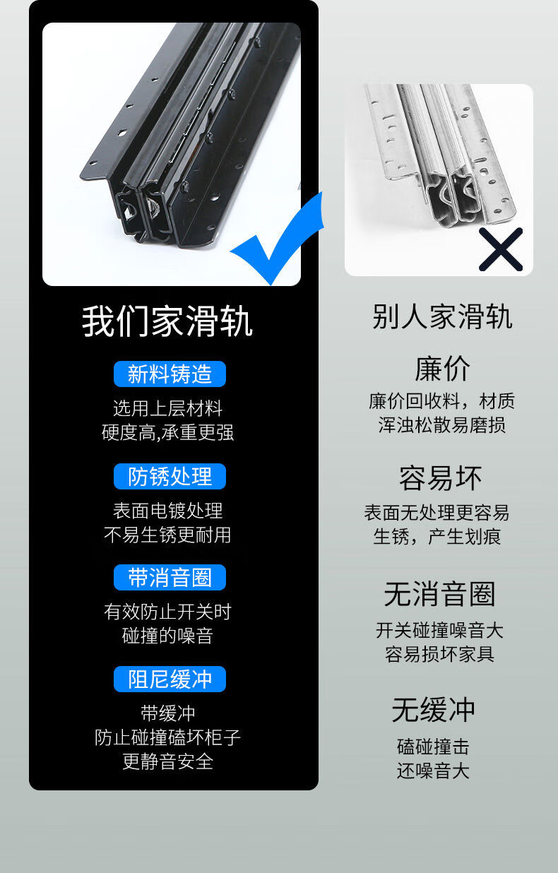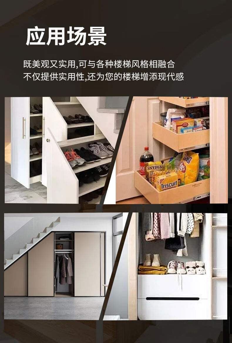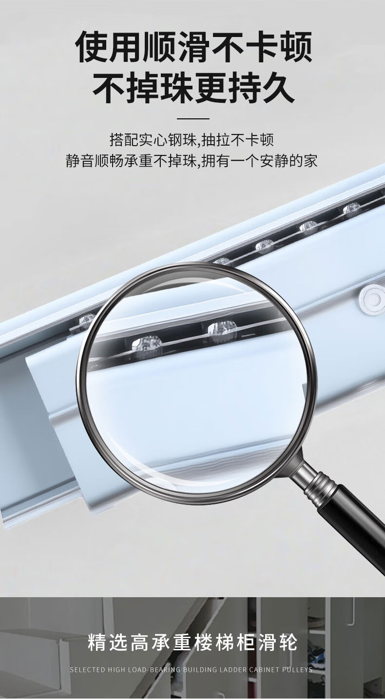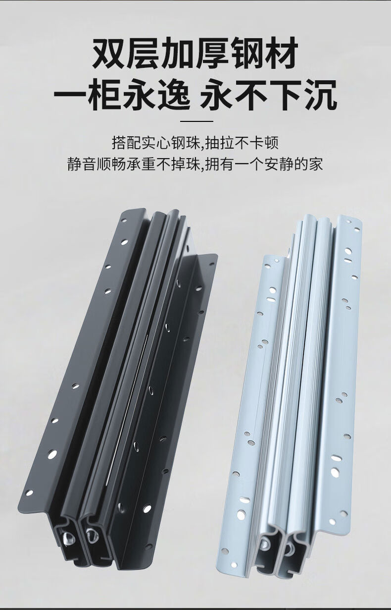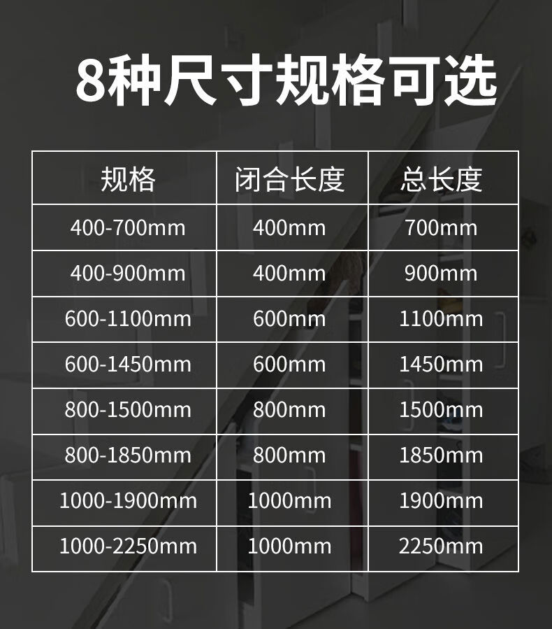 接运猫楼梯柜重型滑轨鞋柜滑道储物柜下轨道高承重楼梯底柜滑轨 闭合500拉出700总长1250黑色