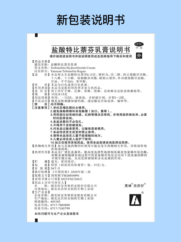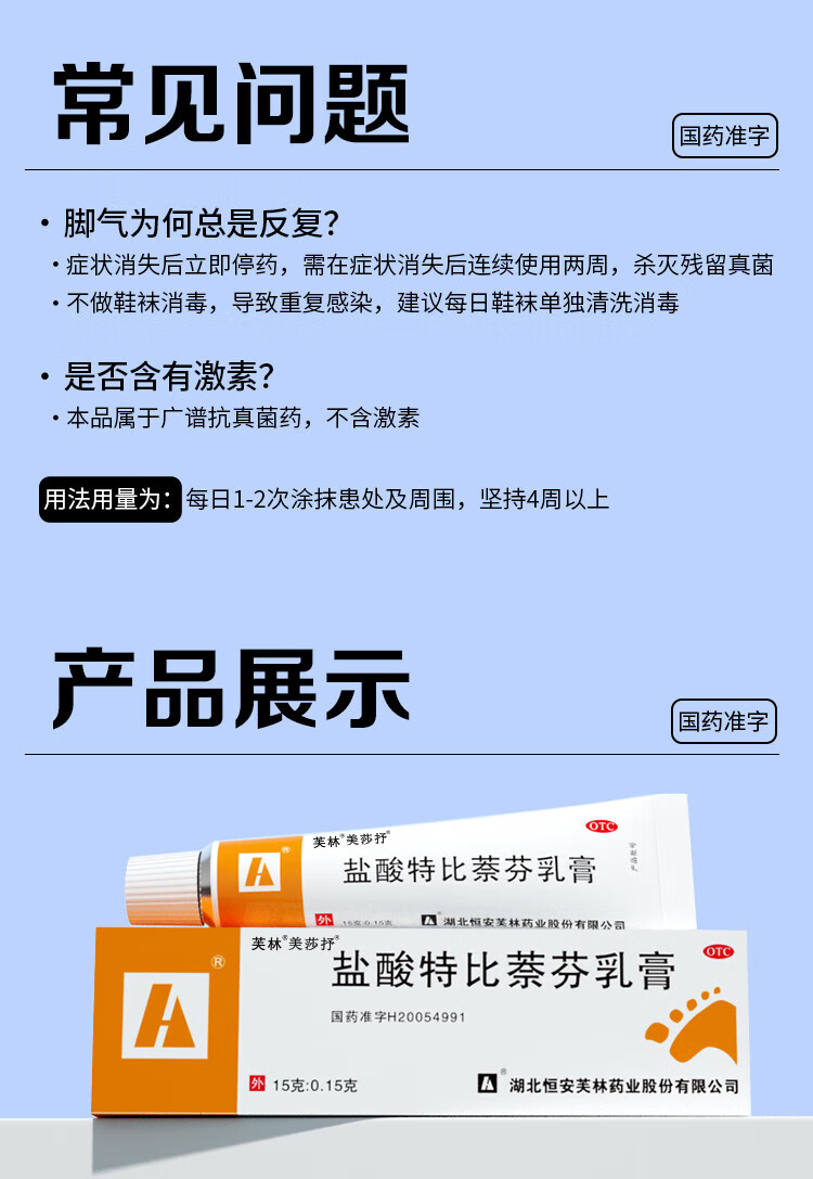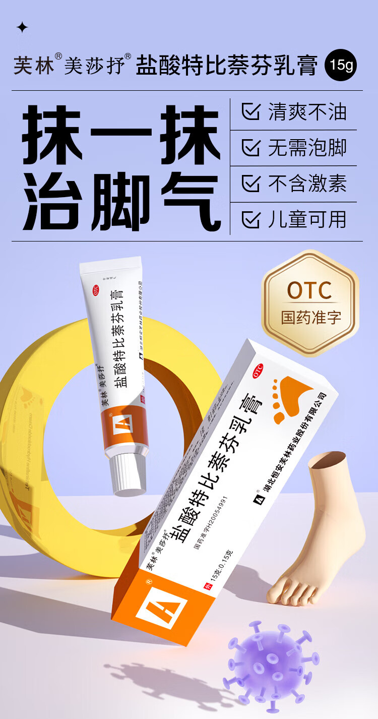 芙林 美莎抒盐酸特比萘芬乳膏15g 脚气药 止痒药膏 手癣足癣体癣股癣花斑癣 皮肤念珠菌病 脚气专用药