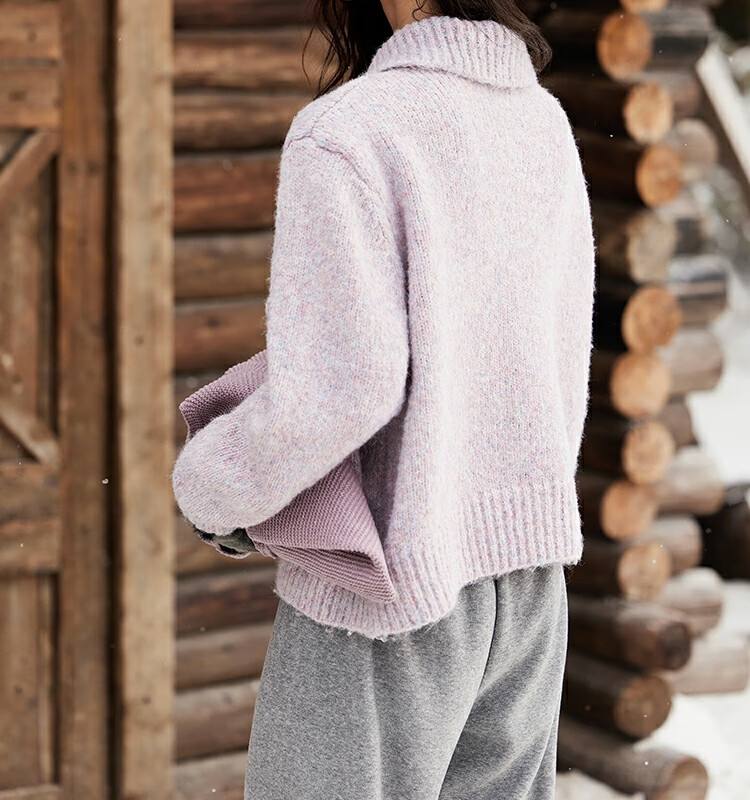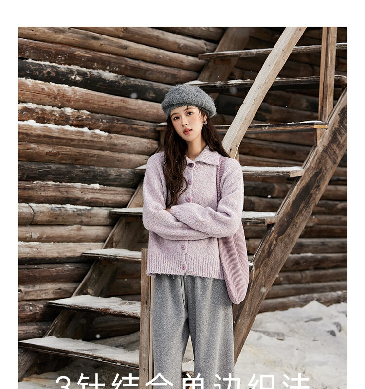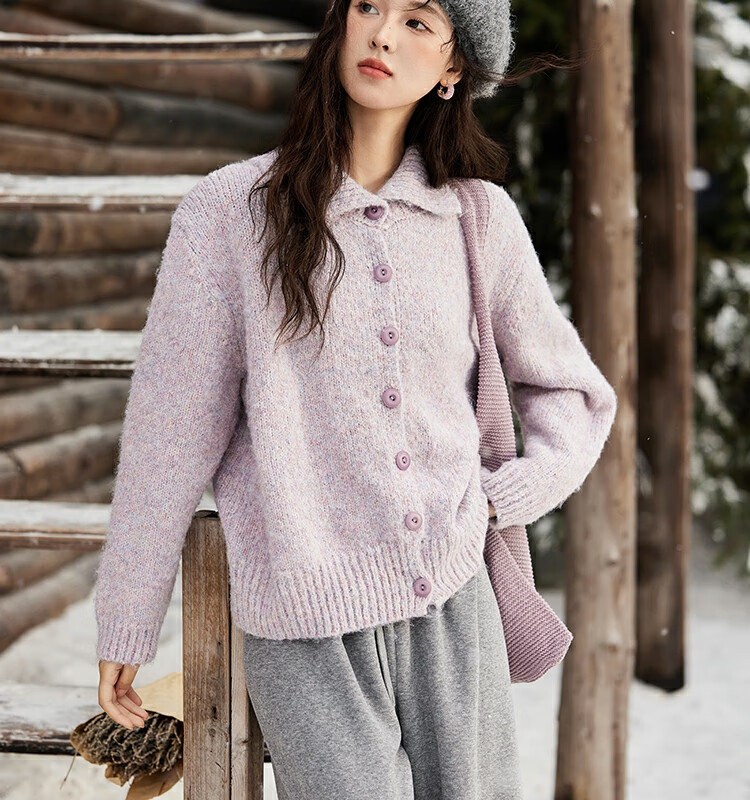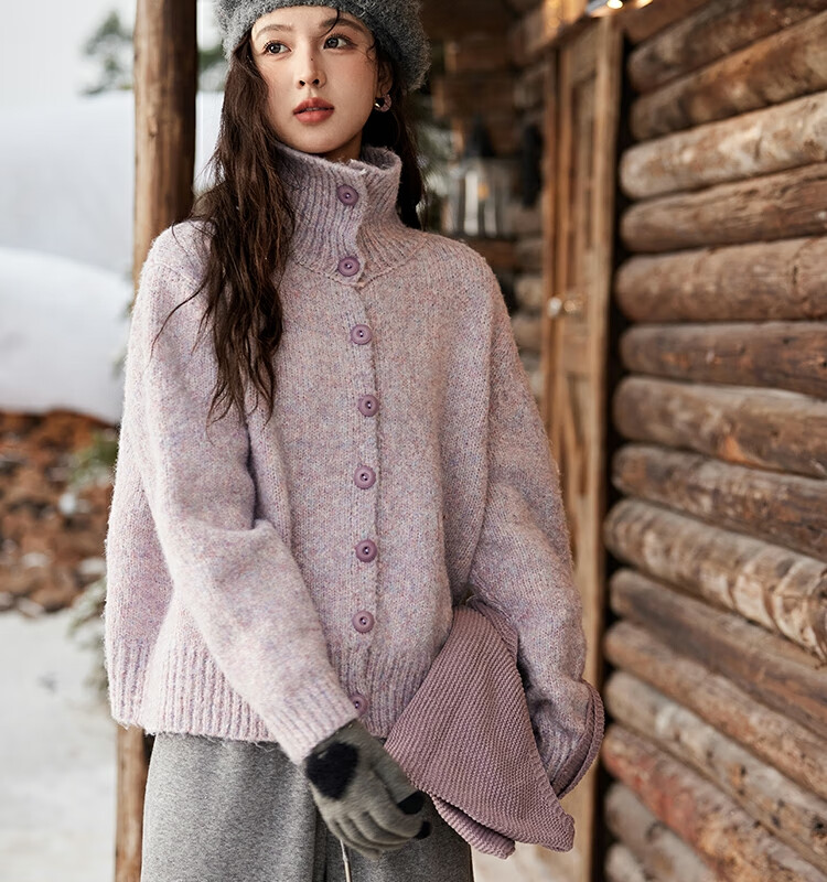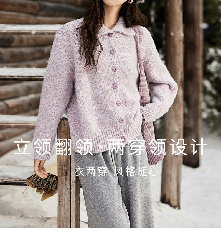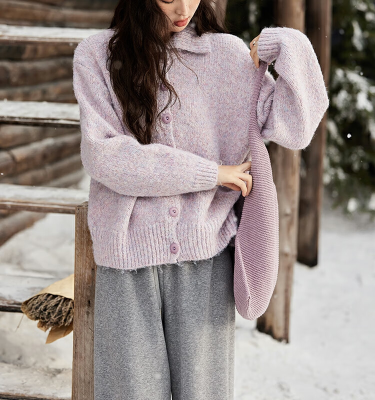 谜秀紫色翻领毛衣外套女秋冬2025高级感慵懒松弛感上衣 香芋紫薯 毛衣 均码