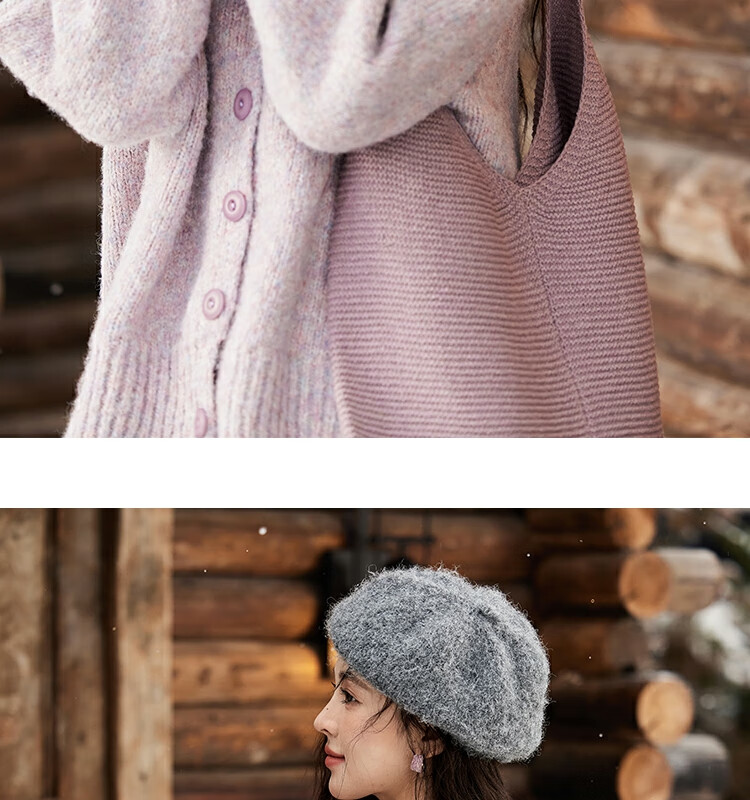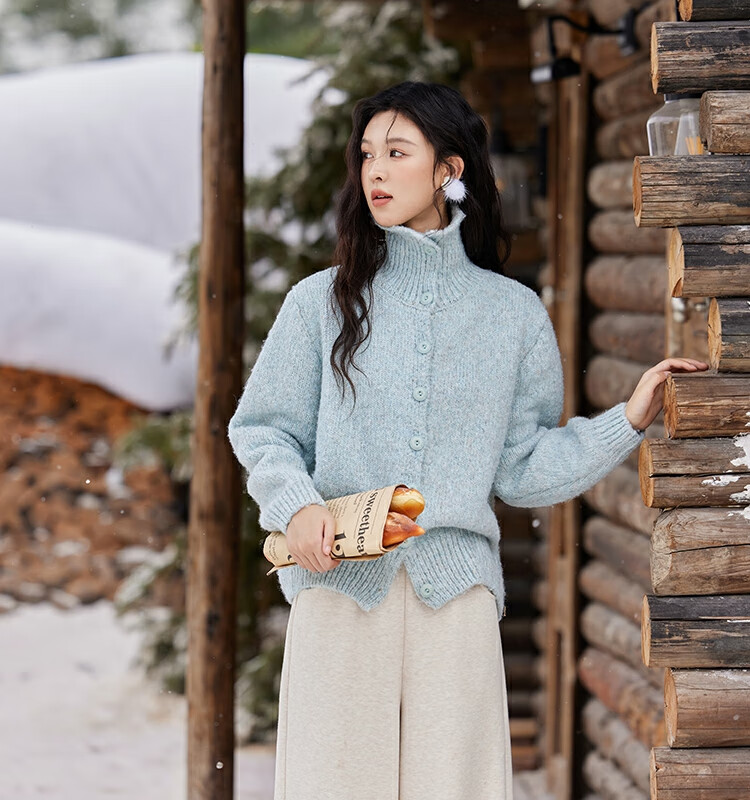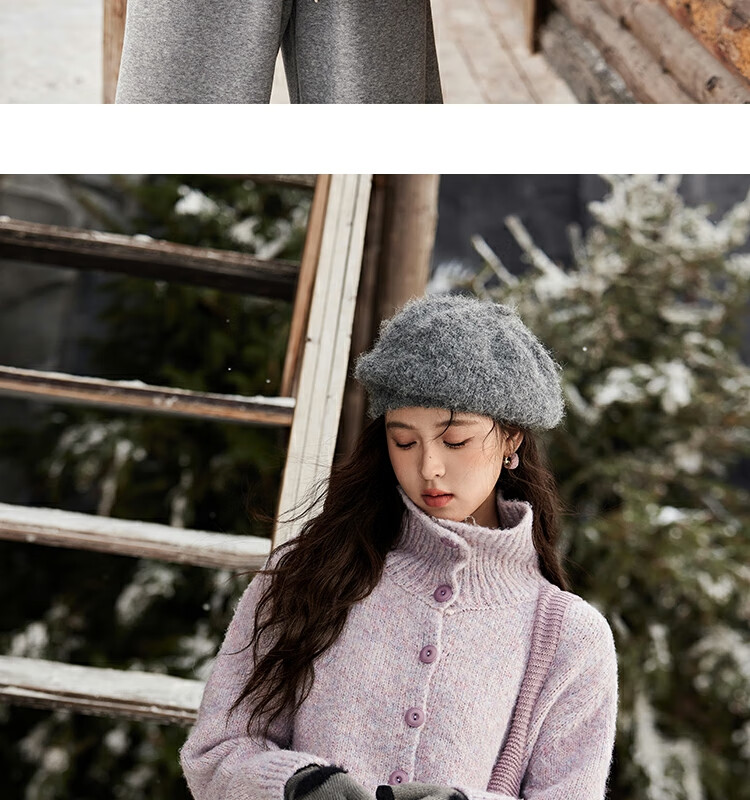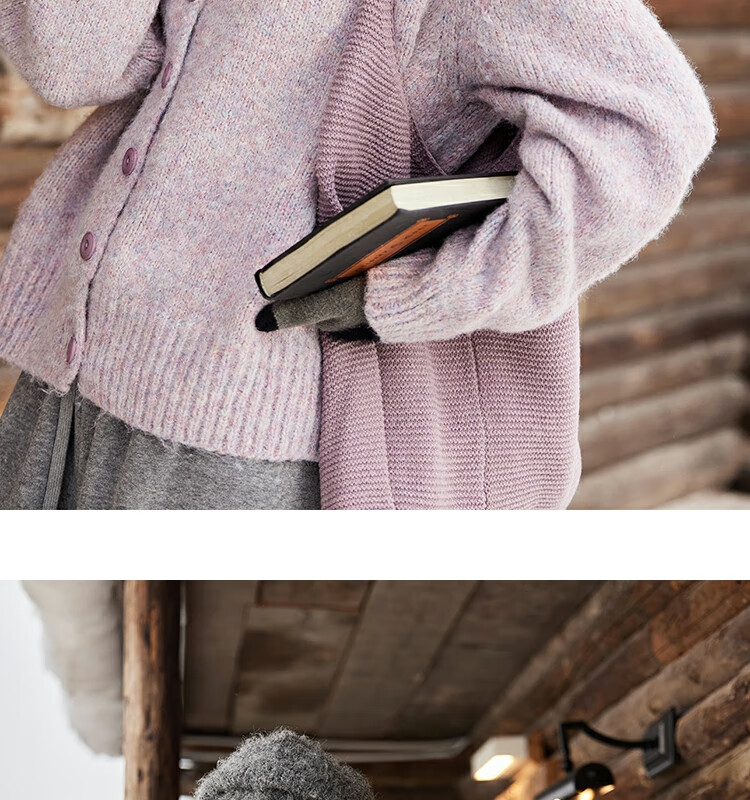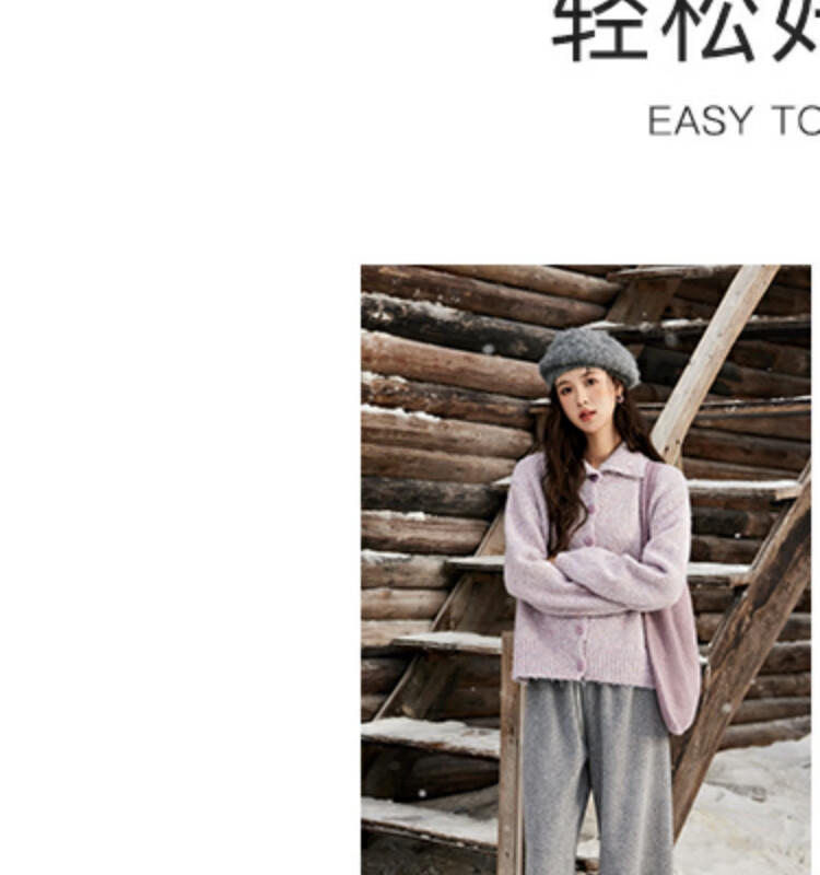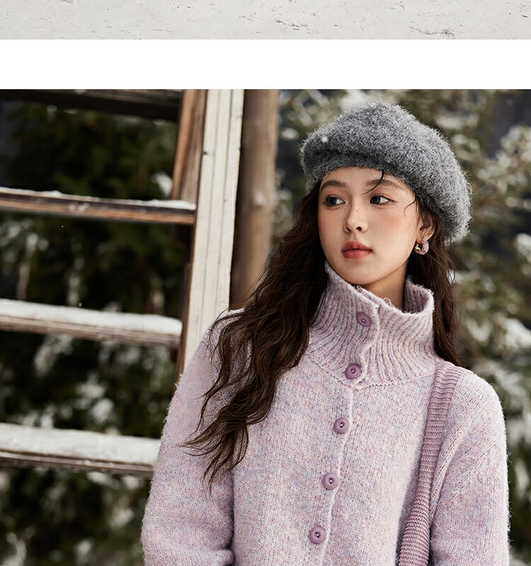 谜秀紫色翻领毛衣外套女秋冬2025高级感慵懒松弛感上衣 香芋紫薯 毛衣 均码