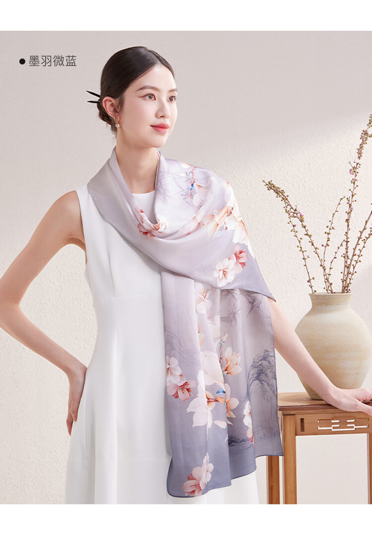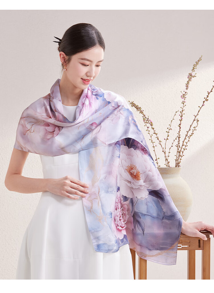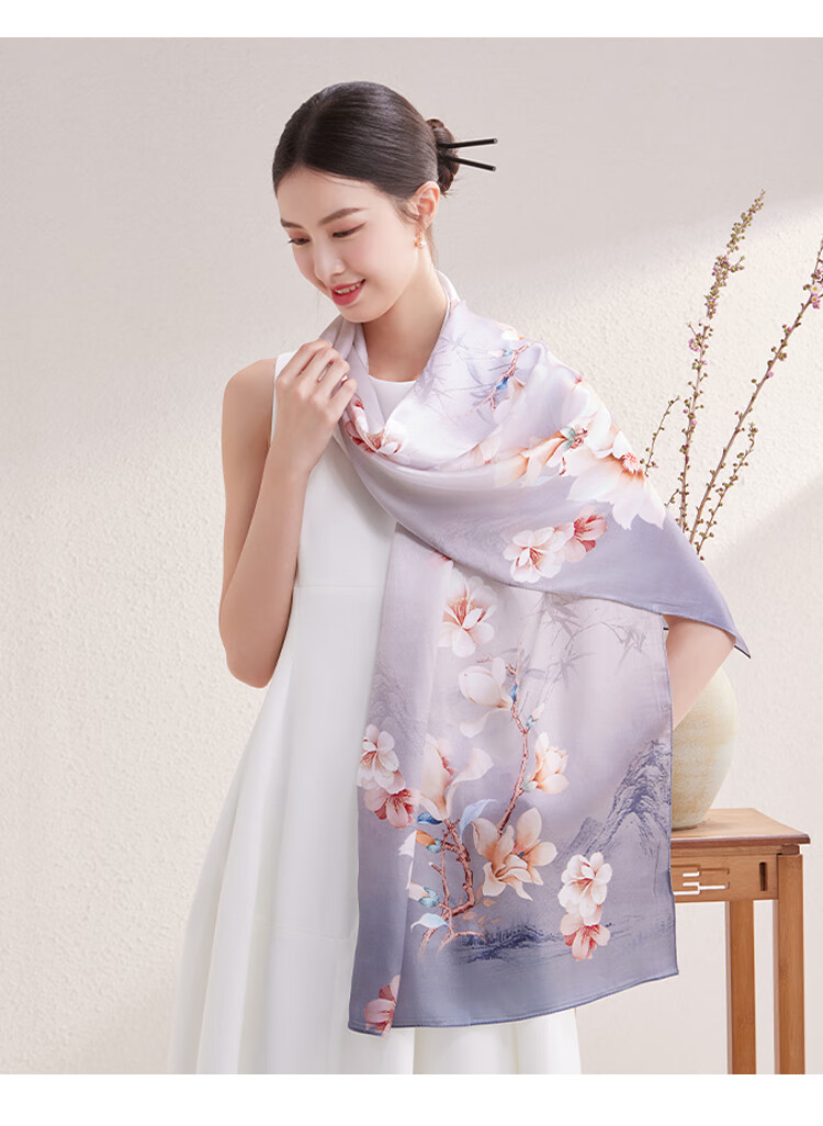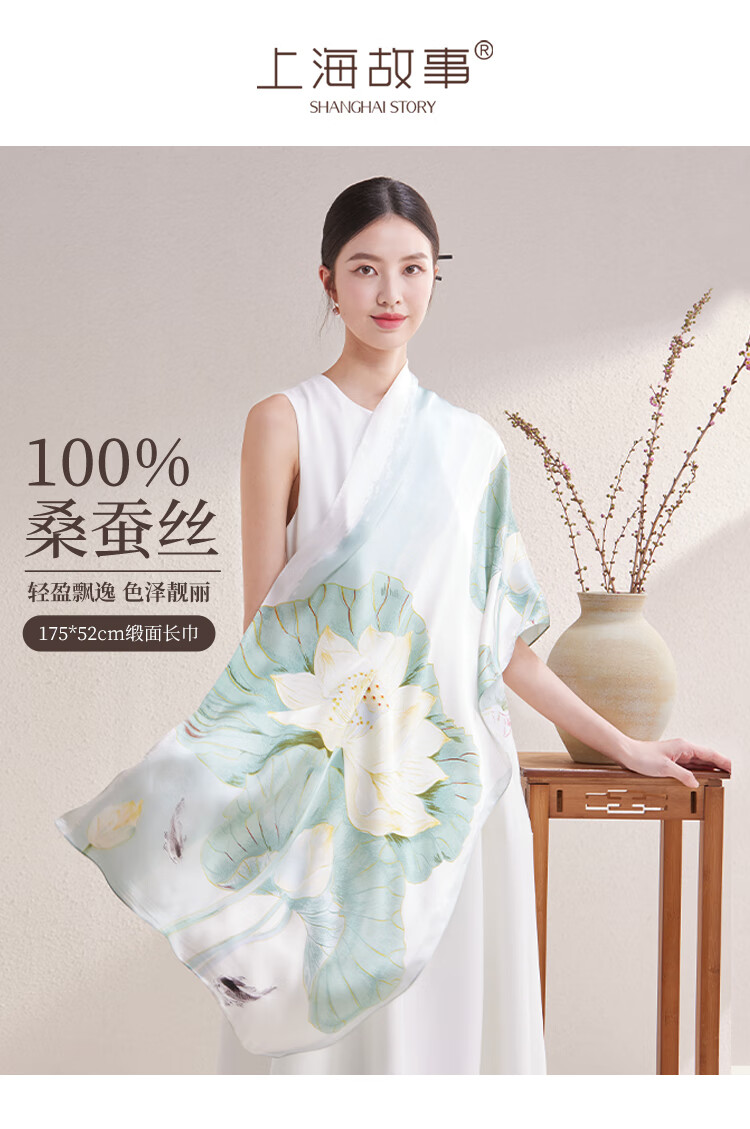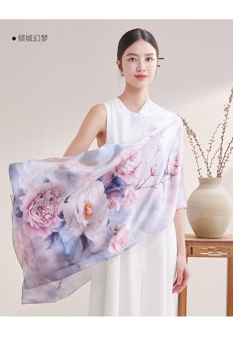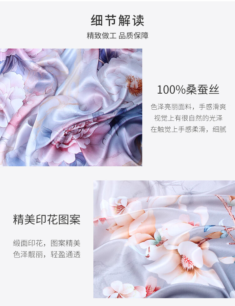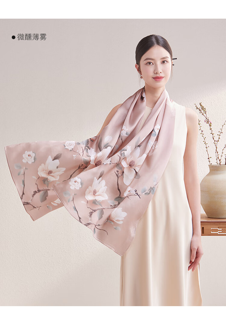 上海故事真丝丝巾100%桑蚕丝绸缎面印花围巾礼盒送妈妈生日礼物 微醺薄雾