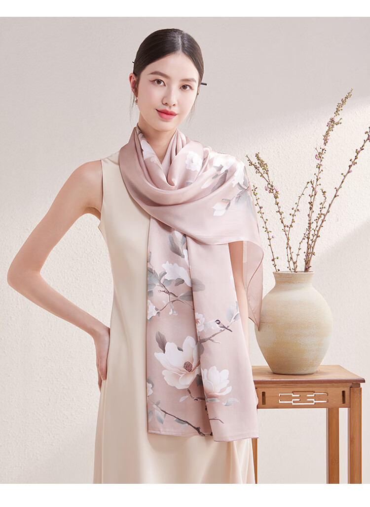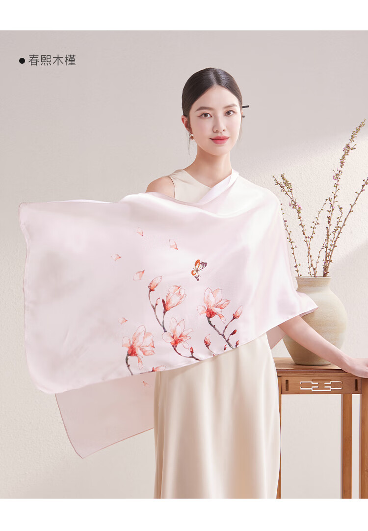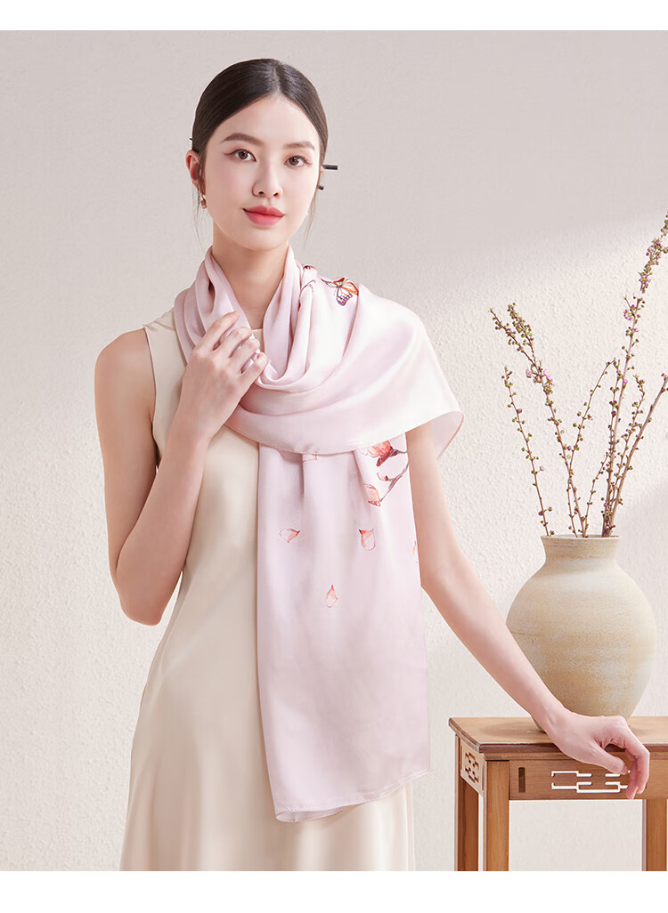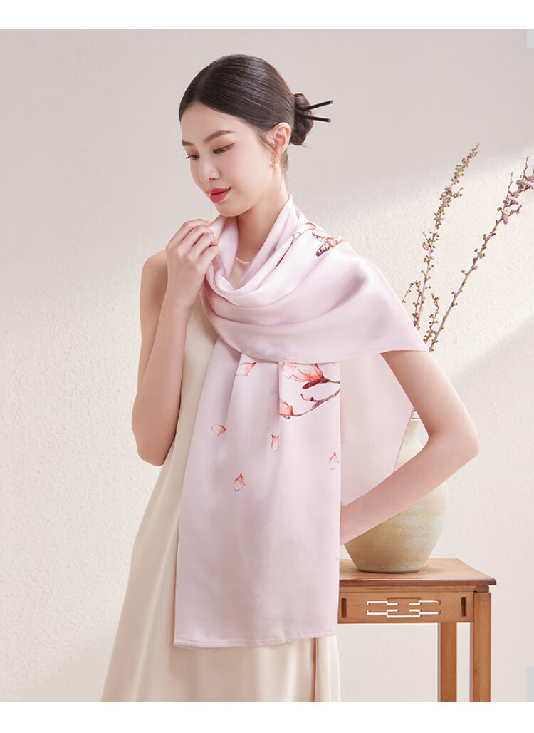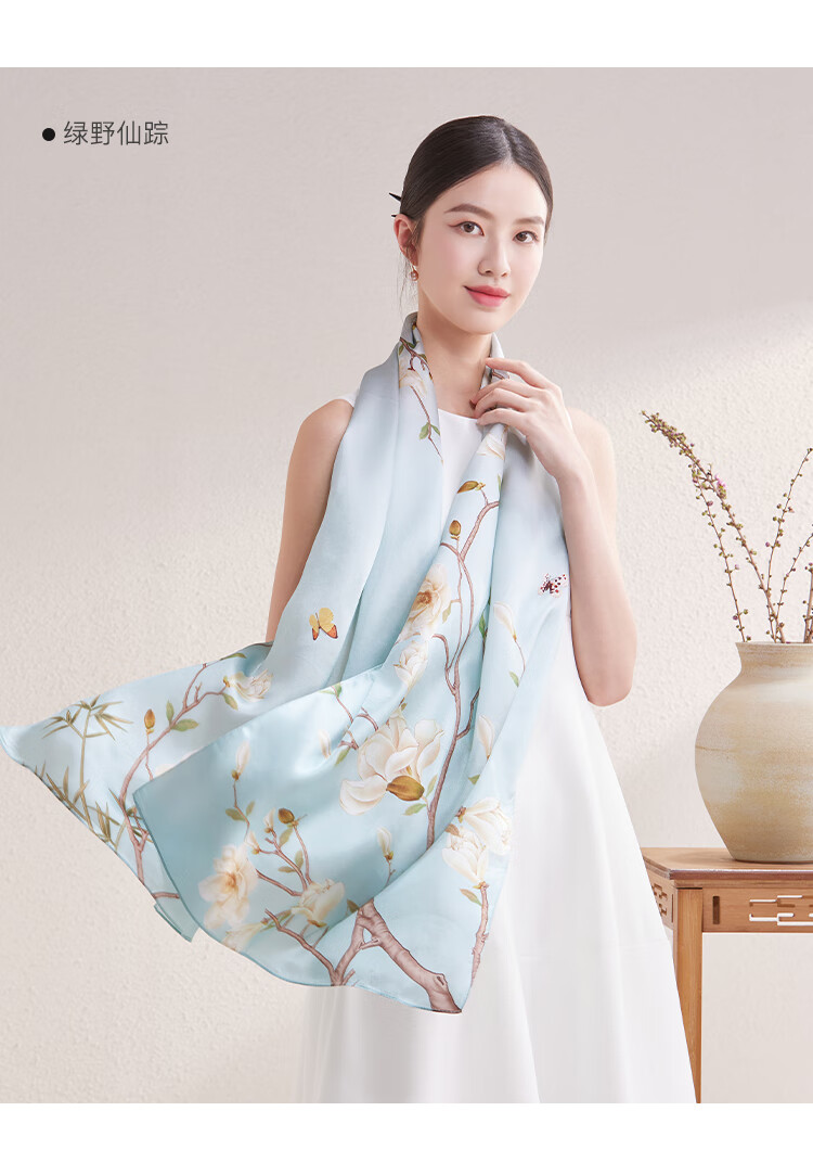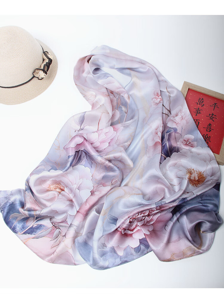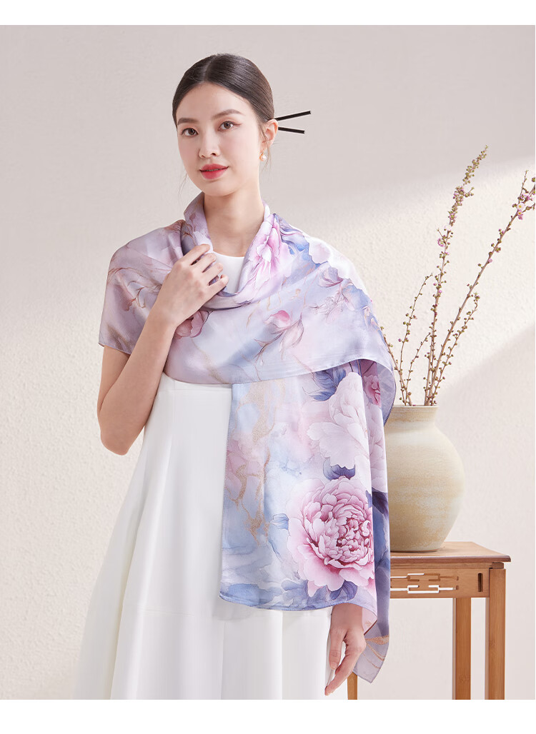 上海故事真丝丝巾100%桑蚕丝绸缎面印花围巾礼盒送妈妈生日礼物 微醺薄雾