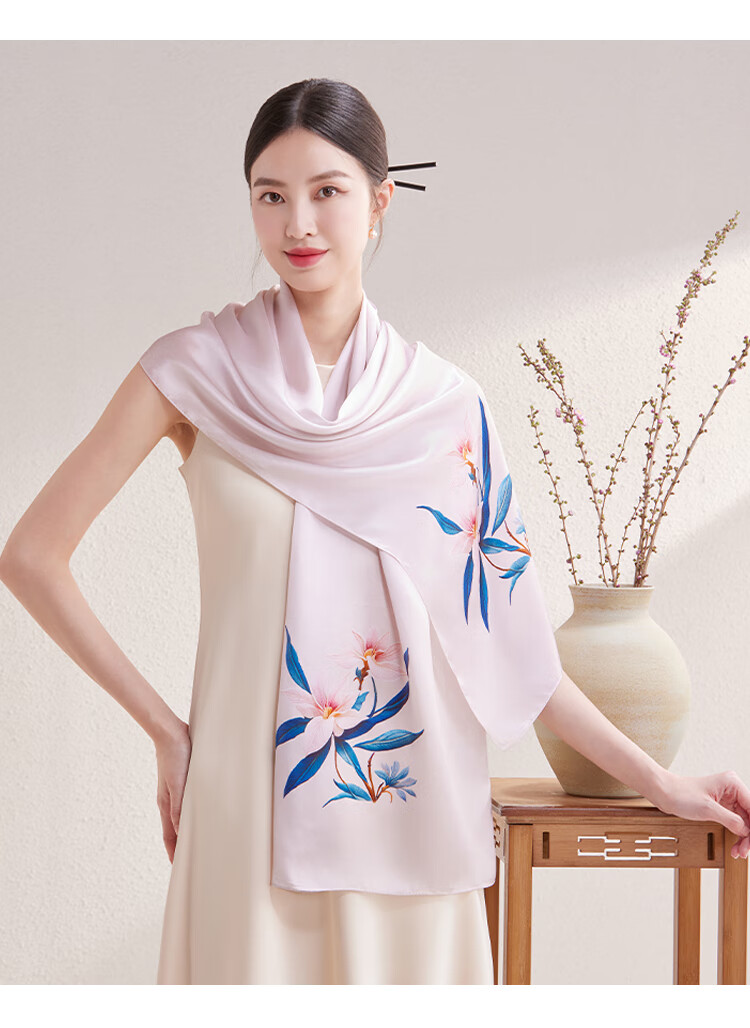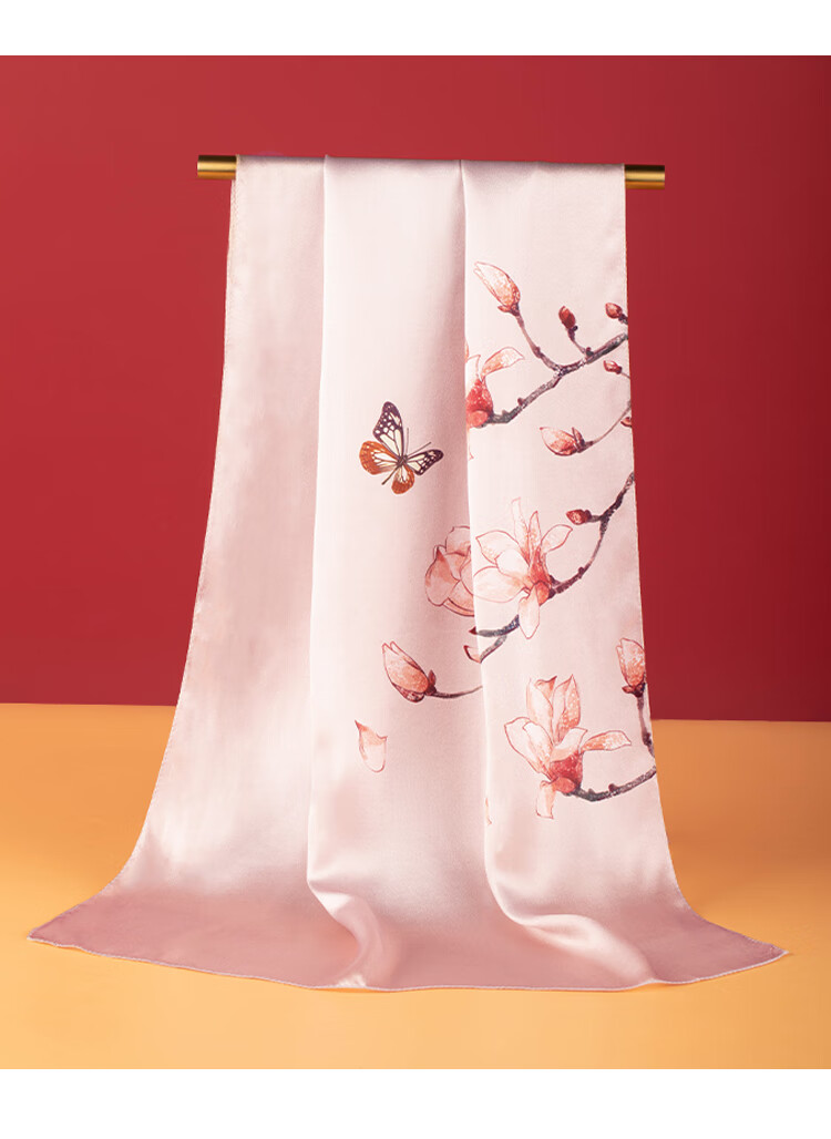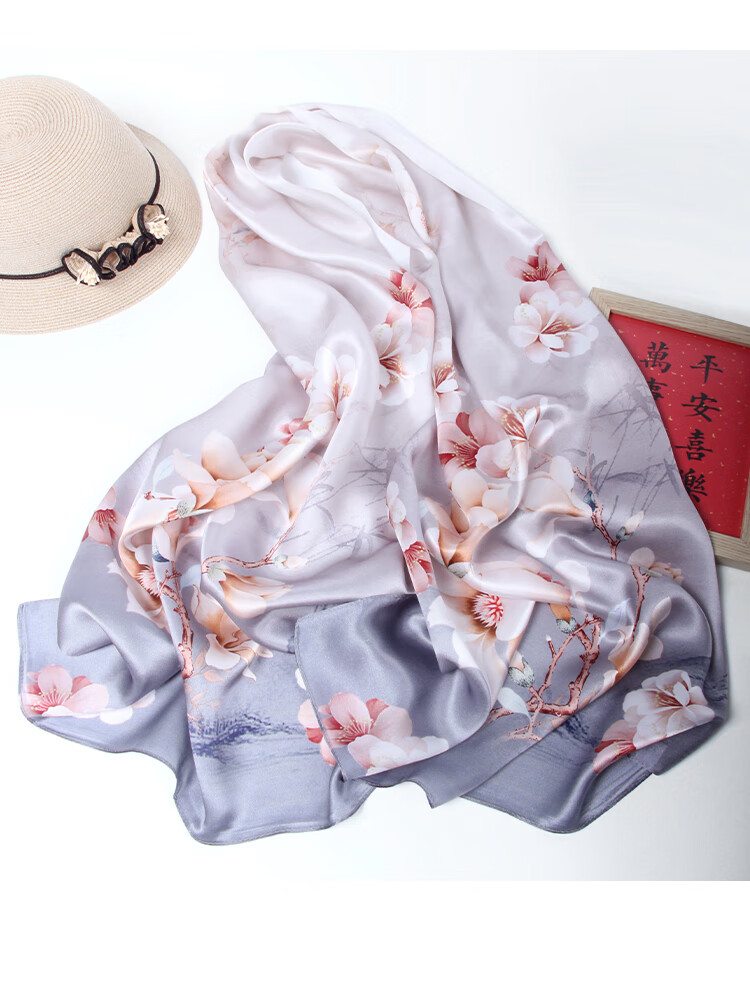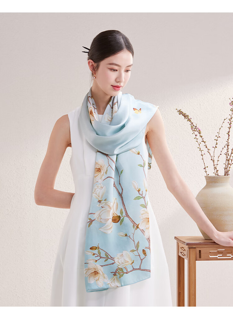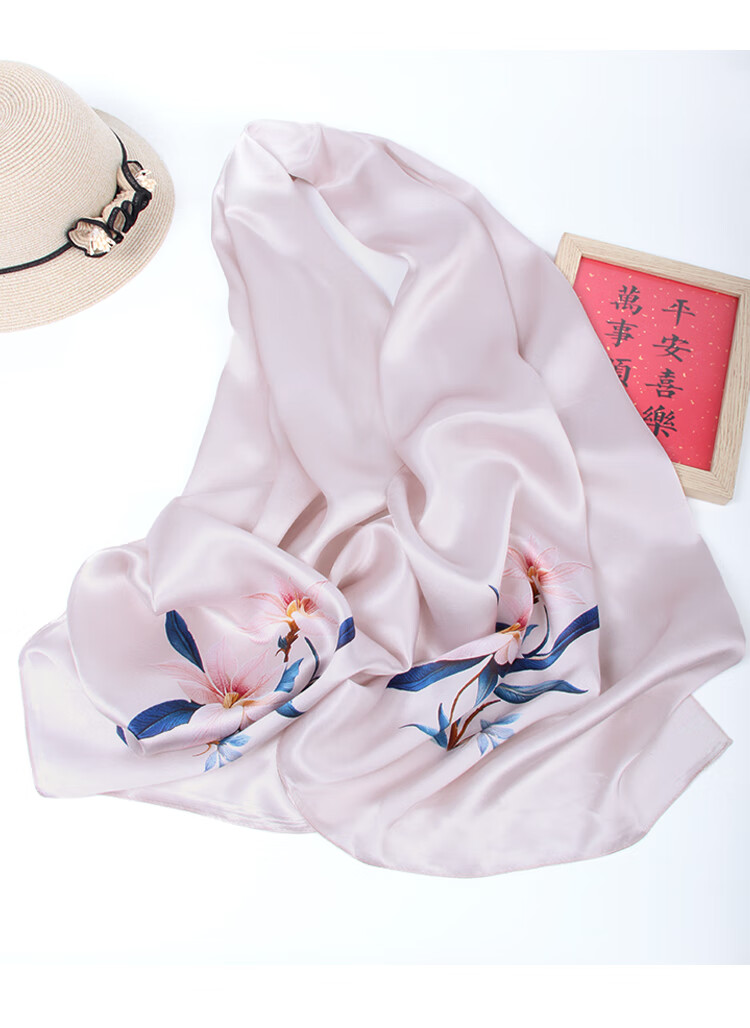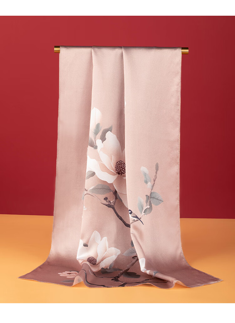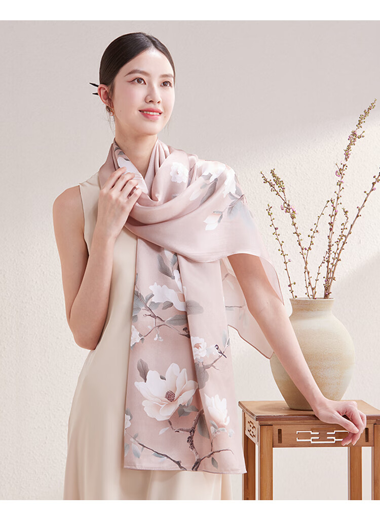 上海故事真丝丝巾100%桑蚕丝绸缎面印花围巾礼盒送妈妈生日礼物 微醺薄雾