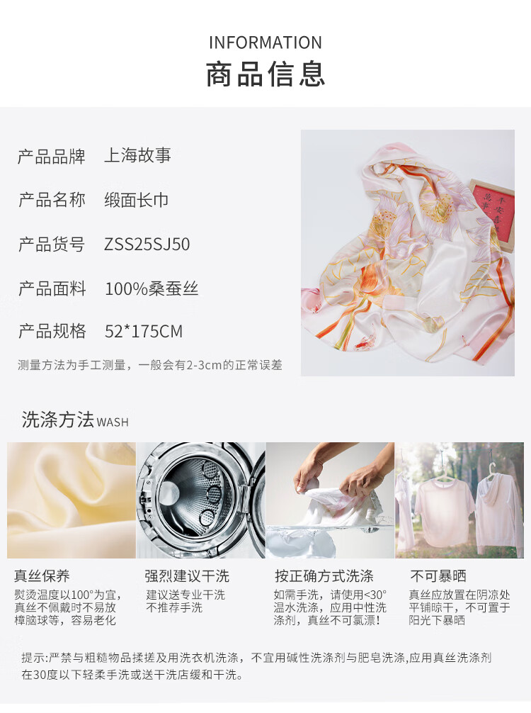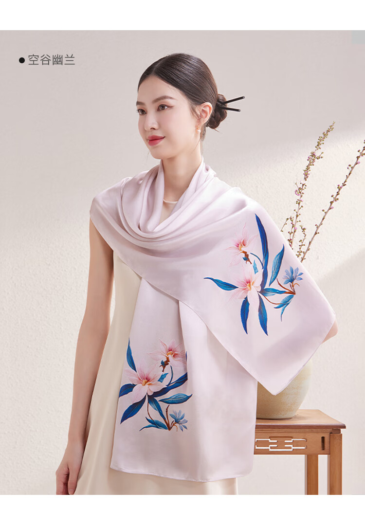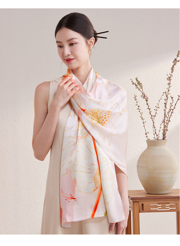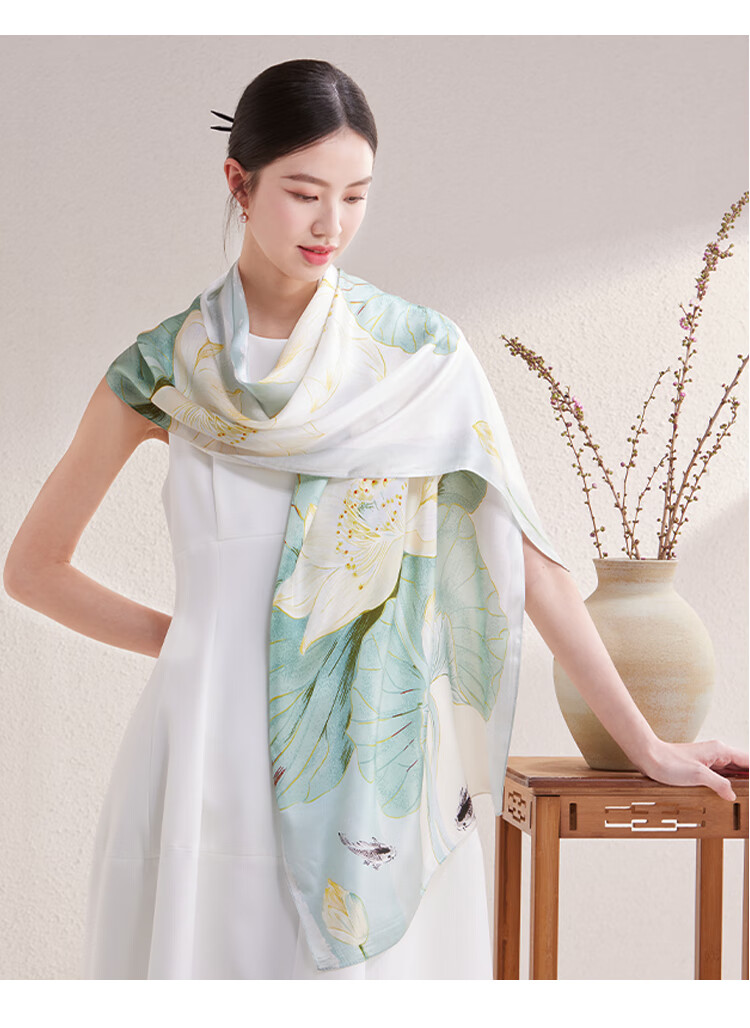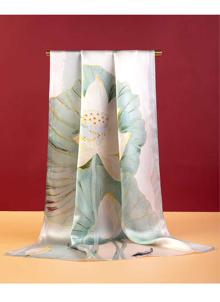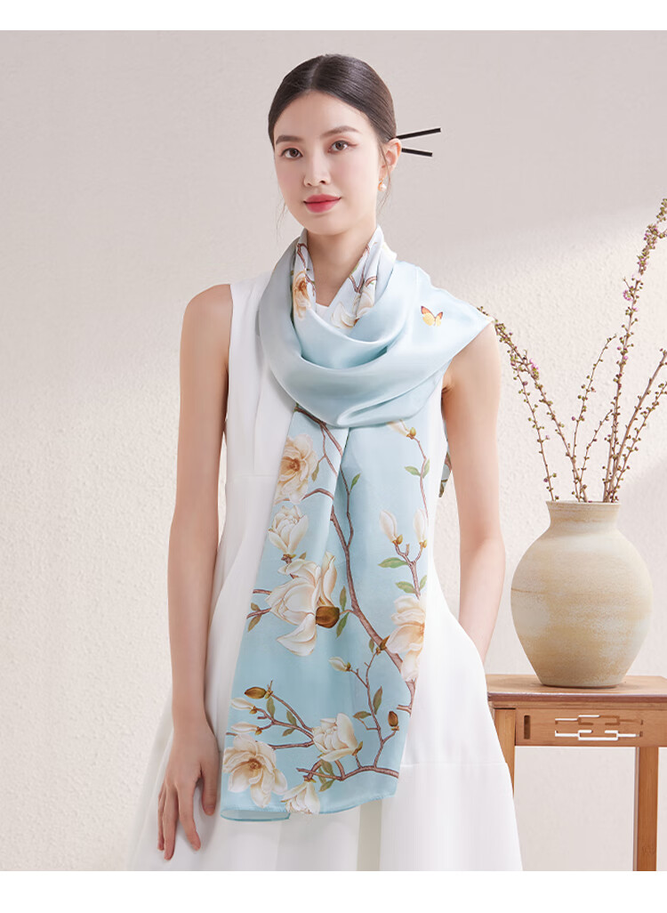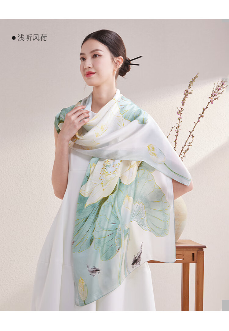 上海故事真丝丝巾100%桑蚕丝绸缎面印花围巾礼盒送妈妈生日礼物 微醺薄雾
