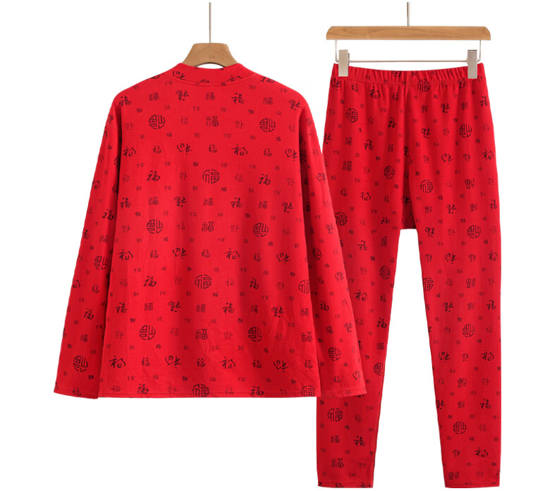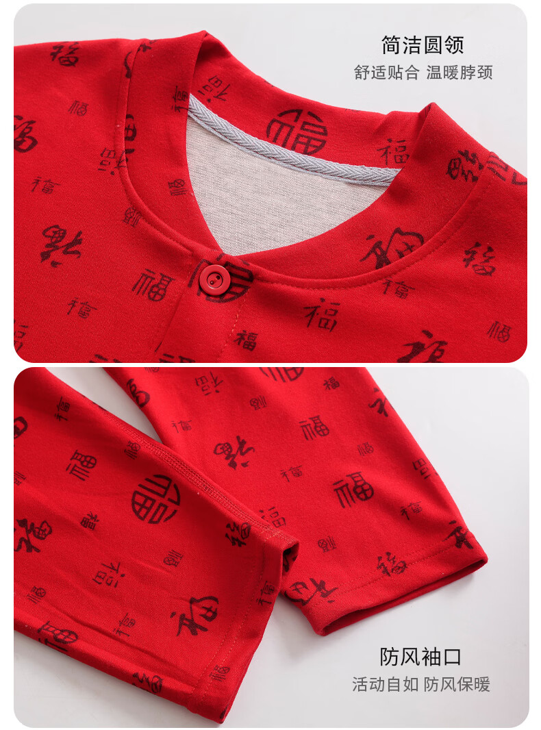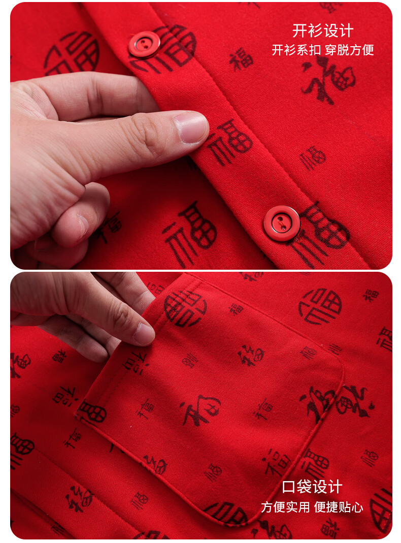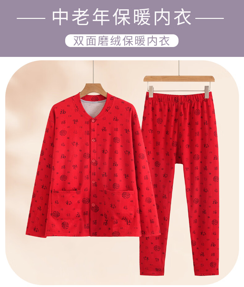 逐暖中老年人本命年男士保暖内衣套装女红色妈妈双面加绒开衫秋衣秋裤 红色福字-女士(双面绒秋衣秋裤套装) 3XL (建议140-160斤)
