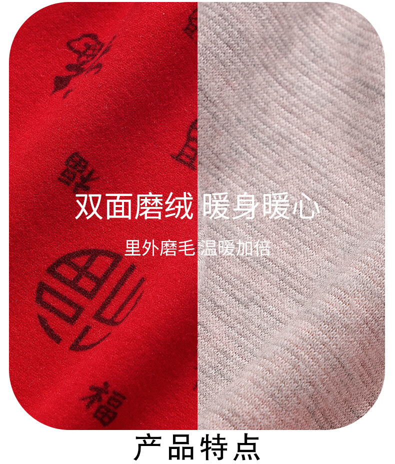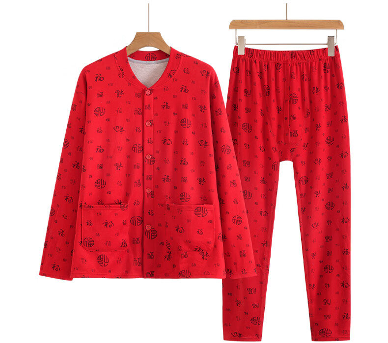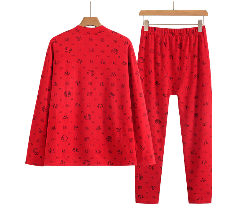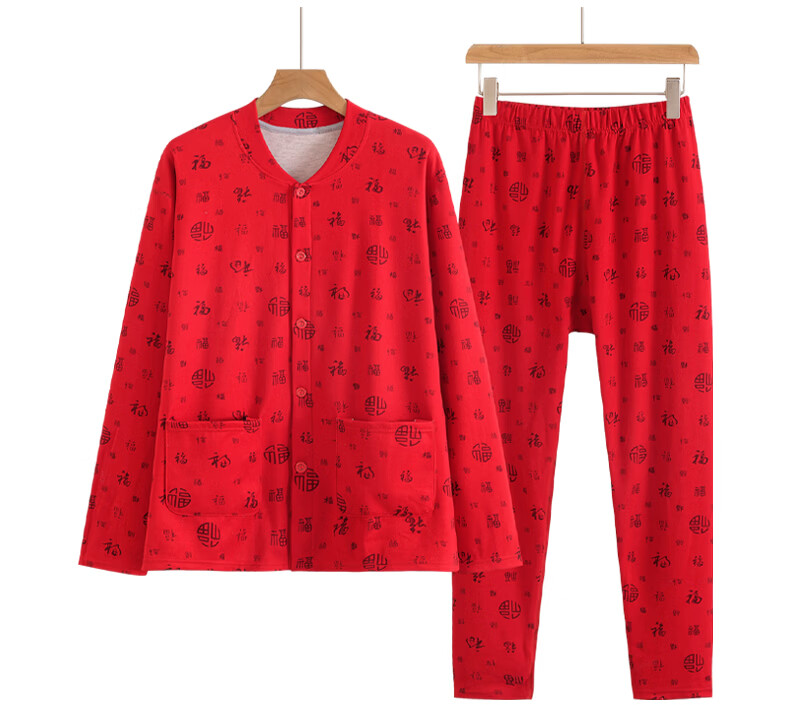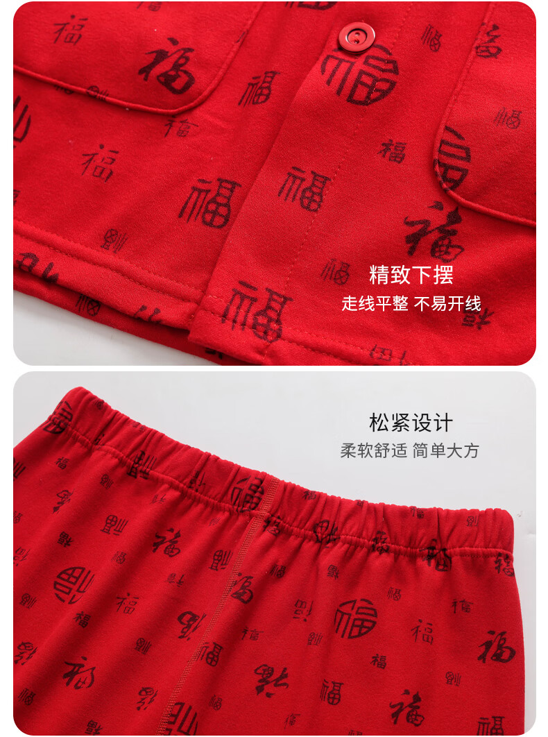 逐暖中老年人本命年男士保暖内衣套装女红色妈妈双面加绒开衫秋衣秋裤 红色福字-女士(双面绒秋衣秋裤套装) 3XL (建议140-160斤)