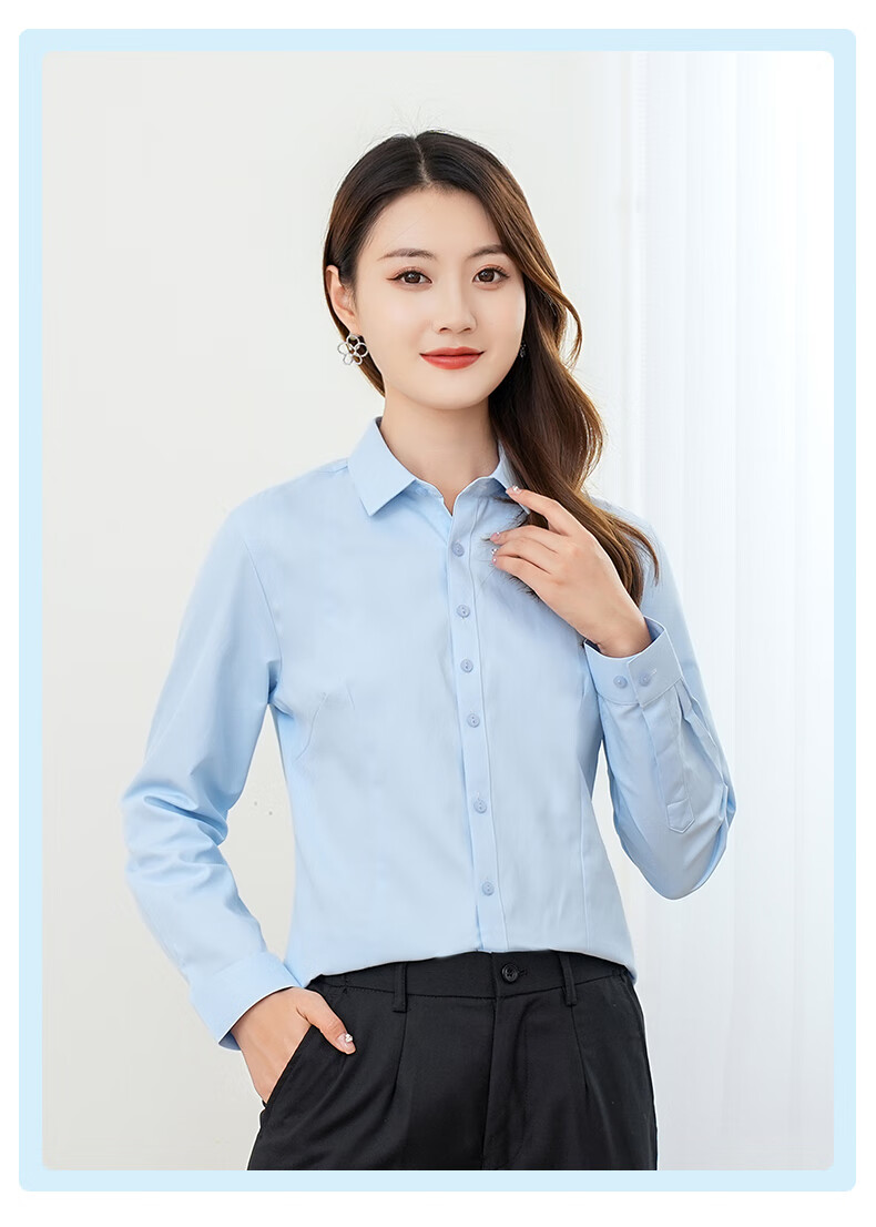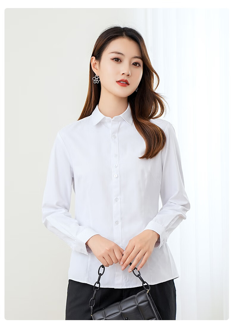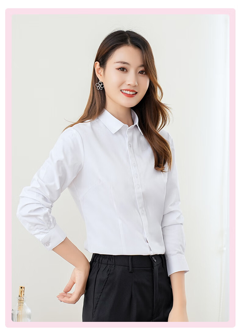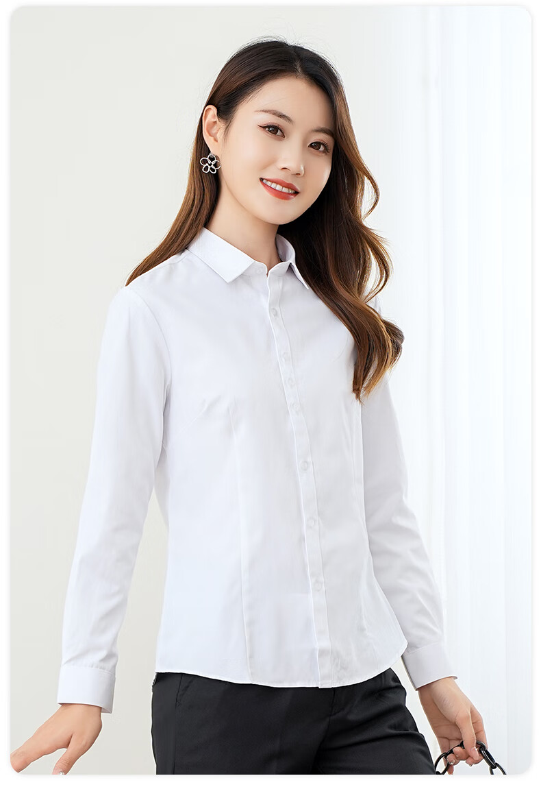 罗蒙棉质长袖衬衫女士四季职业装修身商务打底工装衬衣面试酒店工作服
