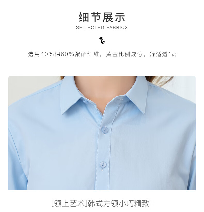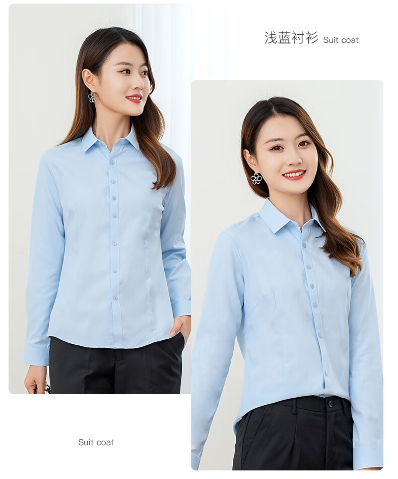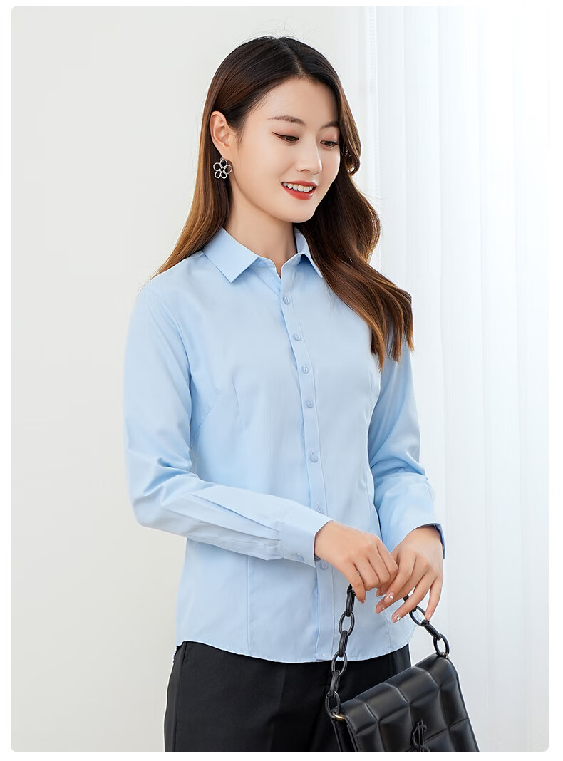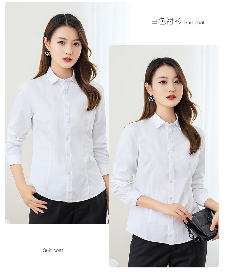 罗蒙棉质长袖衬衫女士四季职业装修身商务打底工装衬衣面试酒店工作服