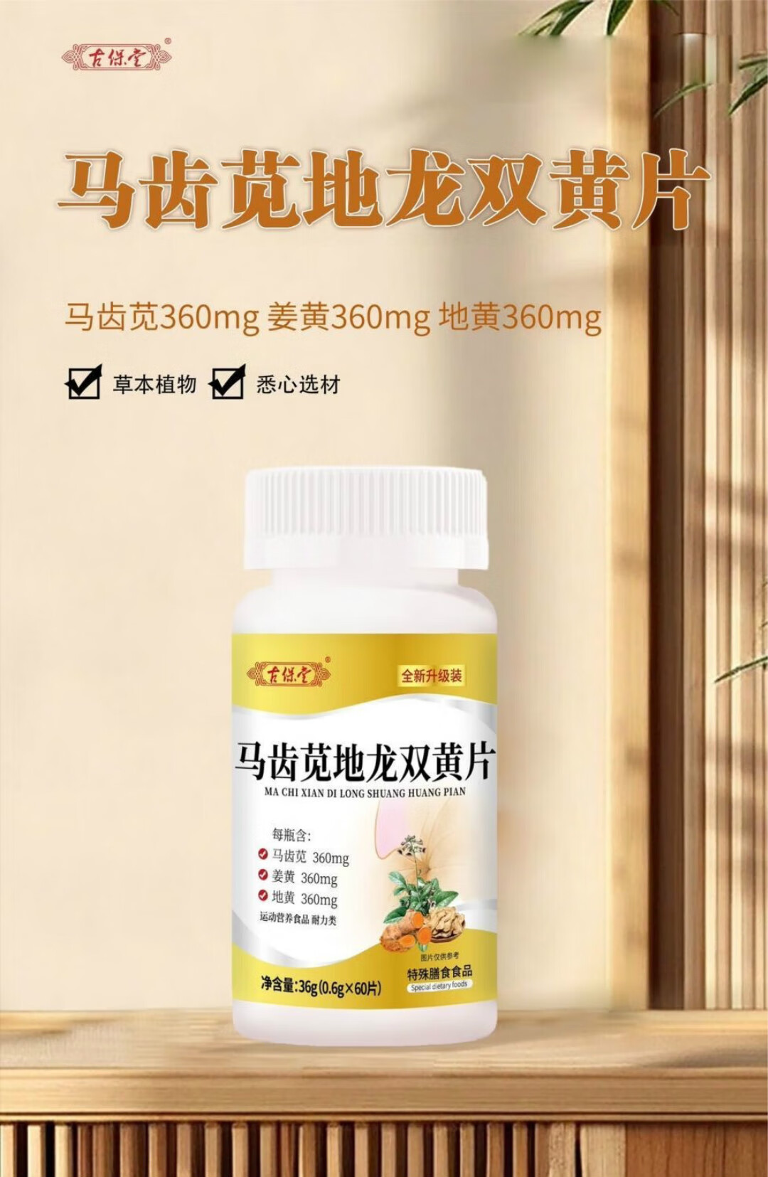 美恩元古保堂马齿苋地龙双黄片全新升级同款官方直营马齿苋地黄双龙片 1瓶装