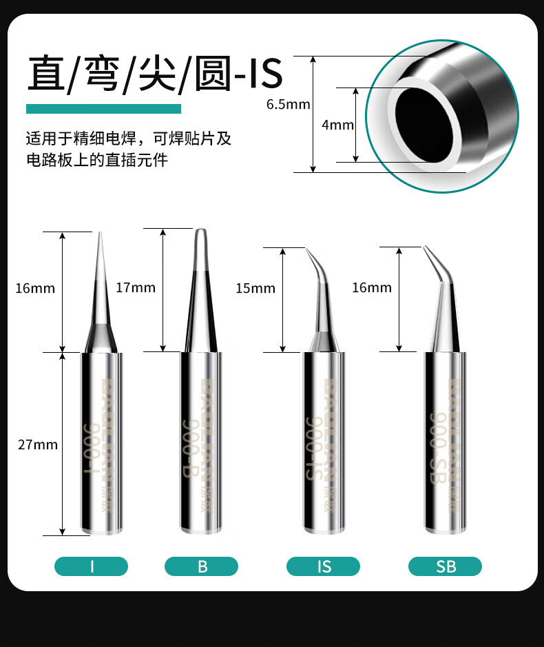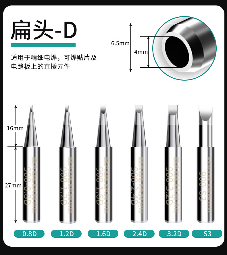 936铬铁头电洛铁恒温内热式烙铁头尖嘴弯嘴刀头焊接工具电焊头 S3咀(扁头)