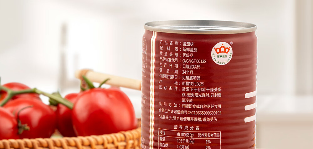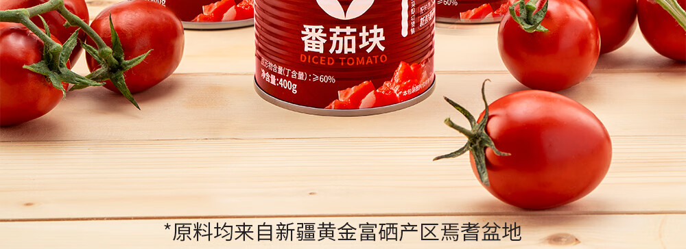 冠农股份【2025年新产季】新疆新鲜番茄块400g*1罐蕃茄西红柿块番茄丁罐头