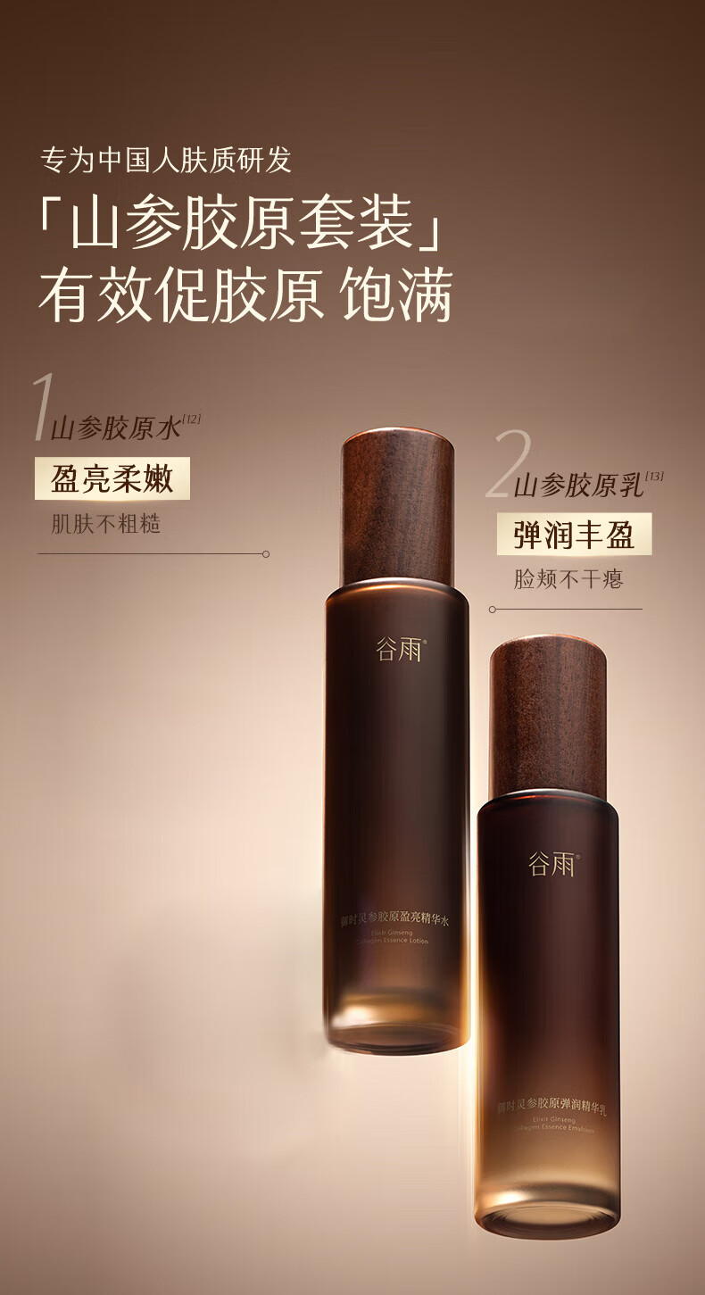谷雨山参胶原水乳套装抗皱紧致护肤品套装补水保湿淡纹男女士生日礼物 闪电发货