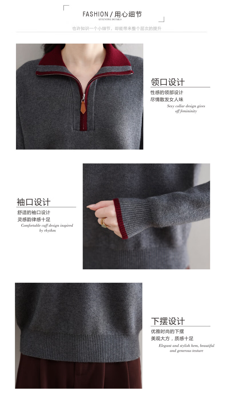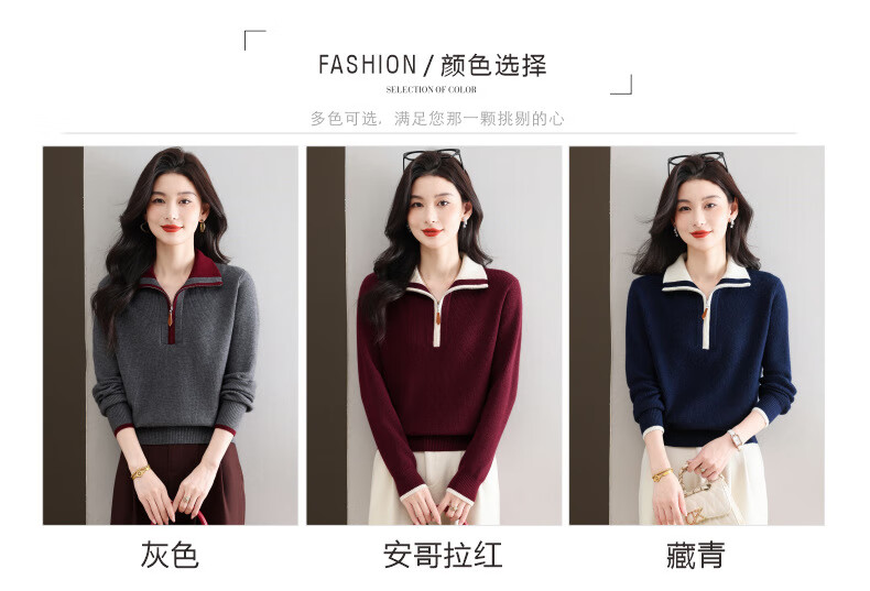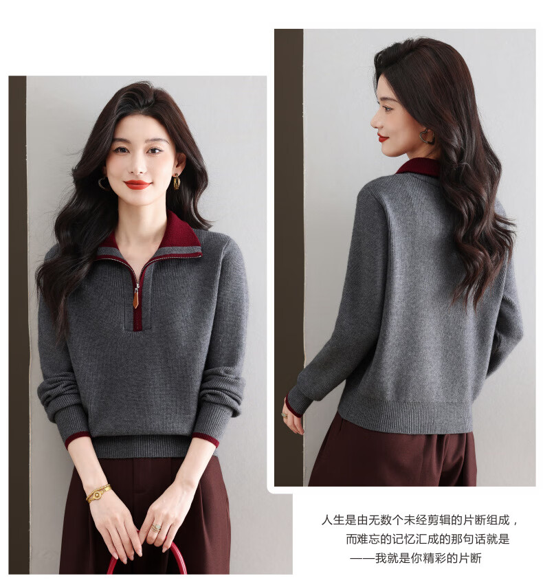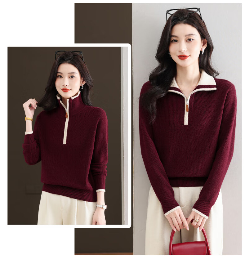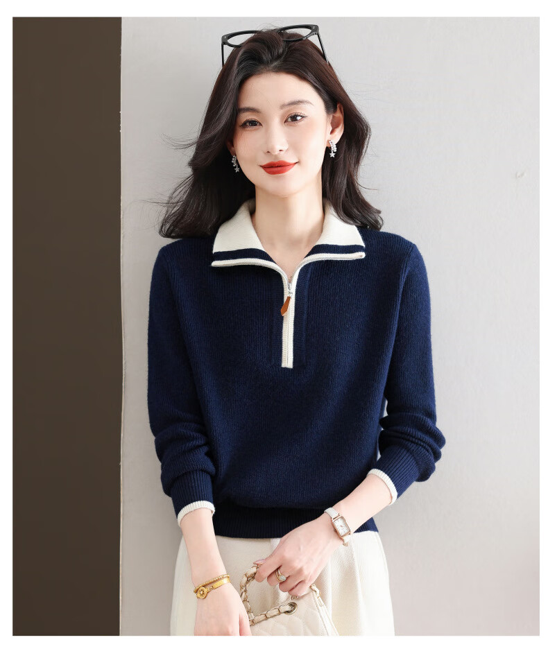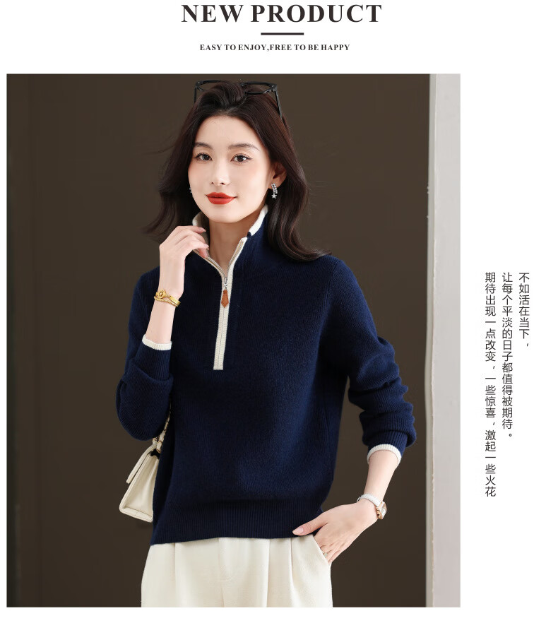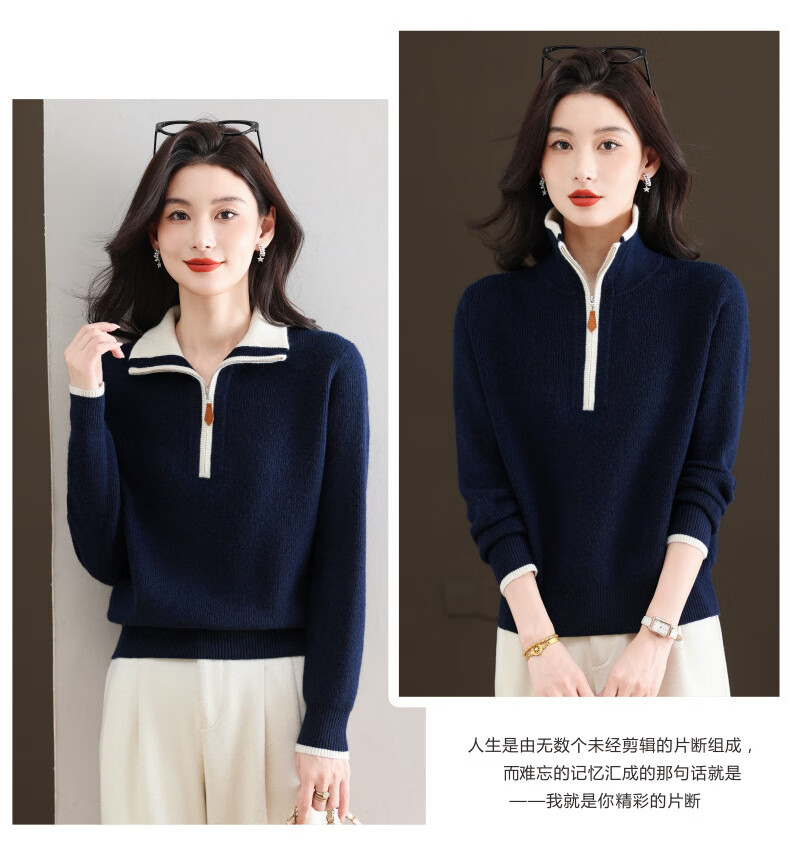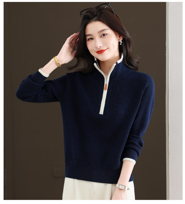 【法式轻奢】秋冬半拉链毛衣女套头内搭宽松时尚洋气翻领打底衫 藏青 L 建议110-120斤