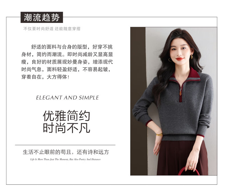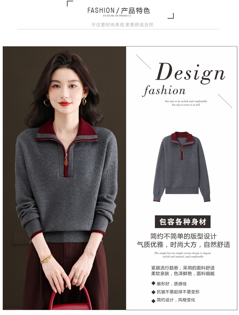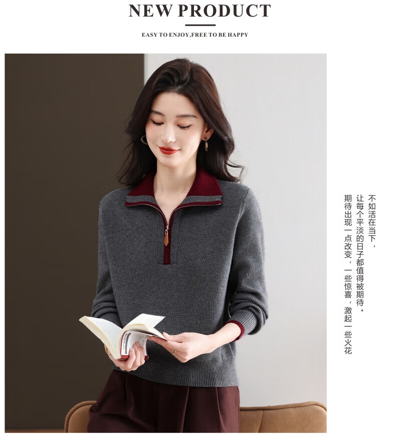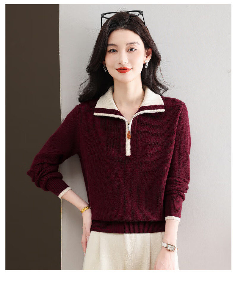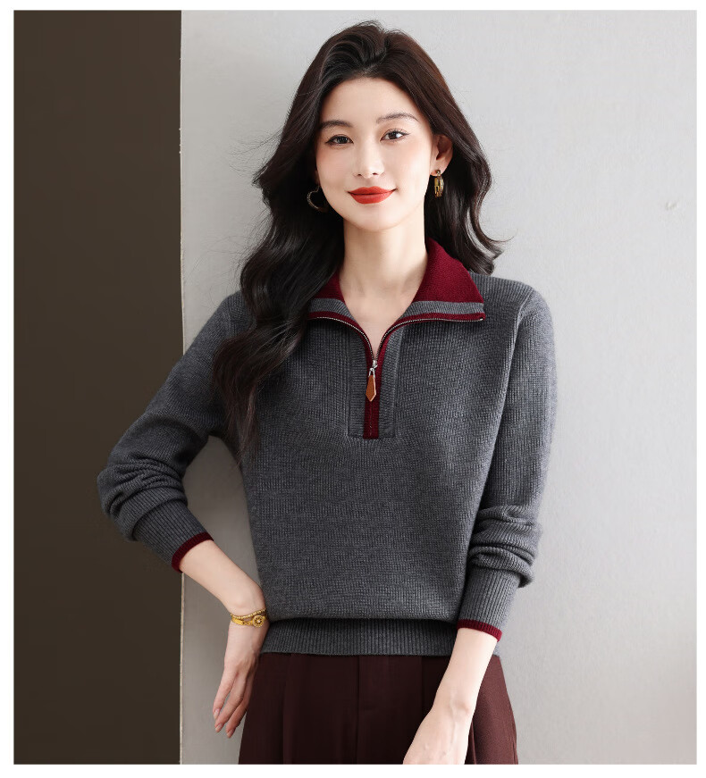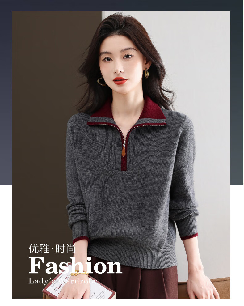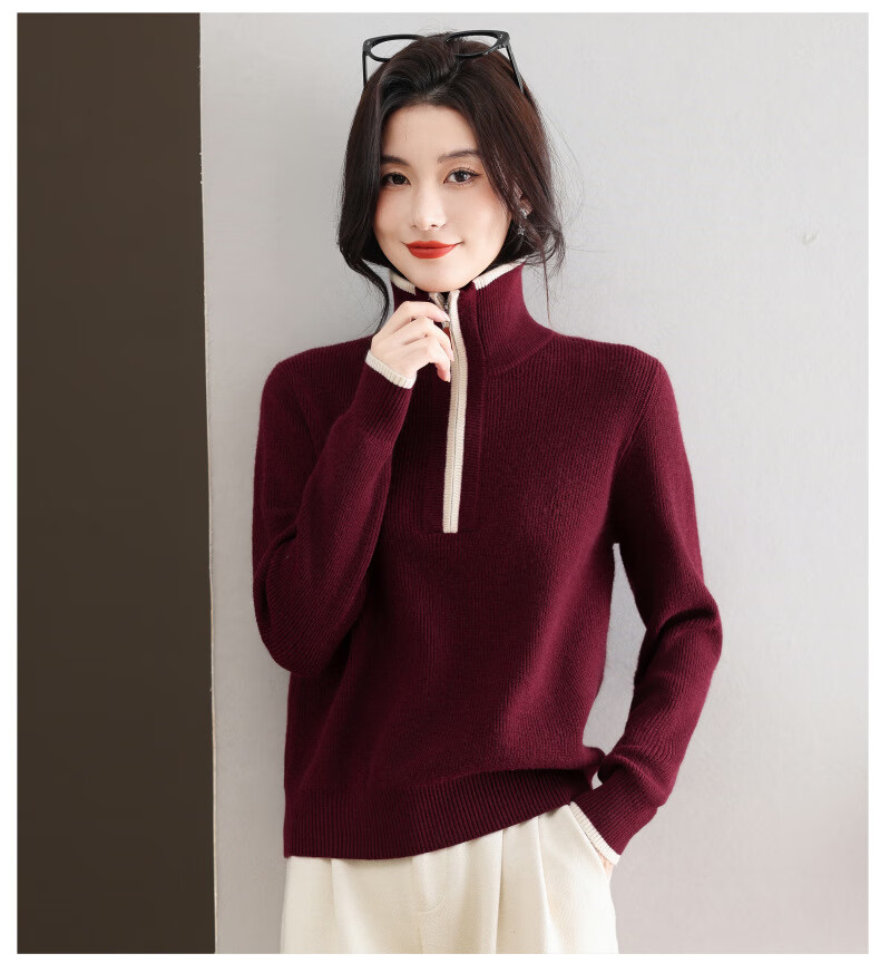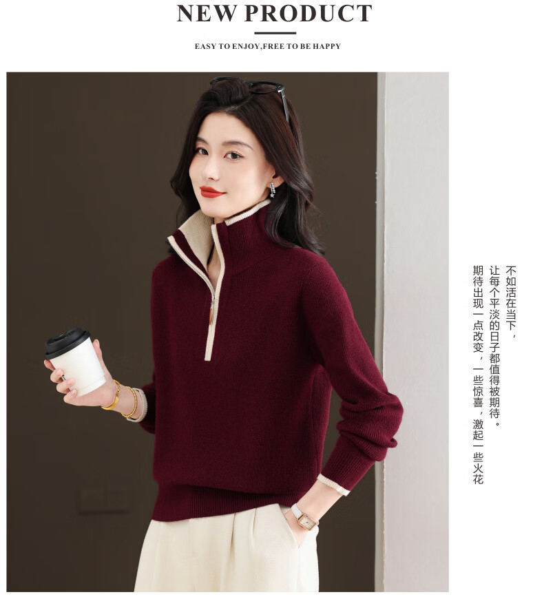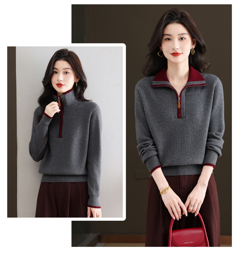 【法式轻奢】秋冬半拉链毛衣女套头内搭宽松时尚洋气翻领打底衫 藏青 L 建议110-120斤
