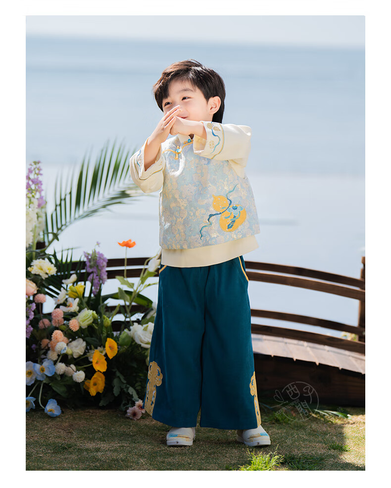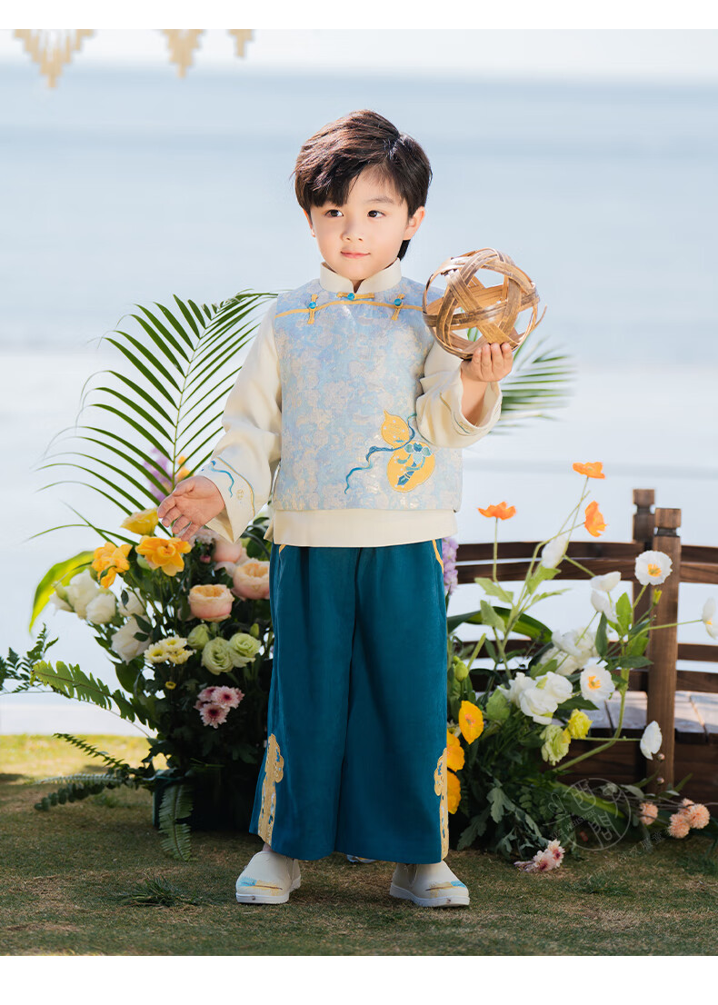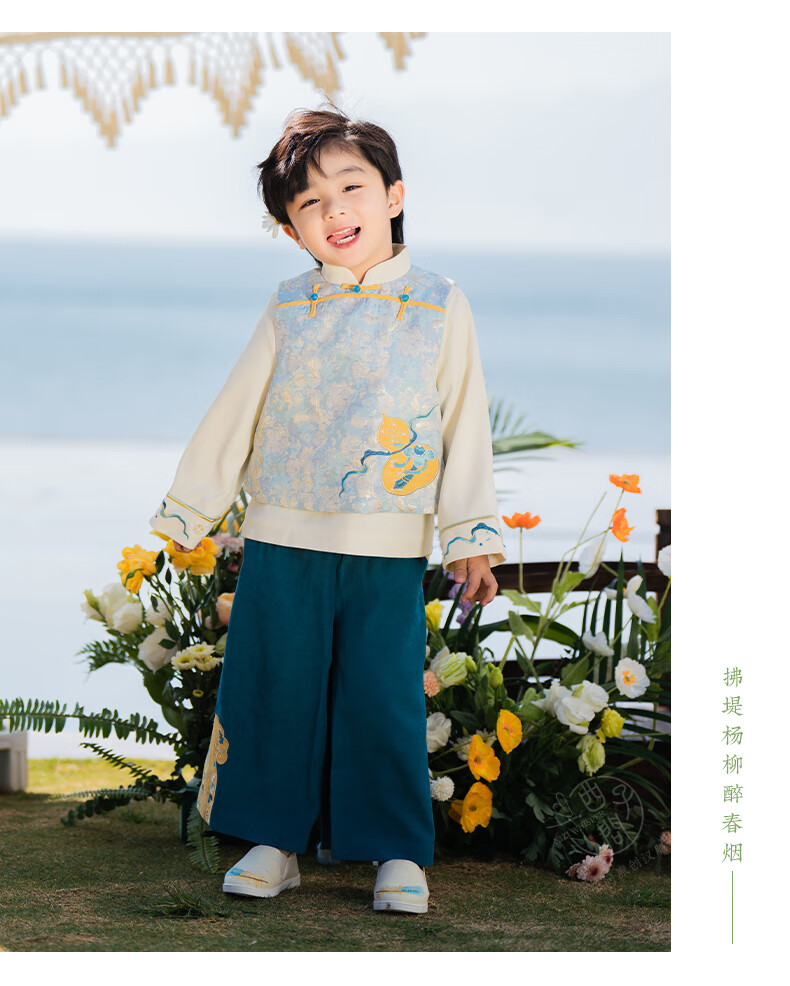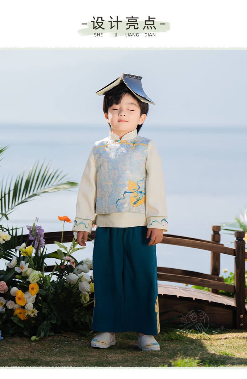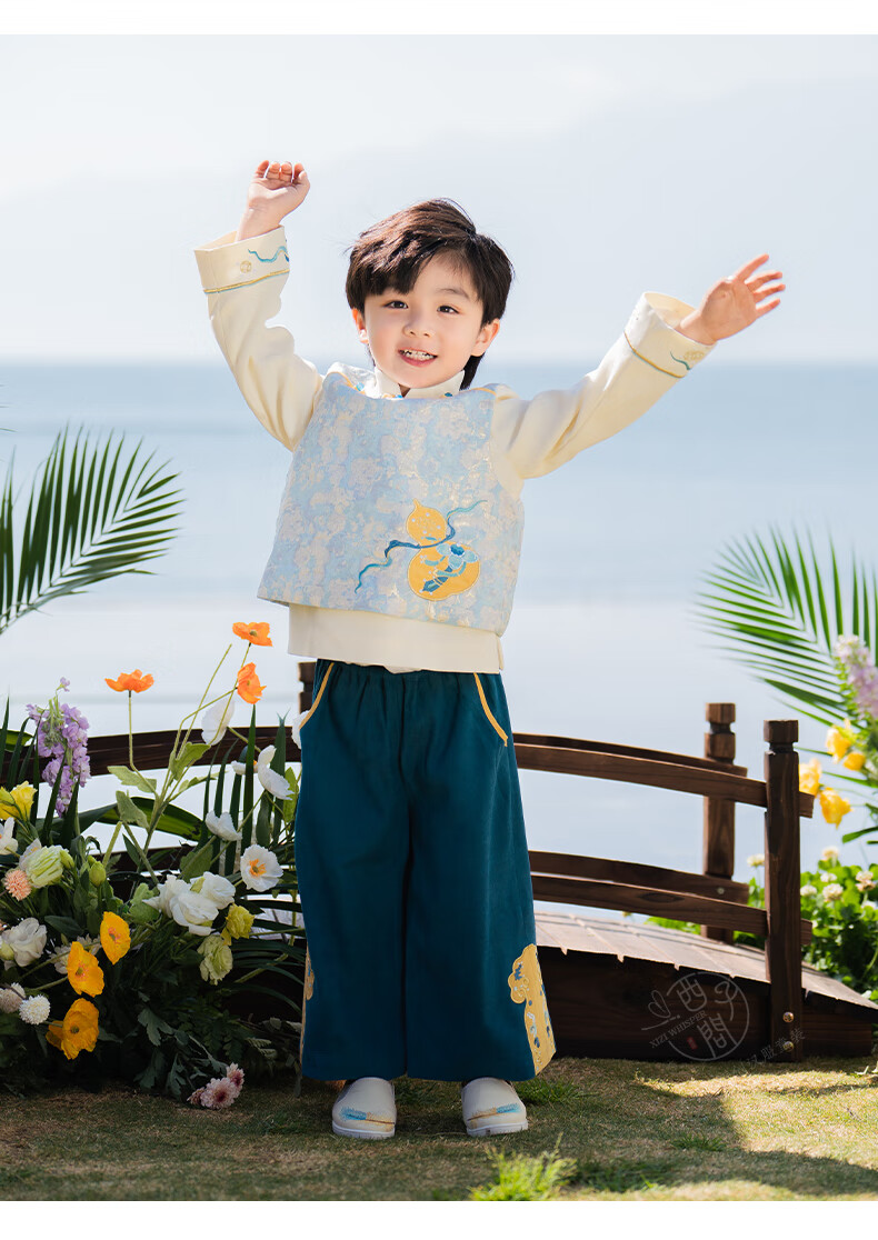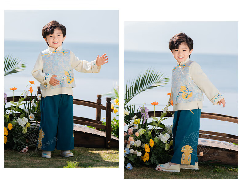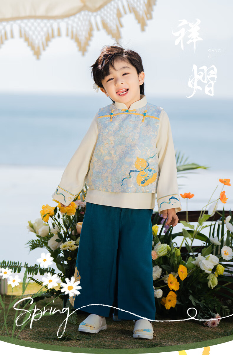 西子问【西子问】汉服男童春秋款古装儿童汉服唐装周岁礼服男宝套装祥熠 祥熠套装 130