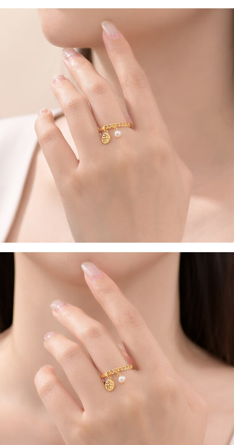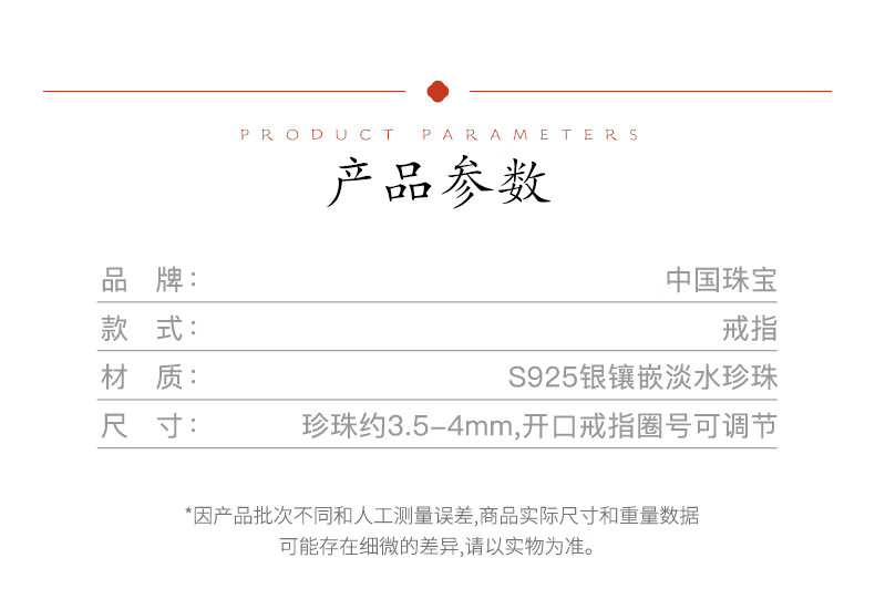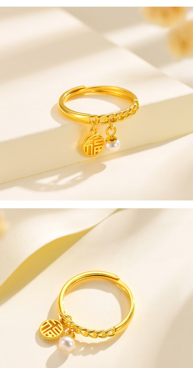 中国珠宝银戒指女S925银福牌珍珠戒指活口设计送女友老婆情人节生日礼物 银戒指女活口