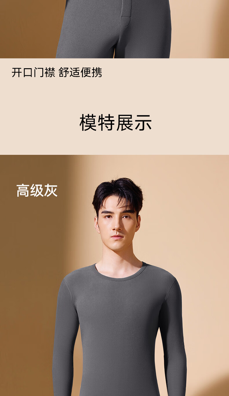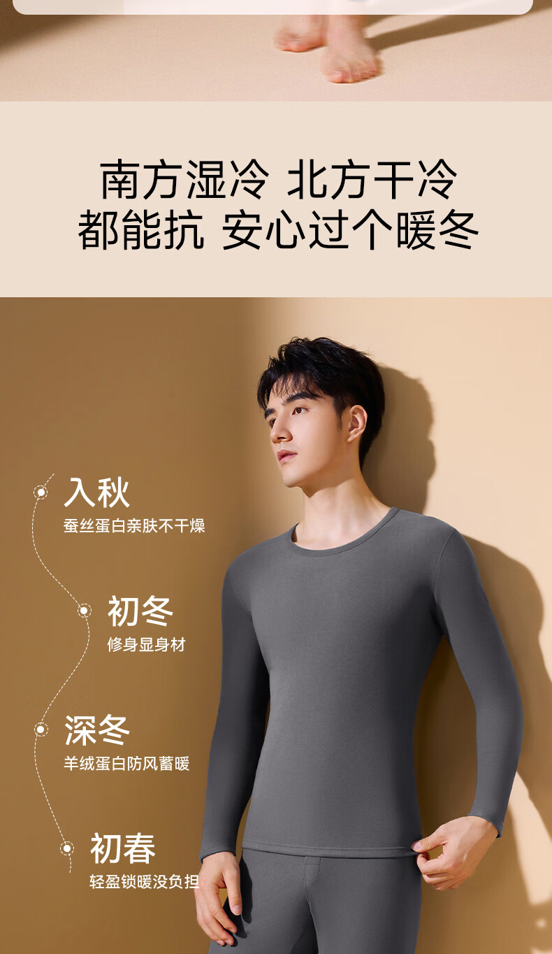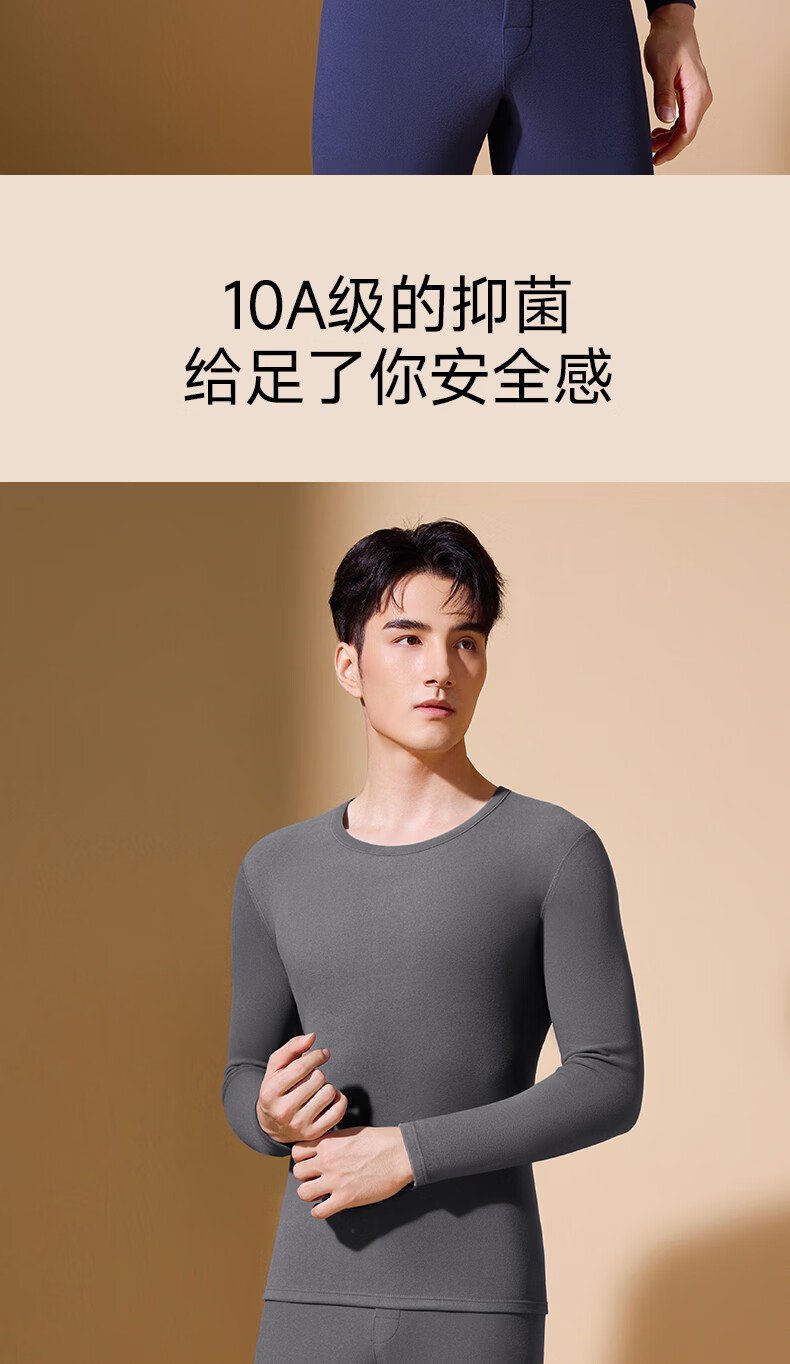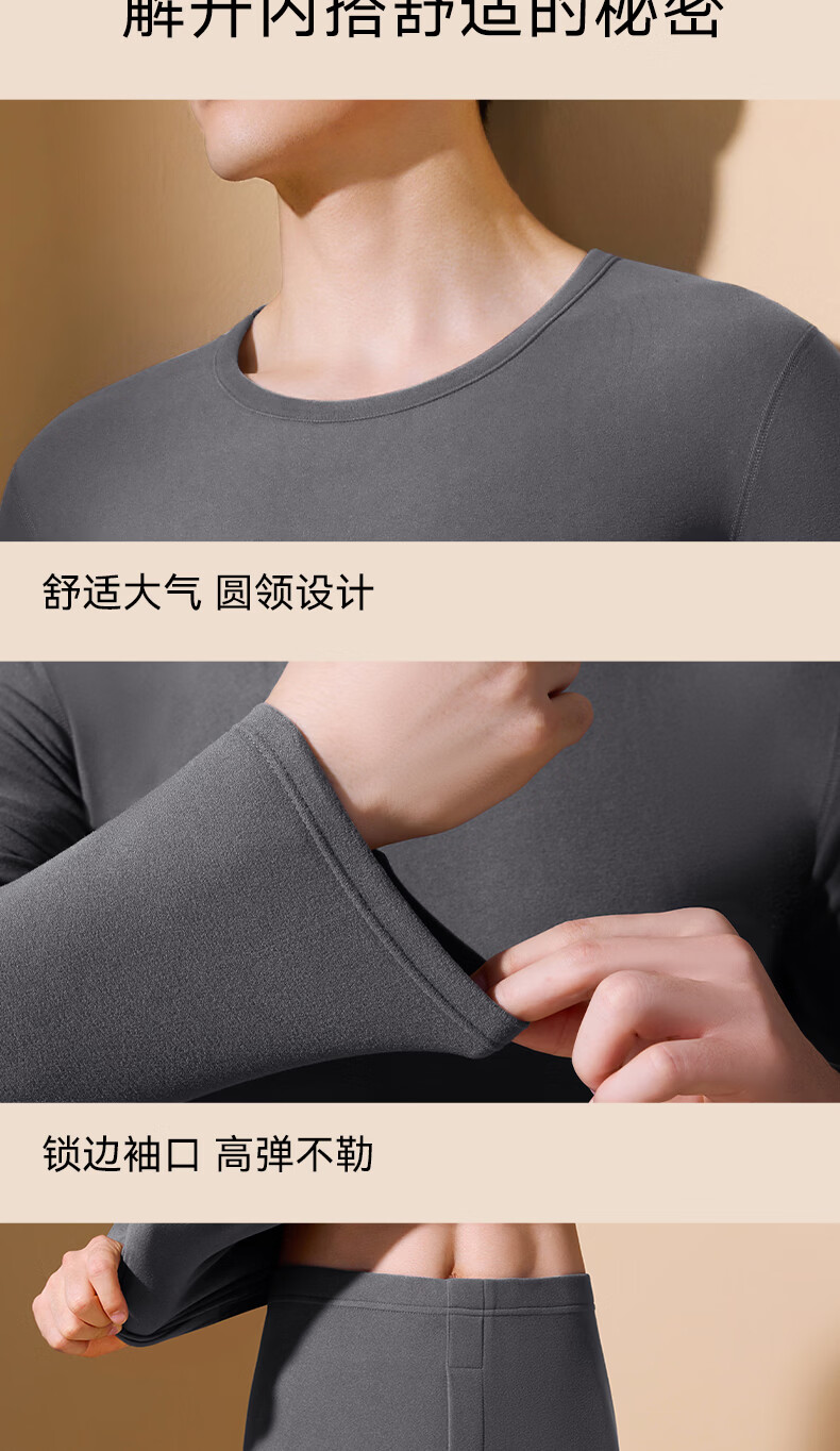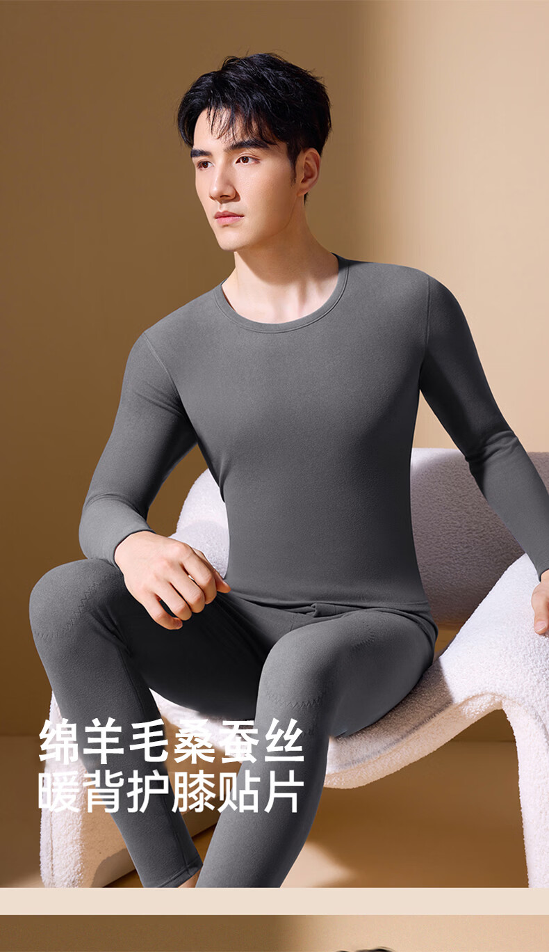 鸭鸭男士保暖内衣【真德绒桑蚕丝】10A秋冬季腈纶蓄热舒适打底套装 高级灰 4XL 建议【180-210斤】