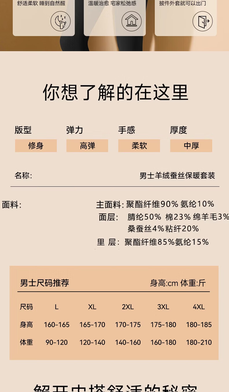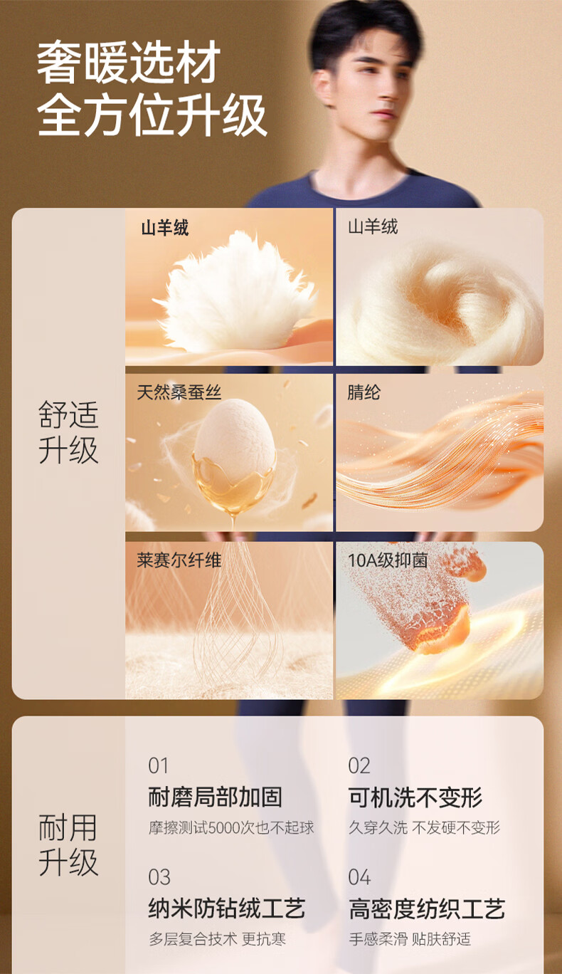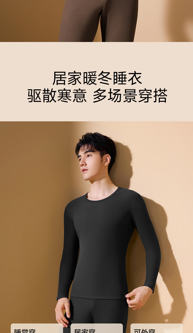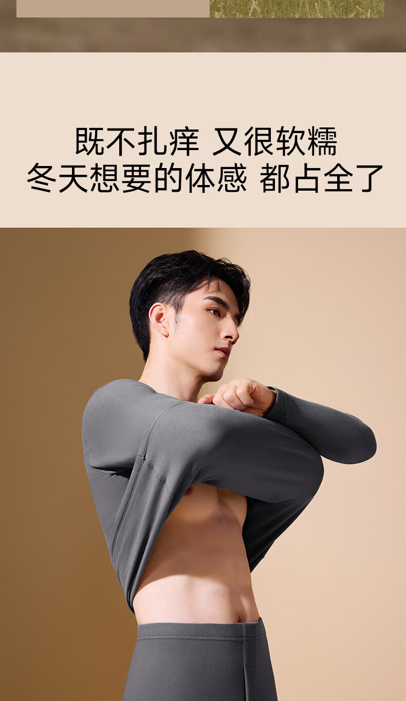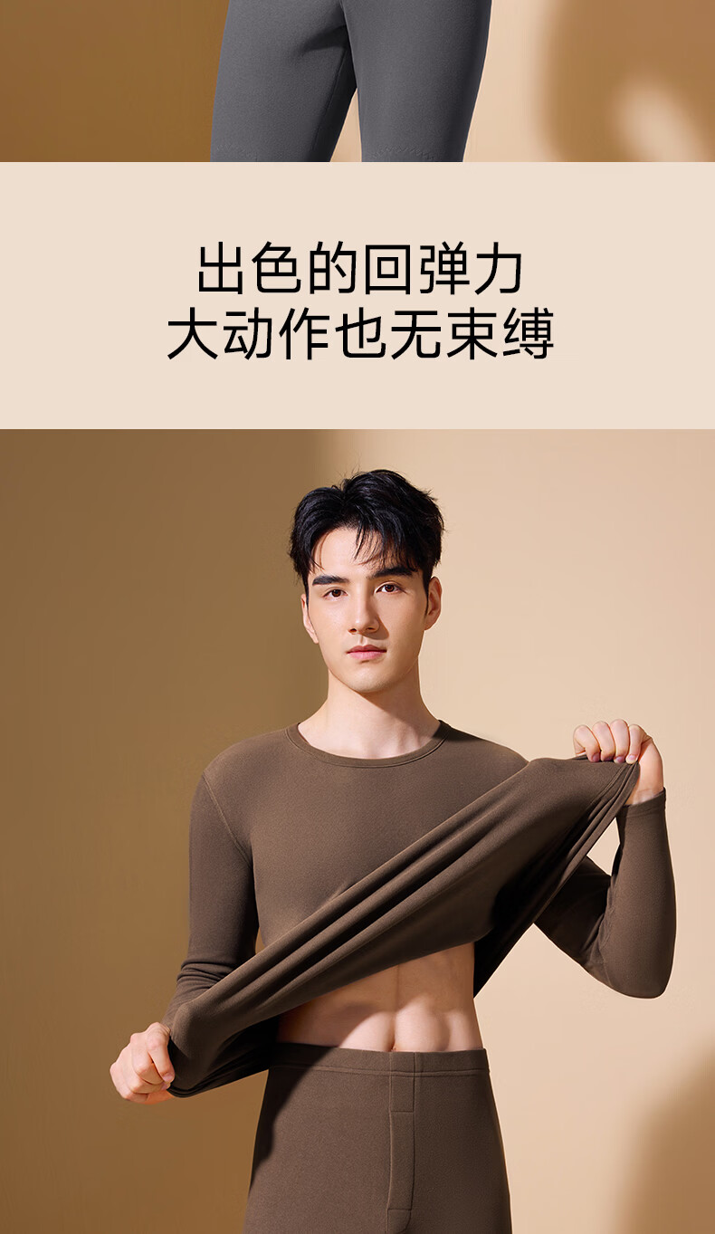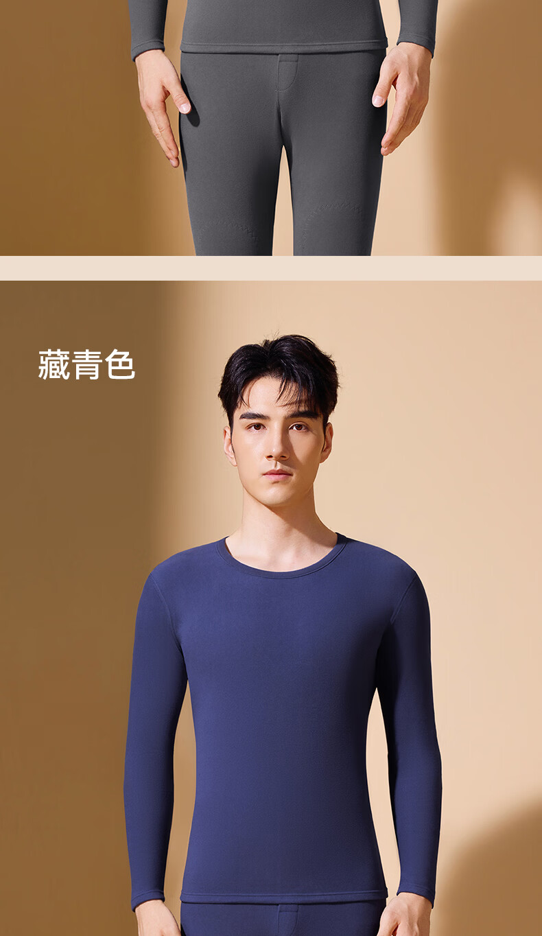 鸭鸭男士保暖内衣【真德绒桑蚕丝】10A秋冬季腈纶蓄热舒适打底套装 高级灰 4XL 建议【180-210斤】