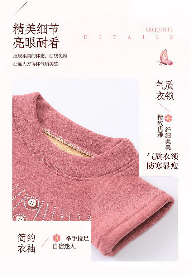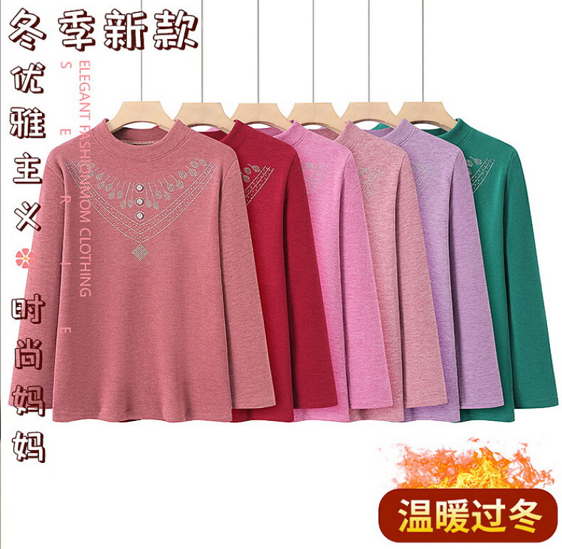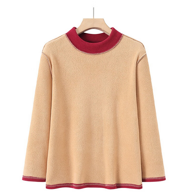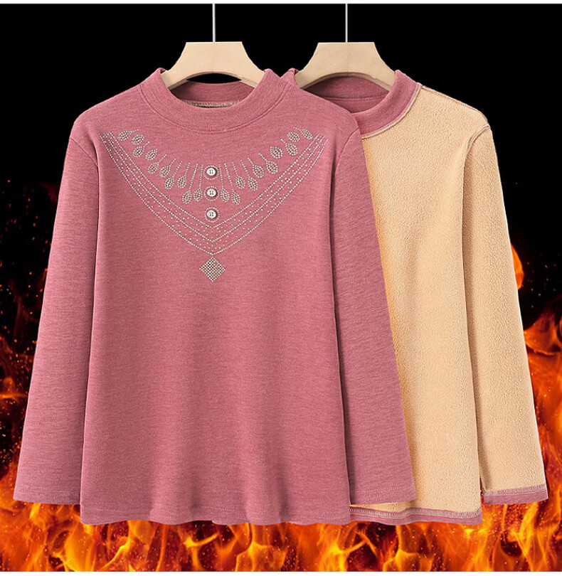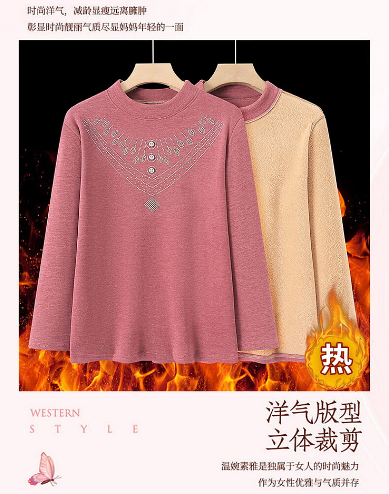 奉孝德绒女中高领秋衣宽松加肥加大码弹力中老年人长袖保暖内衣秋冬
