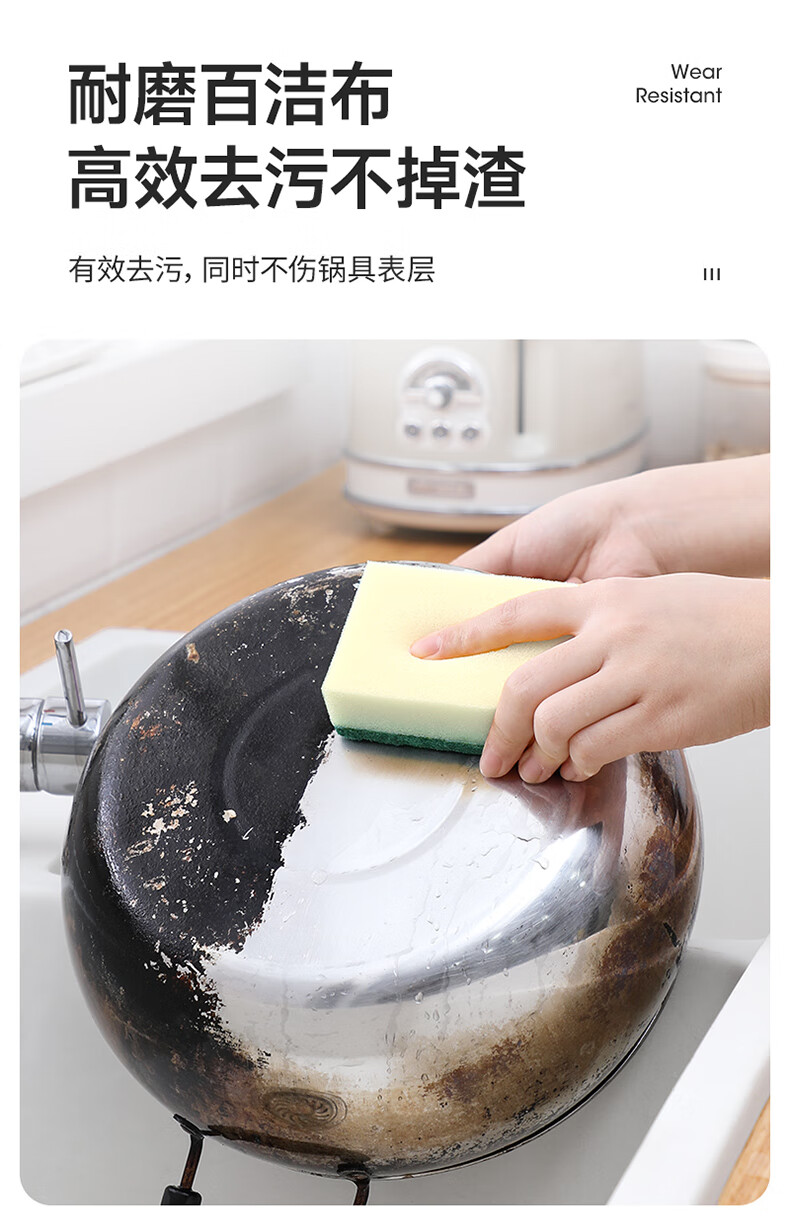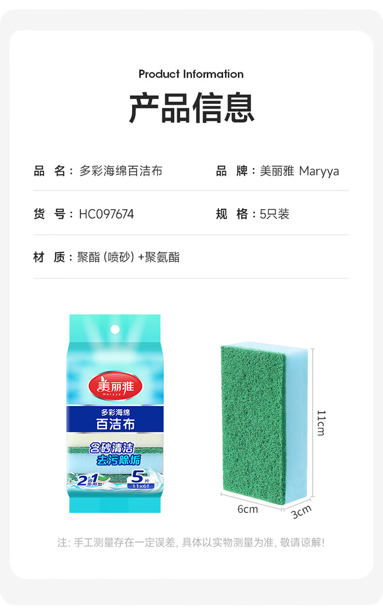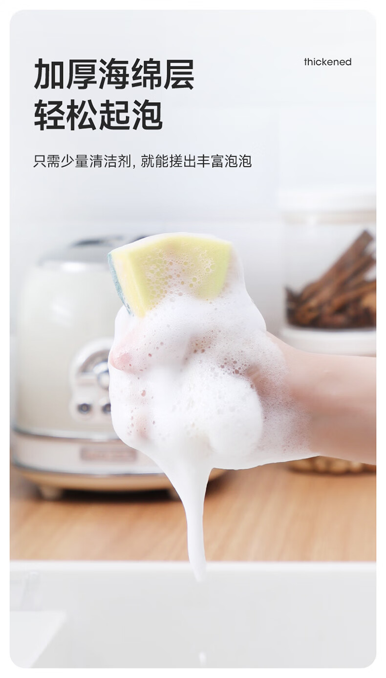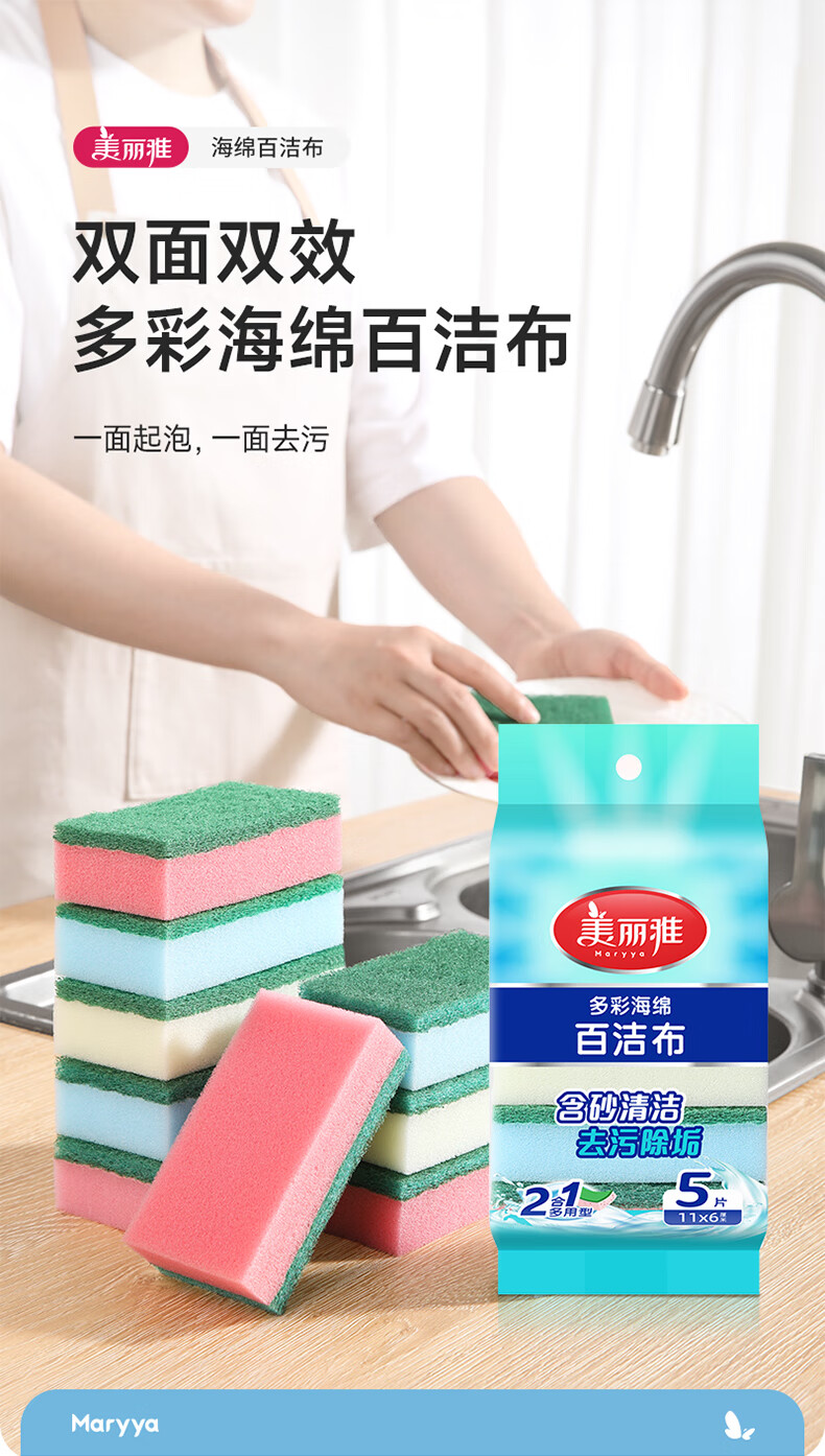 美丽雅 海绵百洁布 双面去油污抹布厨房洗碗海绵擦吸水清洁抹布 5片装